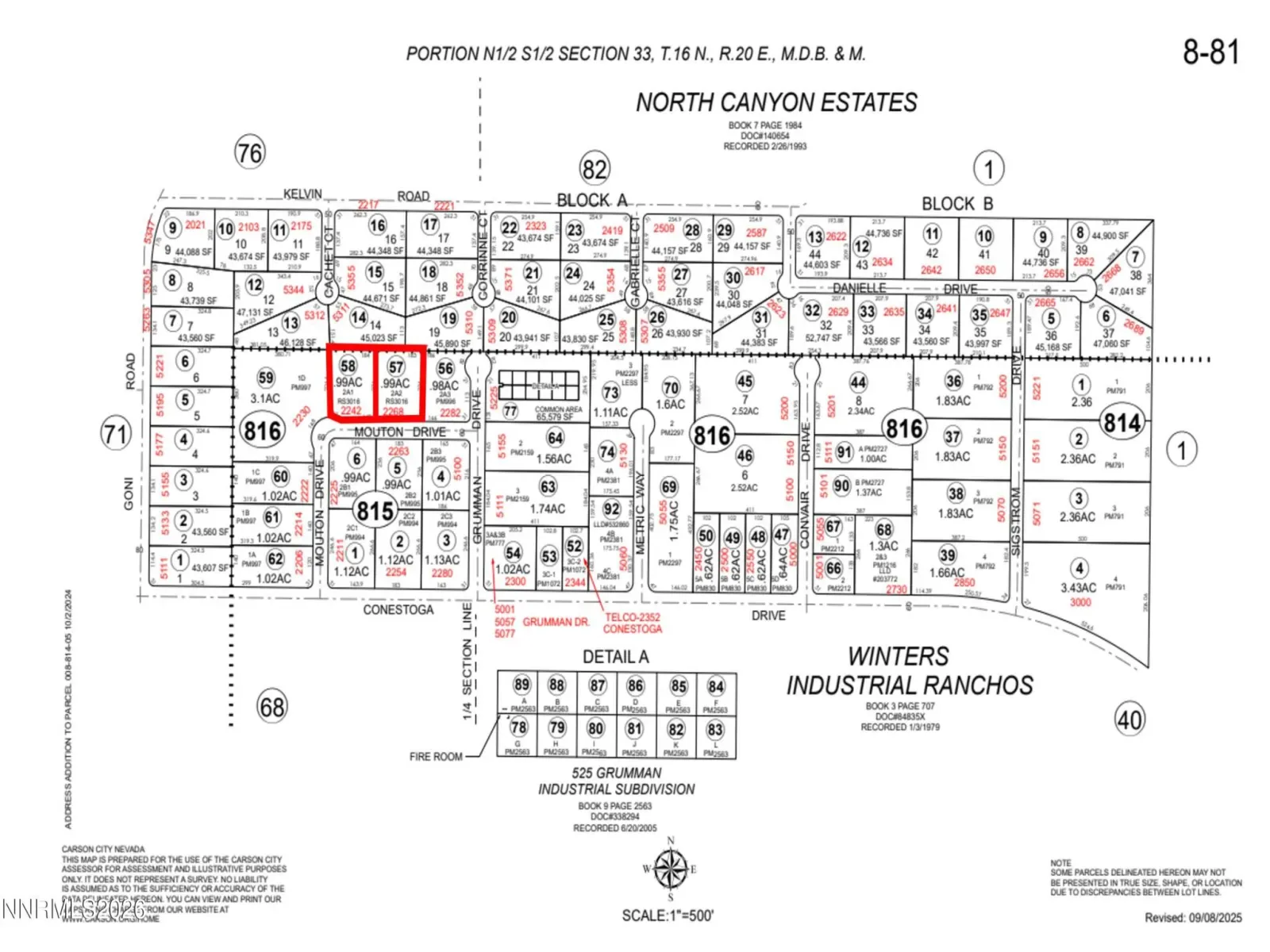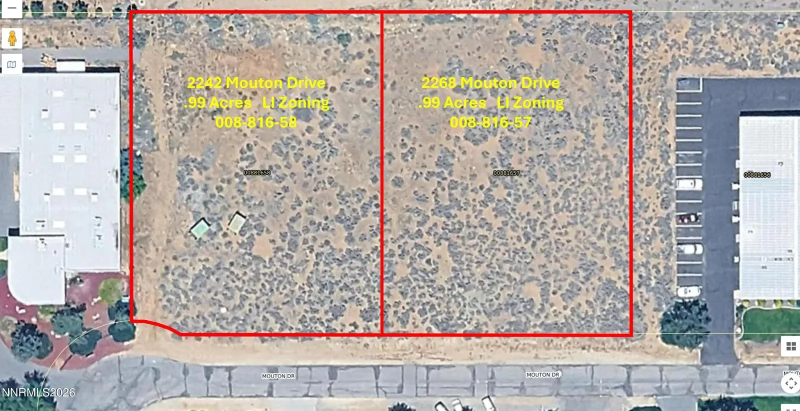 Two prime adjacent industrial parcels, each .99 acres, positioned in North Carson City near the Carson City Airport. These lots are surrounded by established industrial users and offer excellent truck accessibility and easy freeway access, making them ideal for a variety of industrial development opportunities. Purchase one or both for 1.98 acres. Five foot utility easement around parcel perimeter.