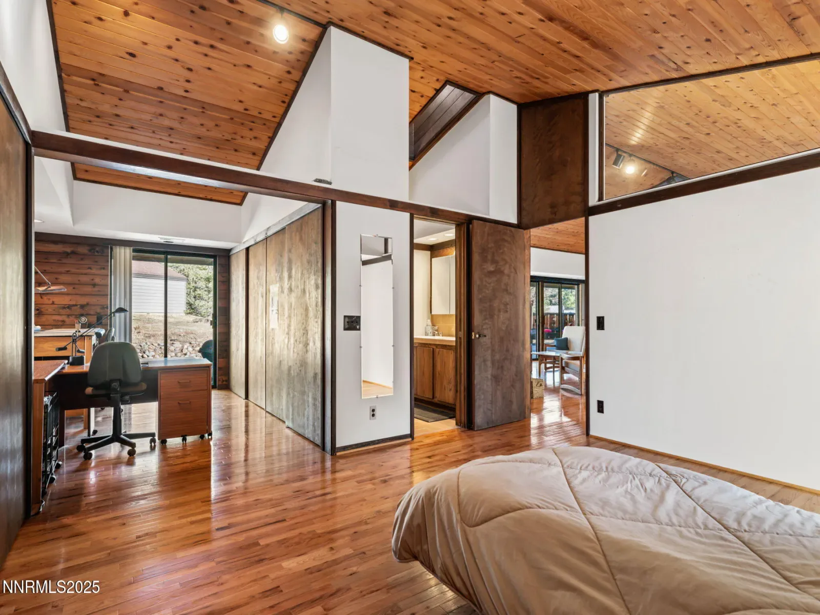 This home was an award-winning architect’s private residence which was personally designed and thoughtfully built for his very own family! Never seen on the market before now, this mountain masterpiece has been enjoyed by several generations of his family. This custom ranch home is in a unique Carson City location that is situated entirely in the Sierra Mountains. Just a few miles up the road from Costco, your special slice of the Sierras feels like an oasis of convenience, privacy and comfort. The five-acre-property is nestled around tall, beautiful pine trees and includes a portion of Clear Creek! The backyard has a huge storage shed with multiple doors to access and store your extra vehicle or toys! The covered gazebo in the back can also house a small boat or jet ski. The exterior landscaping has an automatic drip system in front and back. This home has multiple wooden decks and balconies on which to bask in the sunshine while enjoying distinctly different alpine views, at every angle, at all times of year! Inside this magnificent home you’ll find more storage than you could ever need! And so much of that is hidden storage! What could be better?! Inside boasts a great room with a kitchen/living room combo, fireplace, skylights and high ceilings. Custom-made Shoji window screen treatments adorn the great room’s sliding glass windows. The home has two fireplaces: a large wood-burning fireplace with insert in the great room and a cozy wood stove in the family room. The family room is located along with the two other bedrooms on the opposite side of the house from the primary suite. The family room even has its own kitchenette! So, it is perfect for guests and family to enjoy, or for the frugal minded, one could rent out this part of the house! So many possibilities to sprawl out and enjoy the split floor plan. The kitchen is sure to please every cook! It has a gas stove, dishwasher, and a huge island with extra storage, a pot sink, a bar sink and a built-in breakfast bar with plenty of seating for everyone! There’s also a large formal dining area in the great room with storage cabinets and shelves included. On the opposite side of the kitchen there is another space that was once used as a music room, and private performance area! So fun! The primary suite has a remodeled bathroom with modern shower and fixtures. There are double sinks and plenty of privacy in the primary. The primary suite also includes an additional “room” that could be an office or a nursery or anything your heart desires! The entryway to the home has a large foyer/mud room for convenience and just up from the entry is an exit to the backyard through the sliding glass door located in the part of the home fondly referred to as “The Keyhole”. The home’s oversized two-car garage has a large workshop area. The home offers dual zone heating, AC, and hot water systems – one each for the master area and family rooms. The home is also on its own private well and septic system. There are some stairs from the garage to the inside of the house but if someone needed to avoid steps entirely, they could also enter the house from the backyard as an alternative entrance. So many possibilities to enjoy this home! This home is occupied and requires an appointment to show.