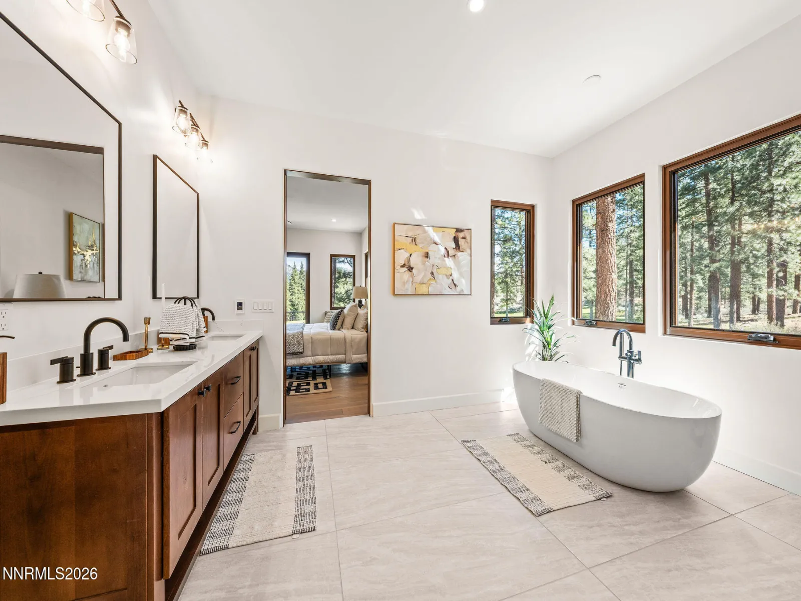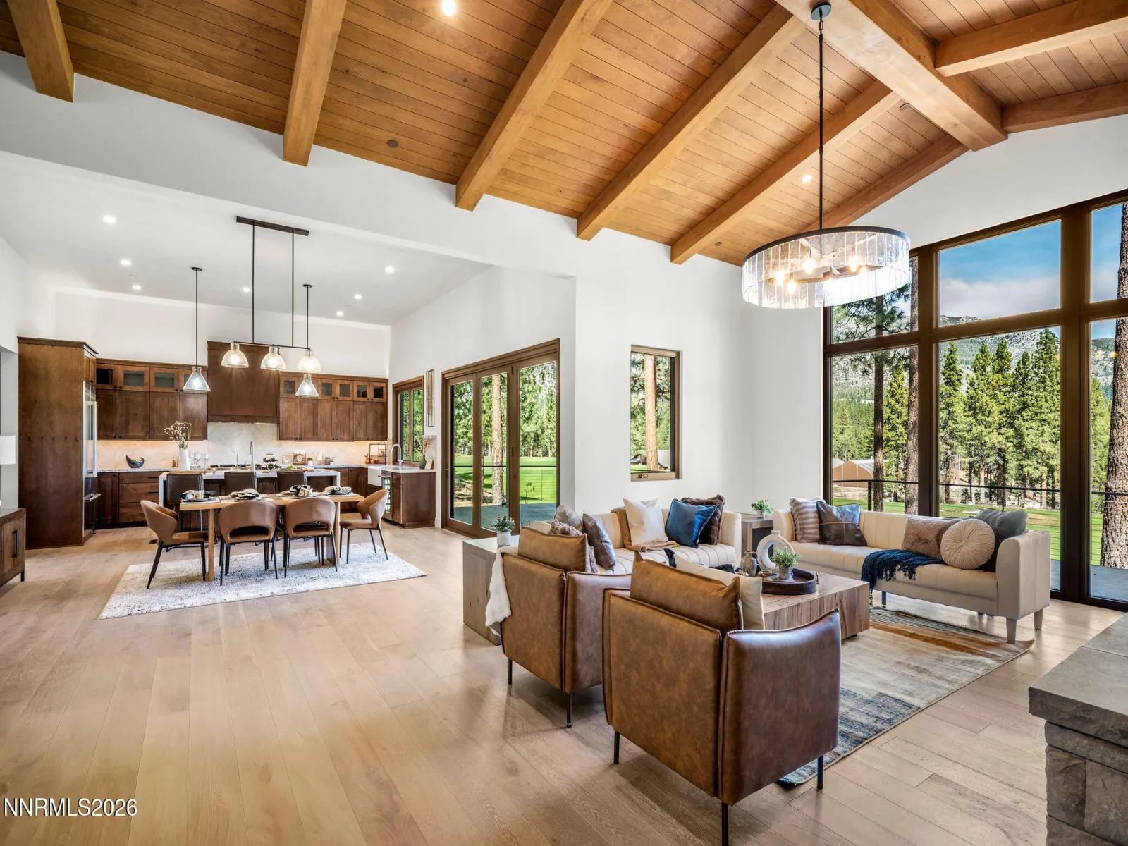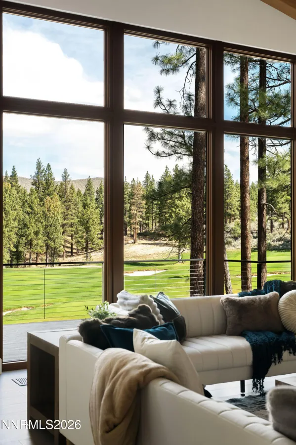 Welcome to Headwaters Collection, Cottage Two, a brand-new mountain cottage home thoughtfully designed for effortless living within the private, gated community of Clear Creek Tahoe. Perfectly positioned along the golf course practice facility, this exceptional residence captures beautiful views while placing golf, recreation, and community amenities just moments away. Designed for easy single-level living, the home features a comfortable, livable floor plan with soaring ceilings, warm wood beams, and a tongue-and-groove ceiling that creates an inviting mountain-modern atmosphere. The open Great Room centers around a striking stone fireplace, offering the perfect setting to gather after a day outdoors. Expansive windows bring in natural light and frame the surrounding landscape, seamlessly connecting indoor living with the beauty of the Sierra. The private primary suite provides a peaceful retreat, highlighted by a spa-inspired bath complete with a luxurious steam shower. Brand-new construction, quality craftsmanship, and an ideal location combine to create a home equally suited for full-time living or a refined mountain getaway. Life at Clear Creek Tahoe extends well beyond the home. Anchored by Nevada’s top-ranked residential golf course, the community offers an unmatched lifestyle with access to the private Lake & Ski House featuring sandy beach frontage and shuttle service to Heavenly Ski Resort, Summit Camp’s pool, pickleball, tennis, and fitness amenities, along with miles of trails and year-round recreation. More than a home, Headwater Collection, Cottage Two offers a lifestyle defined by adventure, connection, and the best of mountain and lake living.