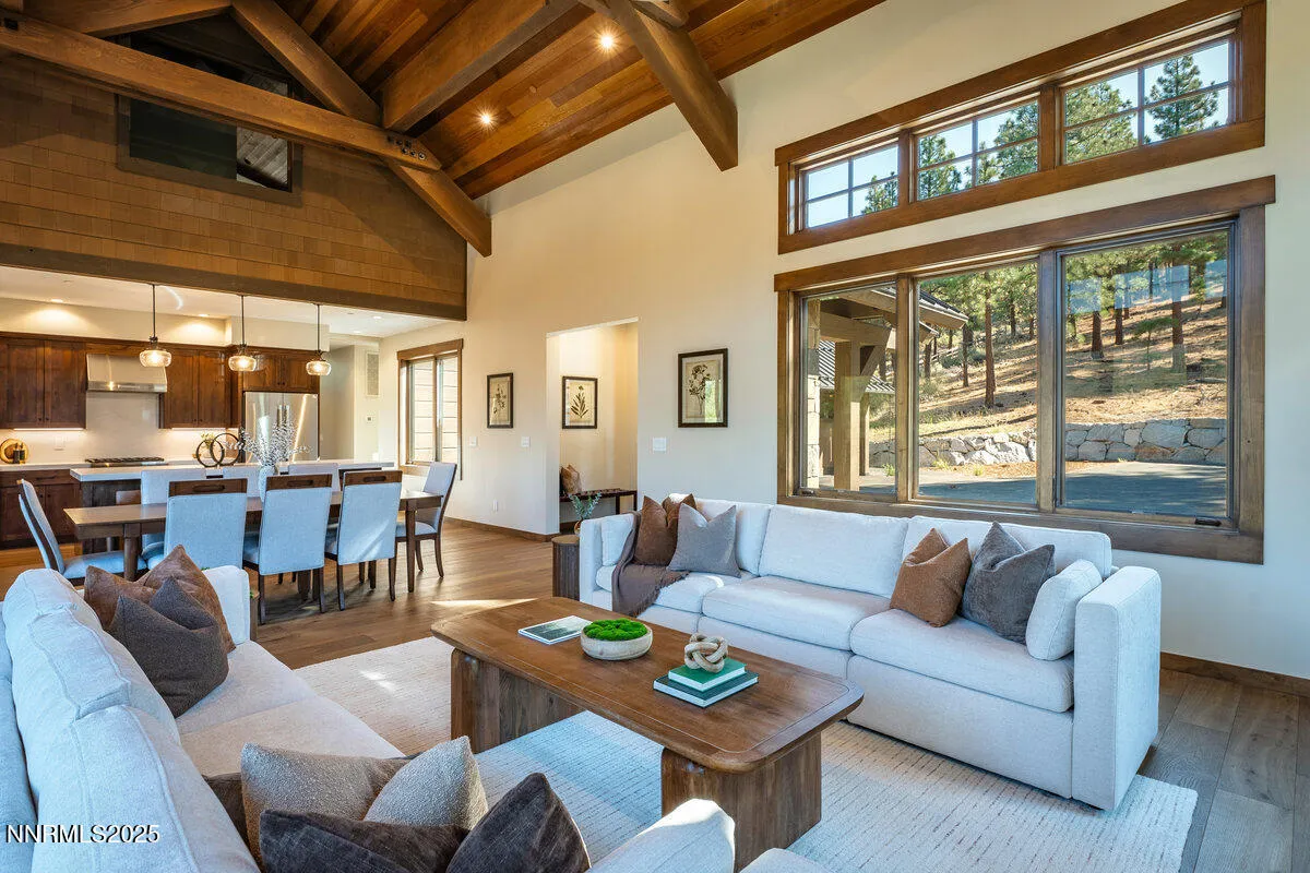 Welcome to Mountain Serenity: A Timeless Tahoe Retreat in Clear Creek Tahoe Nestled in the heart of the Sierra Nevada, where towering pines meet endless skies, discover your dream mountain retreat in the prestigious gated community of Clear Creek Tahoe. This brand-new, custom home seamlessly blends the rustic elegance of Old Tahoe style architecture with the comfort and convenience of modern living., Crafted with thoughtful detail and timeless materials, hand-hewn beams, native stone, and rich wood finishes—this four-bedroom, four-and-a-half-bathroom residence feels like it has always belonged to the landscape Each bedroom is its own private retreat, with en-suite bathrooms and refined mountain finishes. Designed to reflect the heritage and natural beauty of Lake Tahoe’s storied past, it invites you to slow down, settle in, and soak up the serene atmosphere. Step inside and you’ll be welcomed by an open-concept great room with soaring ceilings, a stone fireplace, and expansive windows that frame tranquil surrounding views—your backyard is an untouched forest sanctuary, ensuring privacy, peace, and a daily connection to nature. The gourmet kitchen equipped with custom cabinetry and a generous island perfect for gathering with friends and family. Located within the private golf course community of Clear Creek Tahoe—home to Nevada’s #1 private golf course, residents enjoy an array of world-class amenities: a luxurious clubhouse, wellness center, hiking trails, and exclusive access to the Clear Creek Tahoe Lake & Ski House on the shores of Lake Tahoe. This is more than a home—it’s a lifestyle. A legacy. A place where your story begins. Your Tahoe escape awaits. Welcome home. Sale includes all furnishings currently in the home.