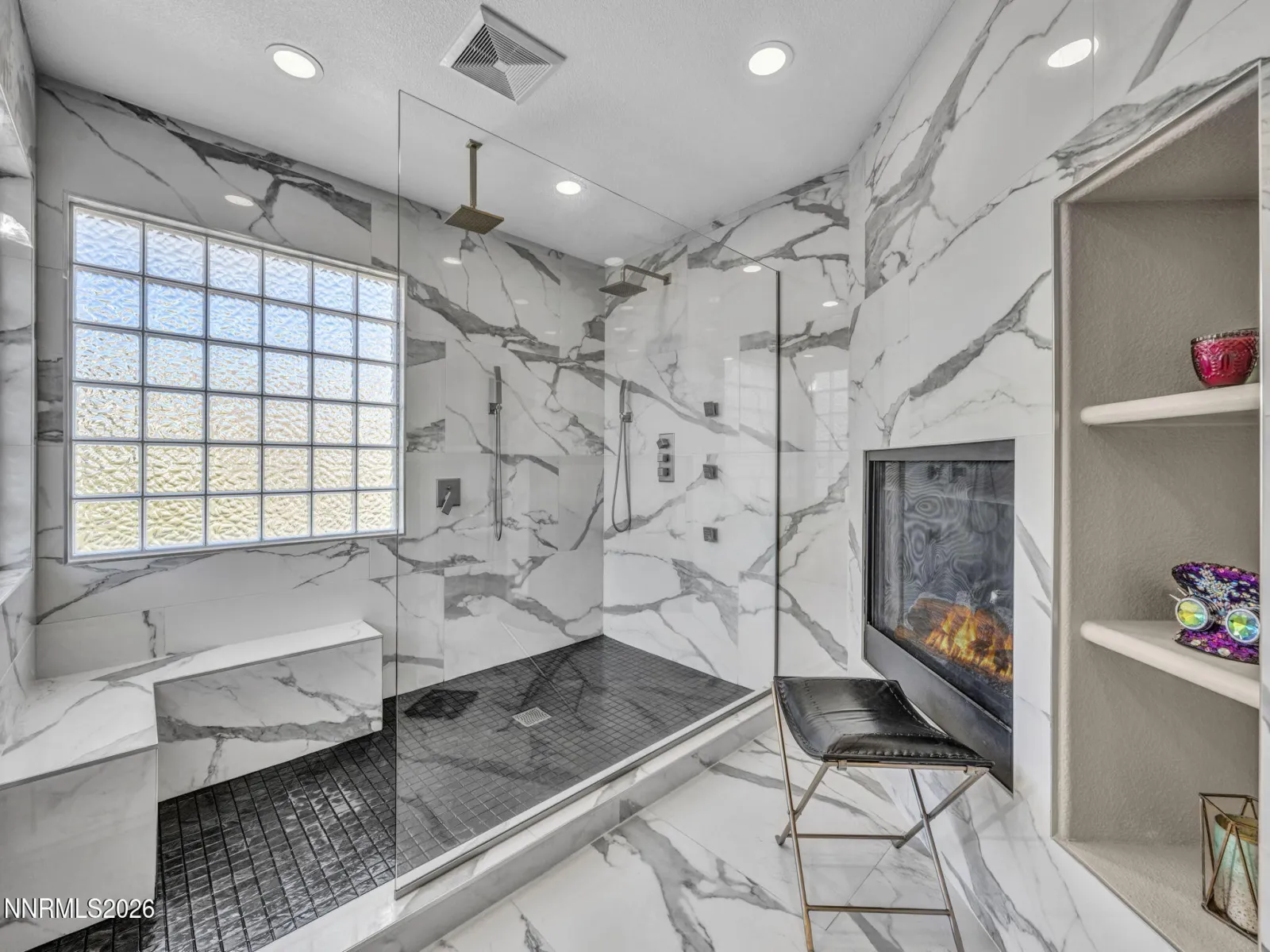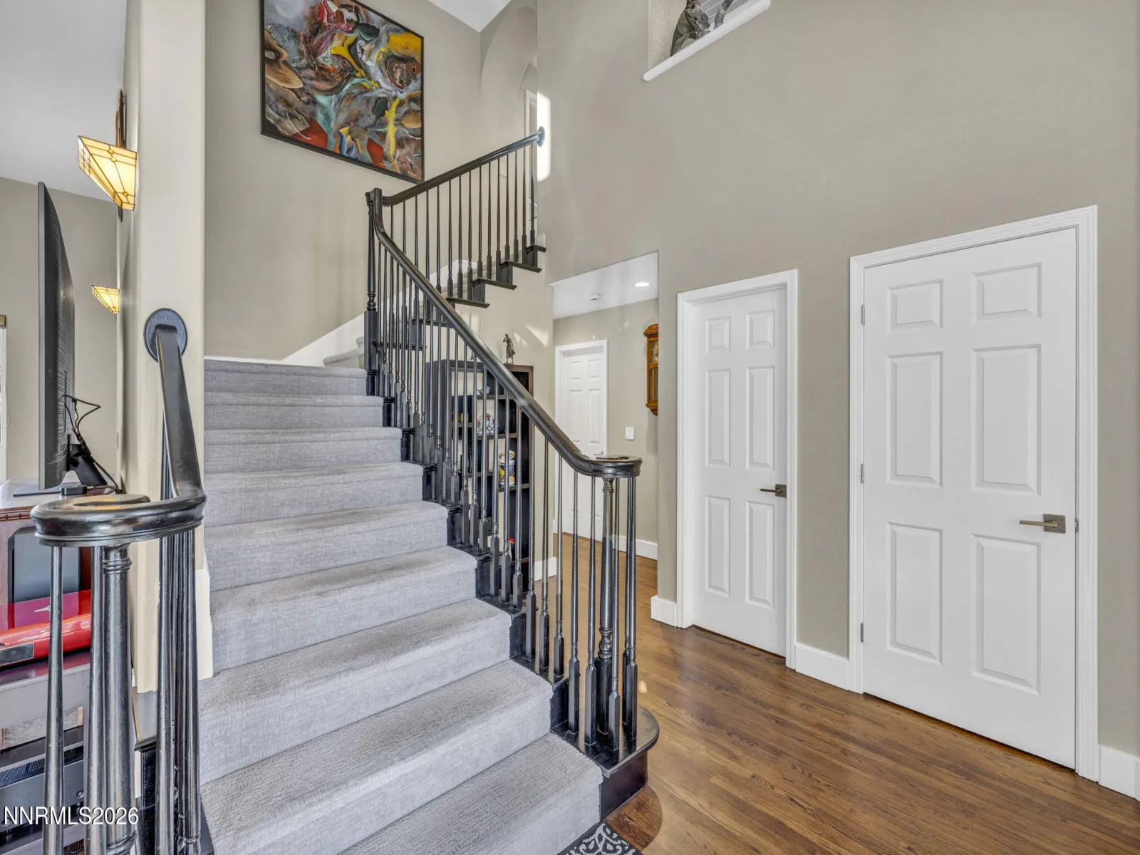 Golf Course Living at Its Finest in Silver Oak. Perfectly positioned along the prestigious Silver Oak Golf Course in Carson City, this beautifully reimagined west-facing home captures sweeping mountain vistas and unforgettable sunset skies. Showcasing more than $300,000 in thoughtfully curated upgrades, the residence blends refined craftsmanship with modern luxury at every turn. The main level features rich new hardwood flooring, Hunter Douglas shutters and blinds throughout, and convenient remote-controlled shades in the dining nook. A fully redesigned kitchen flows effortlessly into the inviting living area, anchored by a cozy gas fireplaceācreating the perfect setting for entertaining or everyday comfort. Highlights include crisp white cabinetry, a Bosch stove with vent hood, trash compactor, upgraded LED lighting, contemporary fixtures, and an impressive oversized island wrapped in leathered granite with dramatic waterfall edges. Every detail has been carefully considered. Designed for flexibility, the floor plan includes a downstairs office, an additional bedroom, and a full bathāideal for guests or multi-generational living. Upstairs, the luxurious primary suite offers a true retreat, complete with a double-sided fireplace, private patio overlooking the golf course, and a spa-inspired bath renovation. Custom cabinetry, sleek porcelain tile floors, a walk-in shower with bench seating, dual rain shower heads, and body spray fixtures create a serene, resort-like experience. Recent improvements provide lasting value and peace of mind, including a new water softener, water heater, furnace, A/C system, updated toilets (one heated), new shared fencing, and leaf-filter gutters. Enjoy the tranquility of golf course living just 25 minutes from Reno and 30 minutes from Lake Tahoe. Relax, unwind, and embrace the exceptional lifestyle this Silver Oak residence has to offer. Agents, please read private remarks.