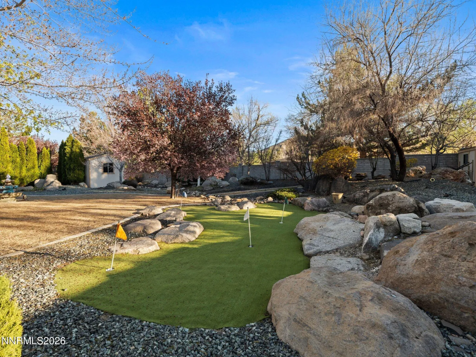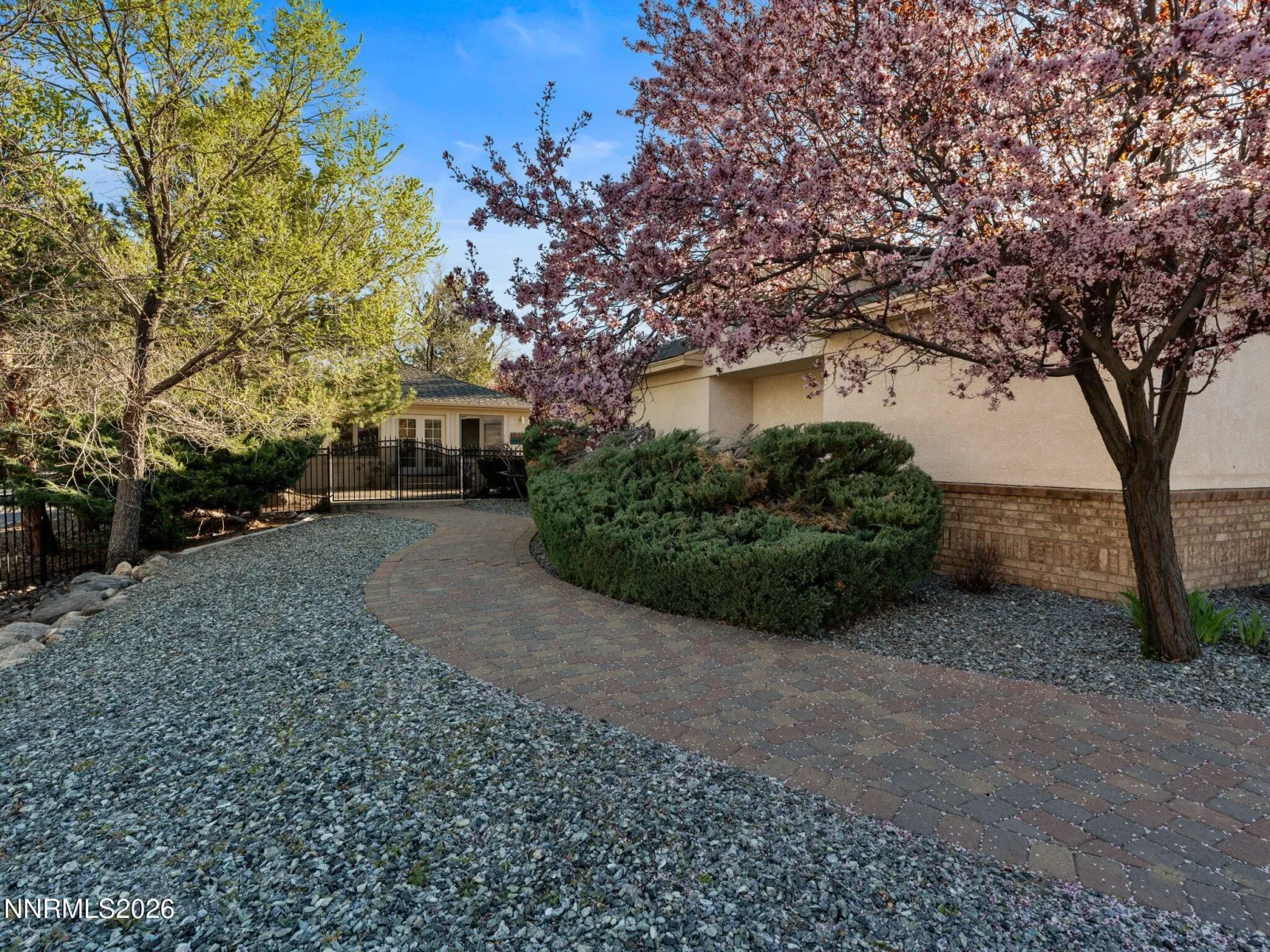 Located within the prestigious gated community of Wellington Crescent on Carson City’s highly sought-after west side, this exceptional single-level estate offers refined luxury on over an acre of beautifully landscaped grounds. Showcasing 4,131 square feet of living space, the property includes a 3,411 square foot main residence and a charming 720 square foot detached guest house, thoughtfully designed for comfort, style, and versatility. Inside, the home welcomes you with an open-concept design enhanced by polished porcelain flooring and elegant finishes throughout. The gourmet kitchen serves as the centerpiece, featuring high-end appliances, a wine refrigerator, and an expansive island that flows seamlessly into the spacious family room with a cozy fireplace. Formal living and dining areas, highlighted by a second fireplace, create the perfect setting for both intimate gatherings and larger-scale entertaining. The primary suite offers a private retreat, complete with a spa-inspired bath featuring a soaking tub, separate shower, and dual vanities. Two additional bedrooms provide ample accommodations, while a dedicated den or office adds flexibility for work or study. The detached guest house, complete with its own bath and living space, is ideal for guests, extended family, or a private studio. Designed for both relaxation and entertaining, the outdoor living experience is equally impressive. A covered patio invites al fresco dining while overlooking lush gardens, a putting green, hot tub, and multiple outbuildings that enhance the property’s resort-like ambiance. The Everlight exterior lighting system elevates the home’s curb appeal and evening atmosphere, creating a warm and inviting glow year-round. Car enthusiasts and adventurers will appreciate the five-car garage and dedicated RV parking, offering ample space for vehicles and recreational gear. This remarkable property blends luxury, functionality, and timeless design in one of Carson City’s most desirable communities. An extraordinary opportunity to own a truly exceptional home.