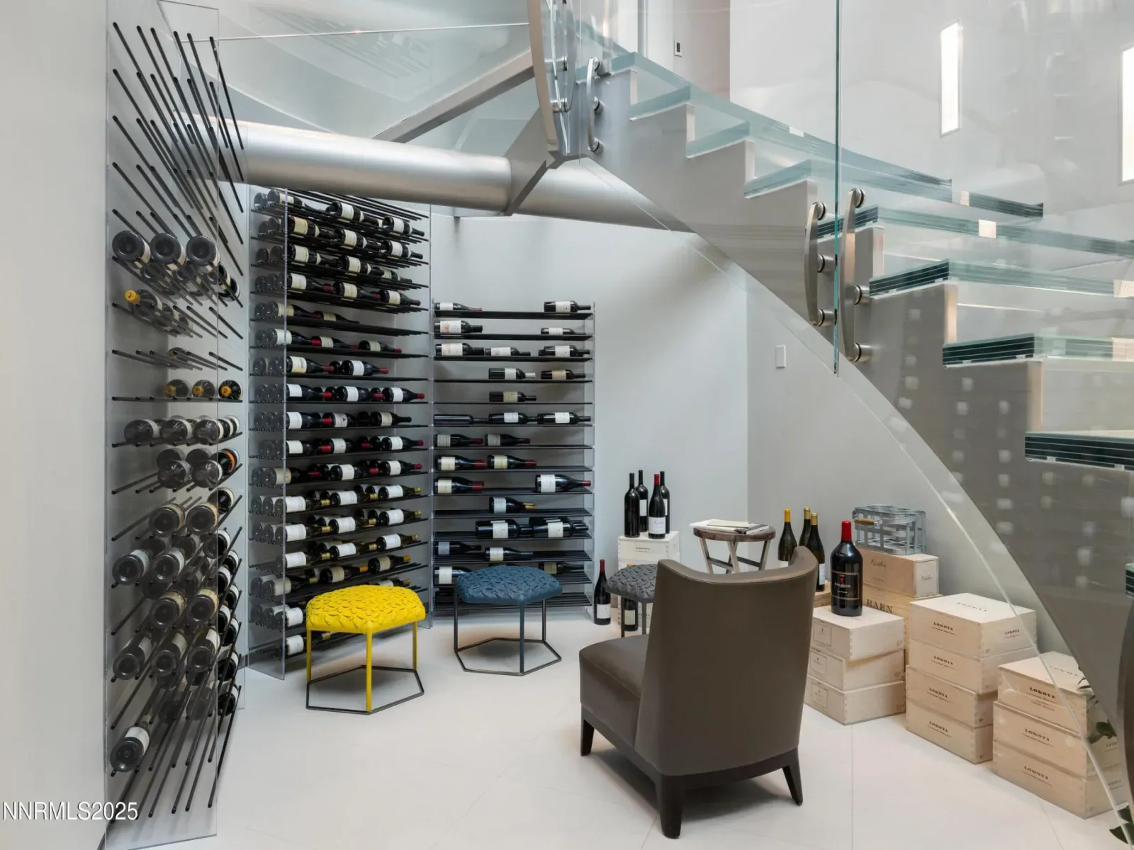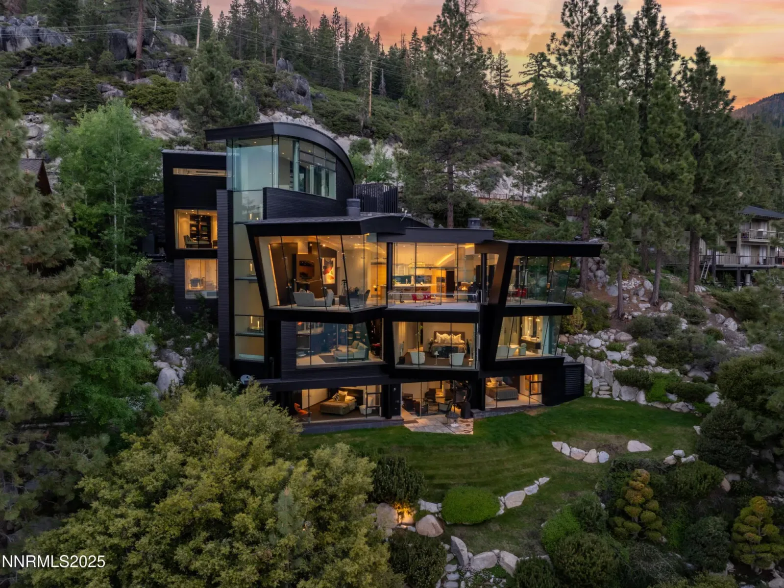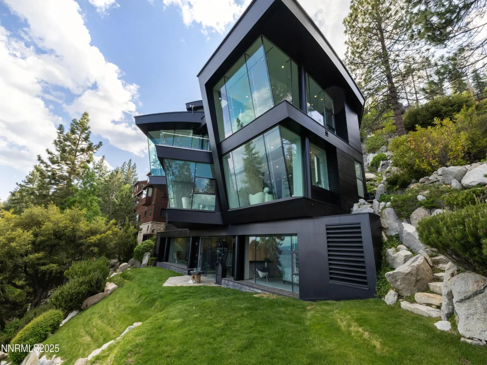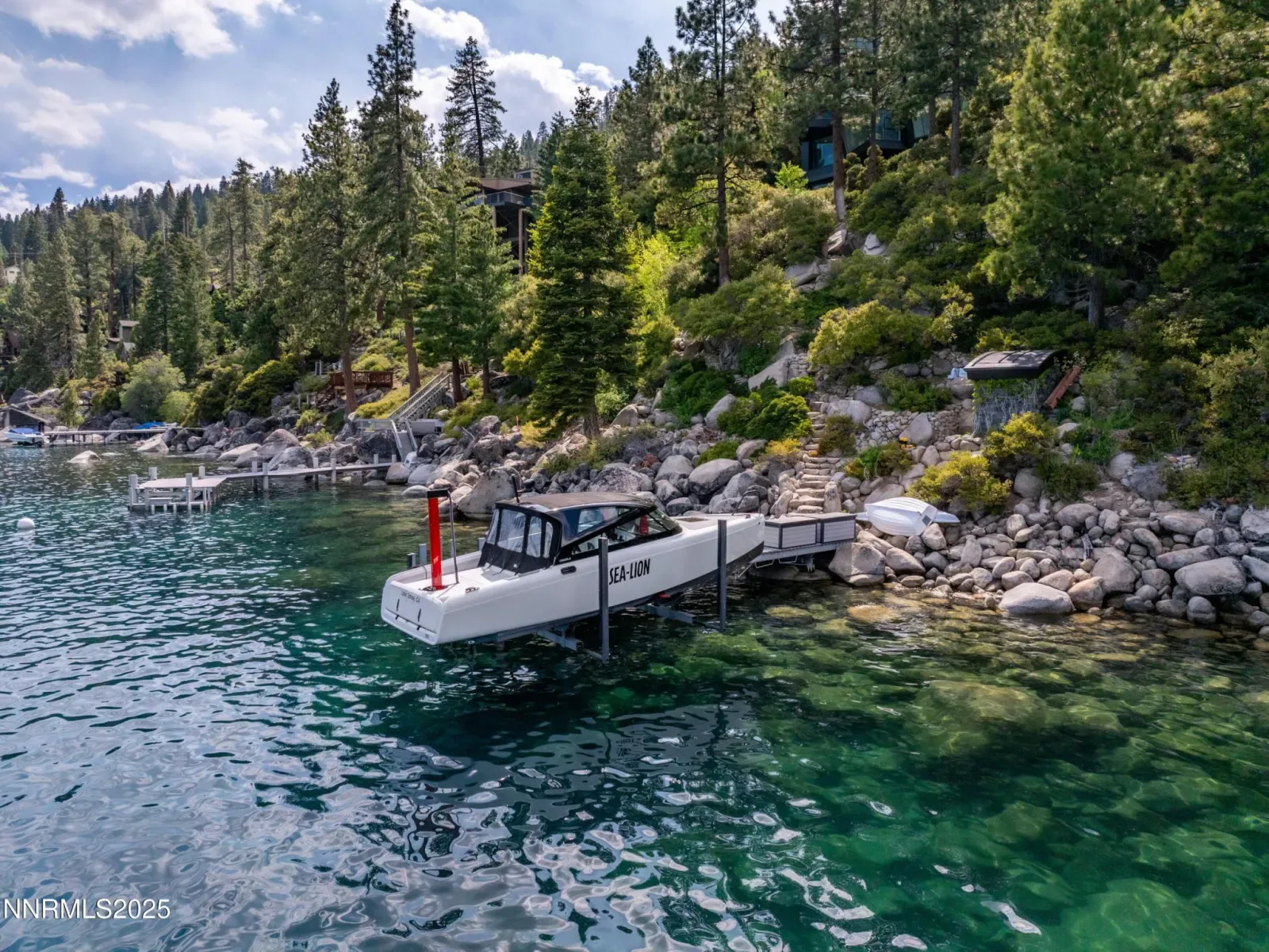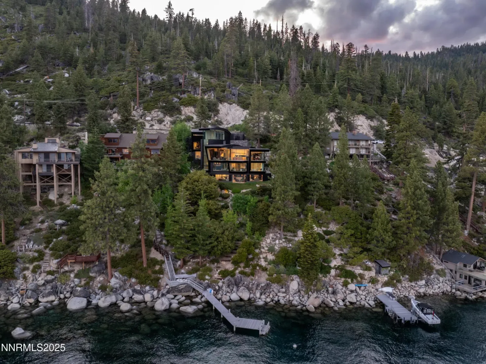 Architecturally significant and masterfully engineered, this nearly 10,000 sq ft residence is one of Lake Tahoe’s most striking modern homes. Designed by internationally acclaimed architect Mark Dziewulski, the estate is sculpted of glass and steel and perched above 98 feet of pristine Crystal Bay shoreline. A commercial-grade elevator encased in glass, a five-story floating staircase of layered glass, and floor-to-ceiling windows that tilt the eye toward the lake—every element is a feat of design and innovation. The home features 4-bedrooms, 4.5 baths, multiple lounge spaces, a dedicated spa and wellness center with gym, steam room, and a hot tub that fills and drains at the touch of a button. The upper-level great room and butler’s kitchen open to a heated lakeview deck through a massive pivoting glass door, perfect for entertaining. Custom cabinetry, radiant heat, recessed blinds, a heated driveway, and a large full-home generator deliver comfort with elevated precision. Outdoors, enjoy a steel and Trex pier with a 3 ton boat lift, two buoys, a landscaped lawn at the water’s edge, and rare privacy for a lakefront parcel of this caliber. The .49-acre lot is designed for seamless lakeside living, complete with architectural landscaping and automated irrigation. A granite sculpture by famed artist Jesús Moroles anchors the property in artistic legacy. Located in Nevada with no state income tax, this offering combines refined lifestyle with long-term financial advantage. Offered with full furnishings negotiable. This is not just a lakefront home—it’s a livable work of art.