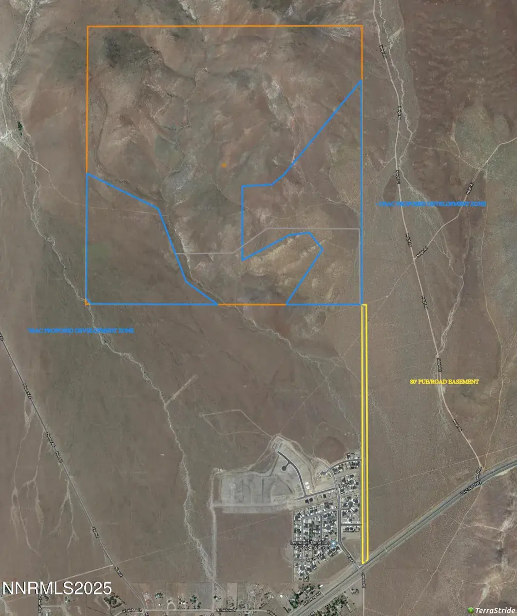 Full section (640 AC) with portions in Lyon County & Storey County, NV. Lyon County portion of the property is 10.8 AC with 80′ PUE and Roadway easement which can connect the property directly to Hwy 50 E. Storey Co. portion is 630 AC, located within the Economic Opportunity Zone. Unlock the potential for commercial/industrial/residential or mixed rezoning, with potential tax benefits of being within the Opportunity Zone., Property can be accessed from the East via Neigh Rd off Hwy 50 E. PUE and Roadway easement would connect the southeast corner of the property with HWY 50 near Bryce and Chavez Rd. See map under virtual tour. Zoning and accessors maps under document tab.