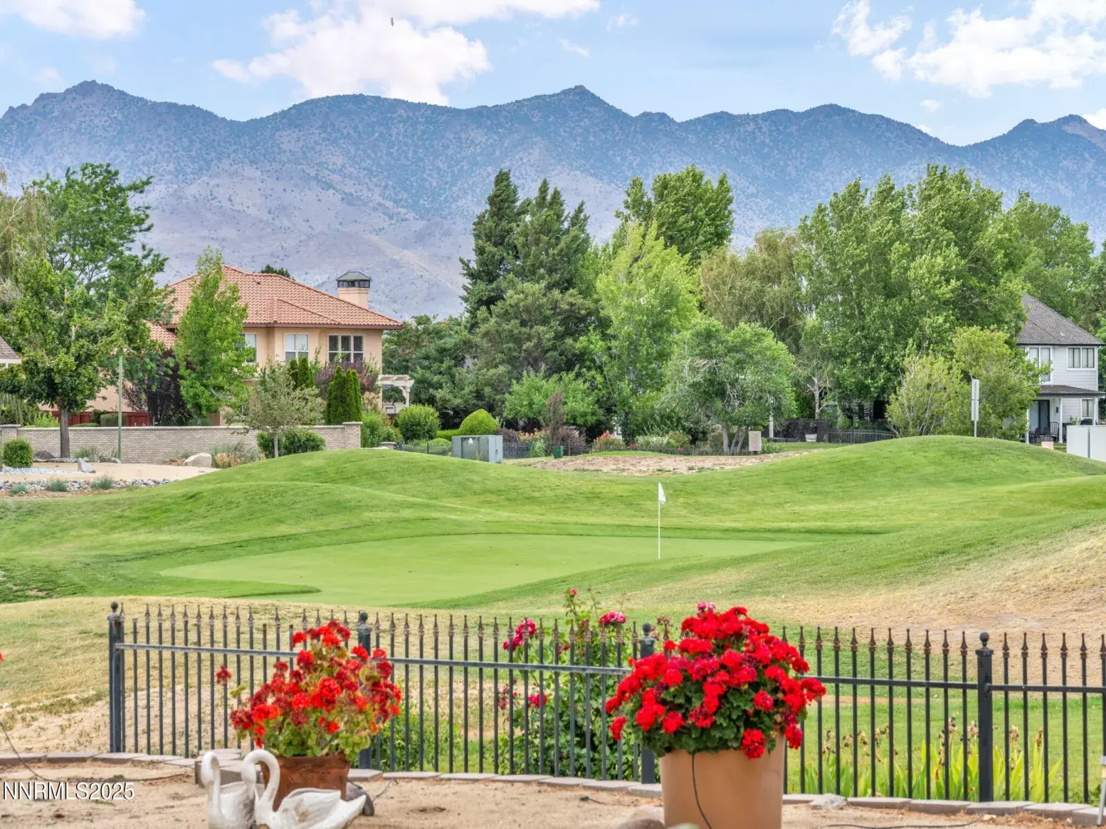 Owner has a VA Loan which may be assumable for a Veteran with a great low rate! Two-story home situated on the 15th green at Dayton Valley Golf Course with breathtaking views! Enjoy serene mornings and vibrant sunsets from your large, peaceful backyard complete with a charming Gazebo perfect for relaxing or entertaining. Easy care landscaping in front & backyards. Mature trees line the golf course. The spacious main-level primary suite offers comfort and convenience, while the kitchen features elegant quartz countertops and ample workspace. Thoughtfully designed with both style and function in mind, this home offers a rare blend of privacy, scenery, and modern upgrades. The kitchen, family room and primary suite feature views of the backyard & fairway. Enjoy mountain views from the front & back of the home. Your new home is waiting for you to start living the golf community life! Beautifully located in the midst of large custom homes. Owner has a VA Loan which may be assumable for a Veteran.
