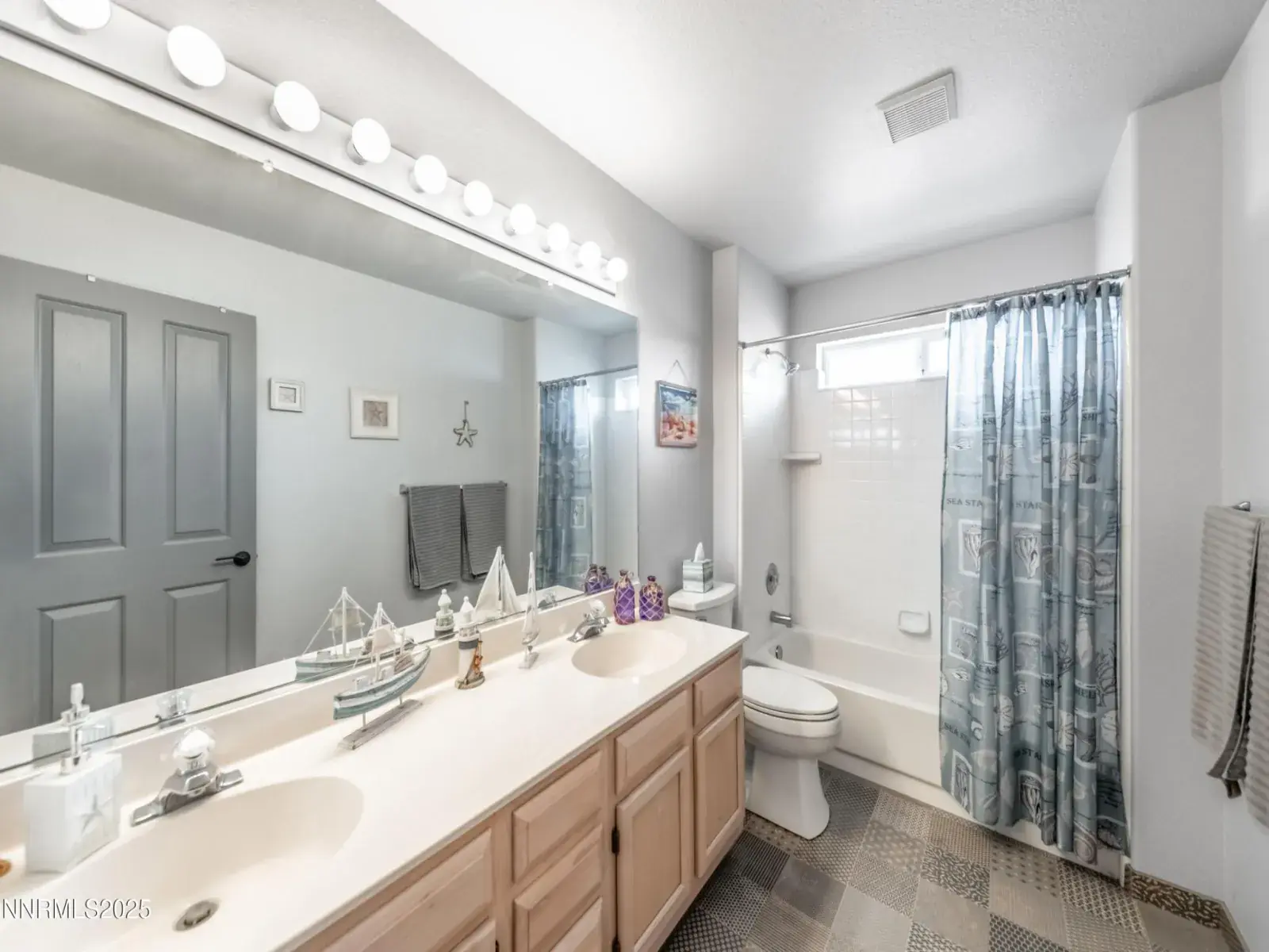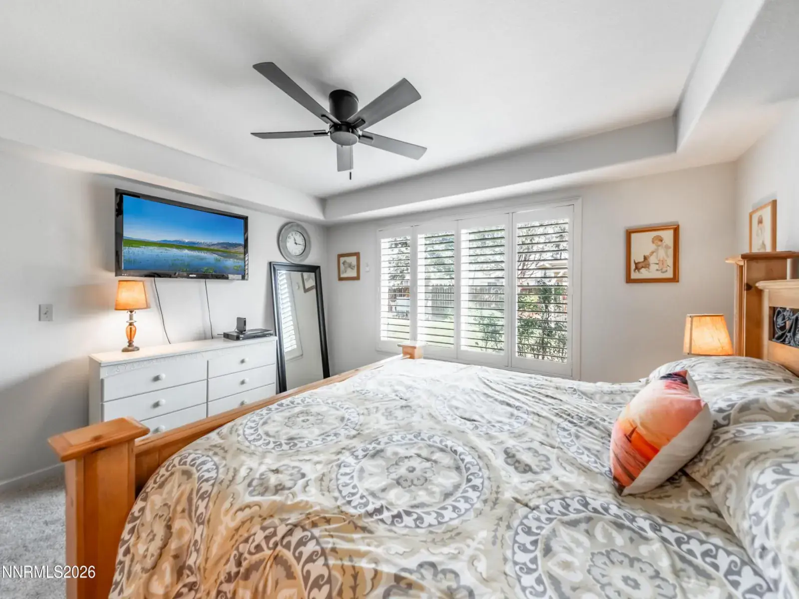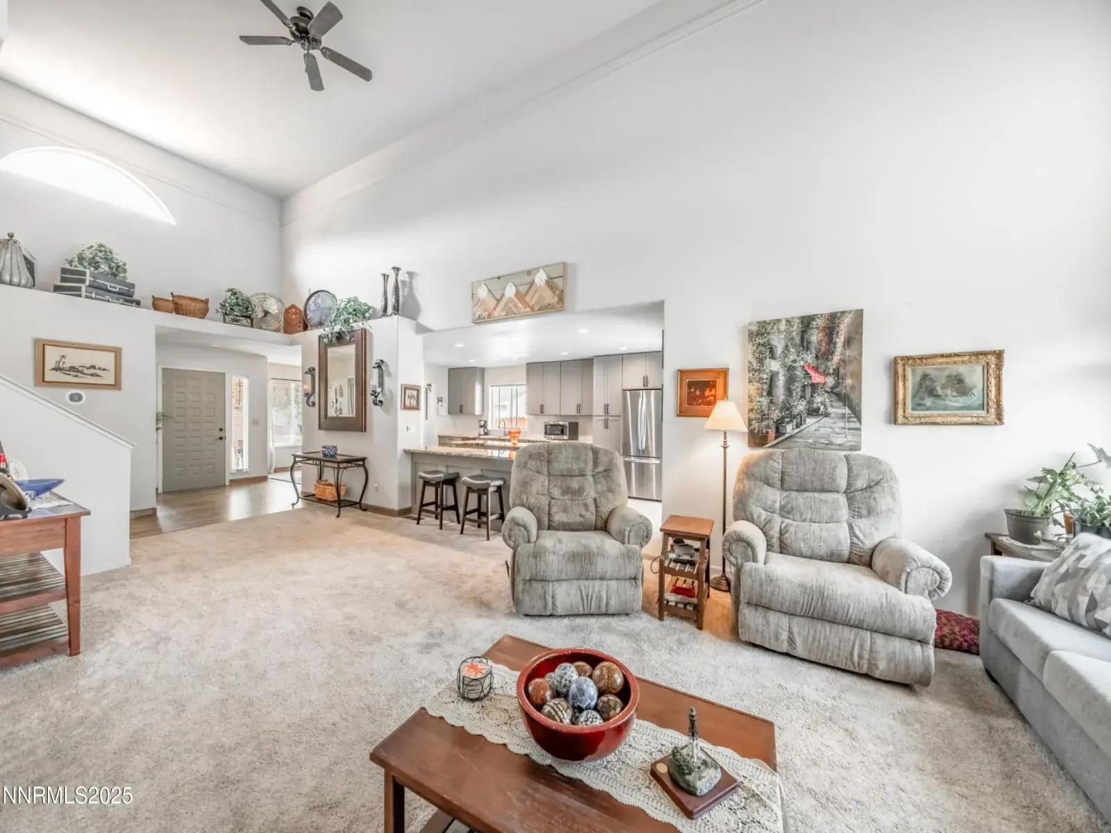 Nestled in the gated Dayton Valley Country Club, this home delivers an idyllic retreat with stunning updates and majestic mountain views. Inside, the open-concept design allows the natural light to be a central part of every room. The kitchen, with its large island and stainless appliances, offers eat-in dining, a breakfast bar and immediate access to a sizable outdoor patio, making morning coffee a truly picturesque experience. Recently renovated with beautiful granite countertops, soft close cabinetry, sliding shelves and tiled flooring, your meals here are not to be missed nor disappointing. The formal dining room supplies the additional space desired for your gatherings, events or to display beautiful artistic collections. The adjoining living room is plentiful and spacious~ Enjoy your pellet insert on a cold evening or warm your toes on your new flooring, with plush carpet in a neutral pallet to appeal to any guest. With a great room this voluminous, providing abundant wall space and height, you will not have to question your furniture and decor design layout. The ceiling height alone is a showstopper, showcasing the absorption of natural light throughout. The oversized windows are your centerpieces on a snowy winter morning and allow the outdoors to be brought within view on demand. You are just steps away from your primary bedroom, with a newly remodeled ensuite that offers a gorgeous dual vanity, new flooring, spacious storage options and an oversized walk-in shower. With the primary ensuite on the main level, you’ll experience waking up to the sun rising over the community as a daily luxury and the convenience of lower-level living. Your guests will enjoy the newly updated half-bath and the oversized laundry room, also offered on the main level. Upstairs you will find the additional bedrooms, both spacious and clean, beautifully tiled guest bathroom and peeks of the High Desert from every window. The home’s exterior is a harmonious blend of stucco and greenery, with an open patio perfect for enjoying the serene landscape. The lush rear yard offers seasonal blooms, numerous trees, a concrete parameter walkway and a wonderful gazebo to stargaze under or listen to the rain fall atop. The front yard grows spectacular foliage, decorated alongside a gorgeous Weeping White Birch with lush landscaping and obvious curb appeal. With a 3-car garage and additional parking spaces in your driveway, your guests can arrive without having to utilize the guest parking spaces within the community. Dayton Valley Golf Course is just around the corner and would make an excellent daily roundabout. The landscaping is well maintained, the golf ponds attract the ducklings and the course is great to play. Grab a golf cart, meet your neighbors at the Bar & Grill, enjoy numerous seasonal events and truly dive into the lifestyle you deserve. This home is more than just a place to live; it’s a front-row seat to the beauty of nature, offering a peaceful and luxurious lifestyle in Dayton, Nevada. For our Vets: The current loan is assumable! Details can be provided upon request.