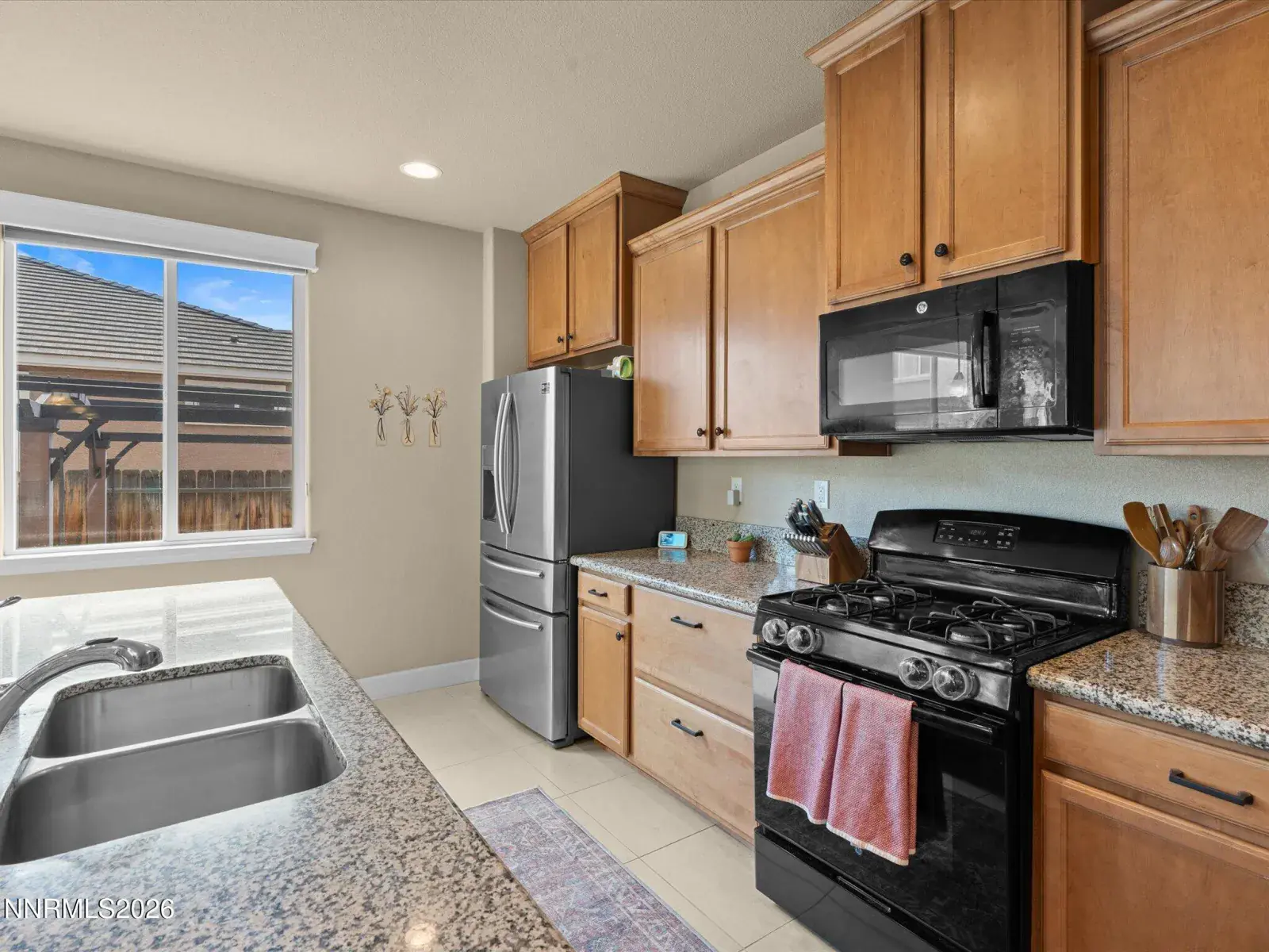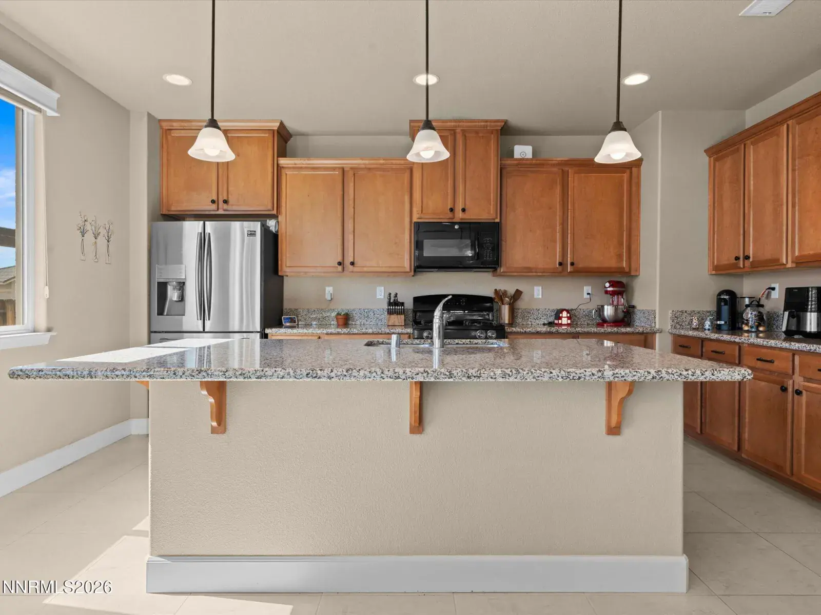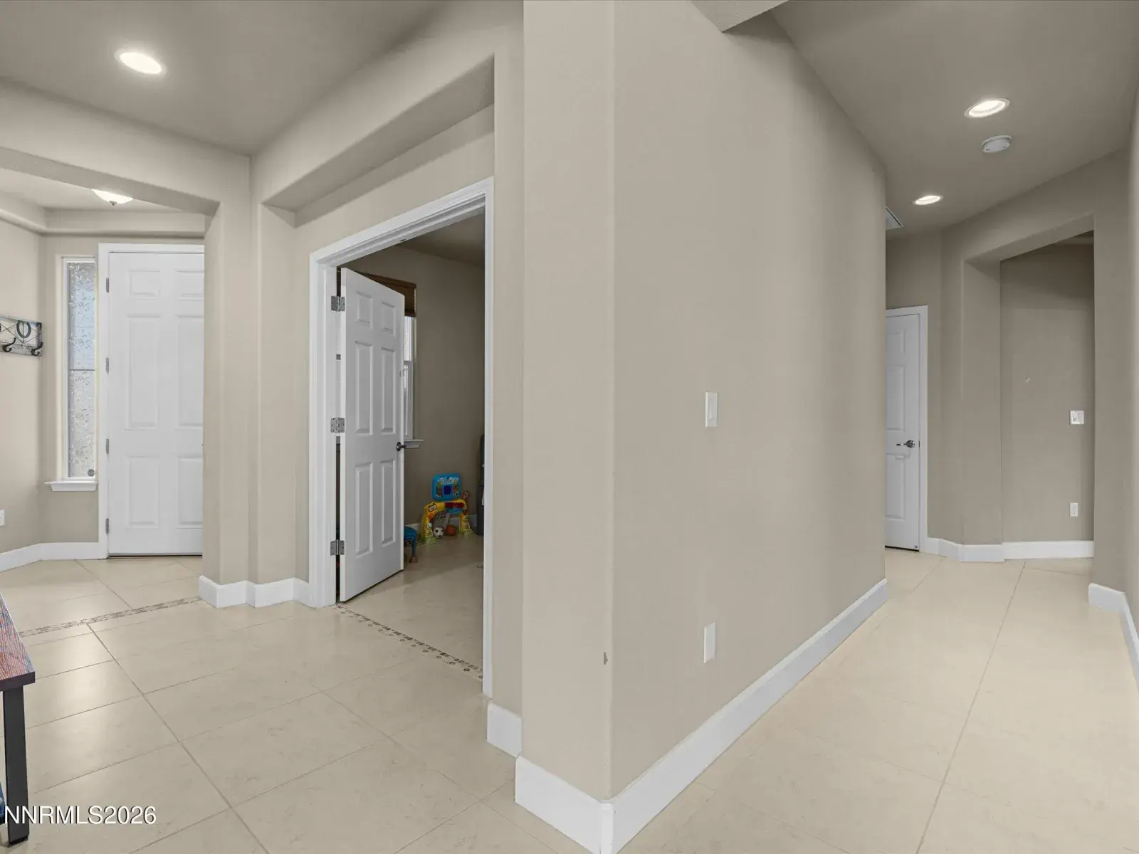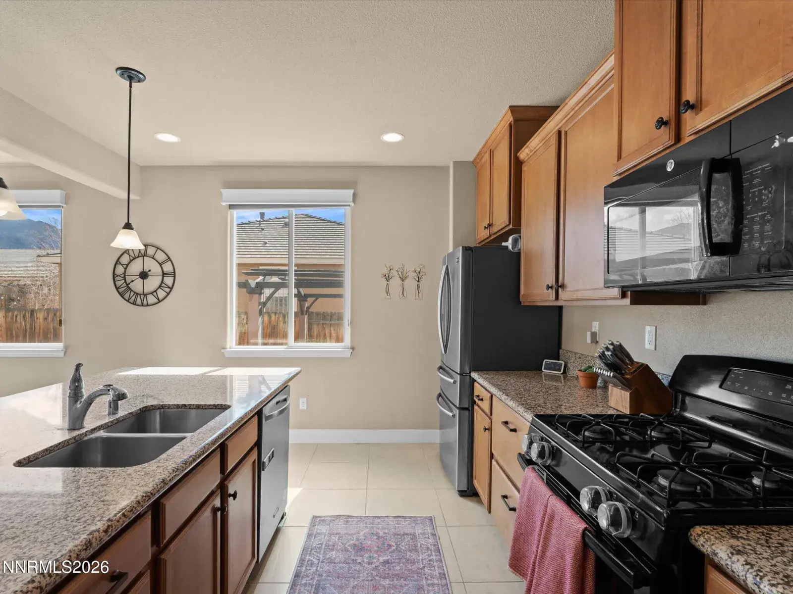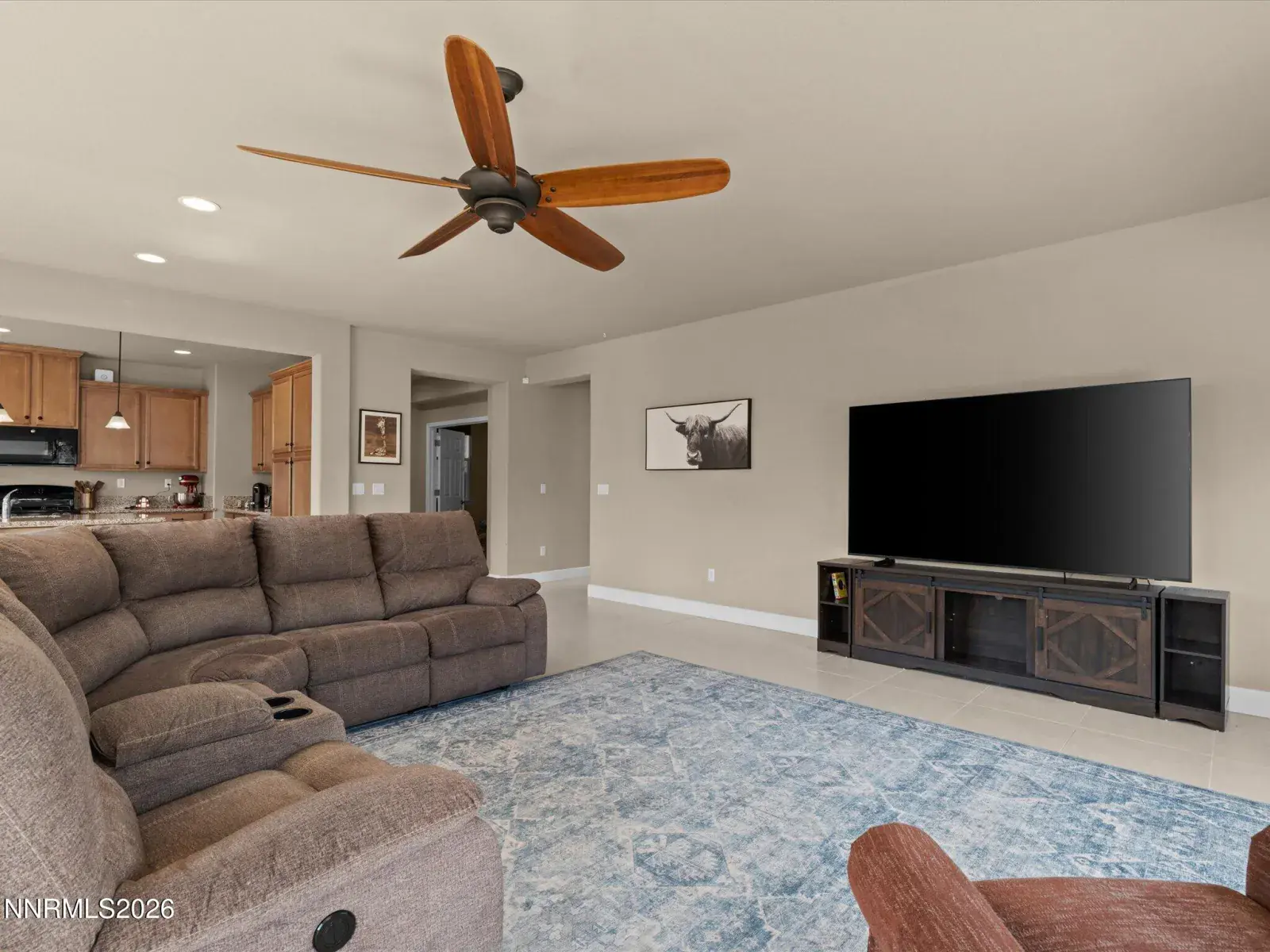 Beautifully maintained home located in the desirable Dayton Valley Golf Course community, offering scenic surroundings and excellent neighborhood amenities. The welcoming foyer opens to a spacious great room with an open concept layout and large windows that bring in abundant natural light while showcasing beautiful views. The kitchen is both functional and stylish with granite countertops, suede stained cabinetry, a large pantry, and an island with bar seating that is perfect for entertaining or everyday living. The primary suite is thoughtfully positioned on the opposite side of the home from the additional bedrooms, creating privacy and comfort. The suite features a double vanity, relaxing soaking tub, separate shower, and an oversized walk in closet with additional shelving. Throughout the home you will find 18 inch tile flooring, with comfortable carpeting in the bedrooms. In addition to the three bedrooms, there is a dedicated office with French doors that could easily serve as a fourth bedroom, guest room, or flexible workspace. The 3 car tandem garage offers ample parking and storage and includes a utility sink that is ideal for a workshop or hobby space. The garage also features a remote system with phone and camera capabilities, and the home includes a water softener system. The low maintenance backyard is designed for easy enjoyment and features a beautiful water feature, a Sunset wind sensor patio cover, and a Tuff Shed with full electricity. Located close to the Dayton Valley Golf Club driving range and clubhouse, residents also enjoy tennis courts, scenic walking trails, and miles of open space. This home offers comfort, functionality, and golf course community living in Dayton, Nevada. Do not miss the opportunity to make this beautiful home yours.