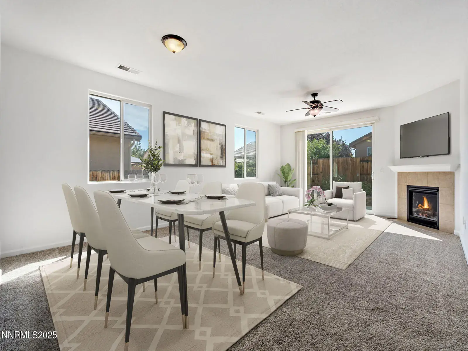 Inside, you’ll enjoy a modern layout featuring a cozy fireplace in the living area, a large walk-in closet in the primary suite, and a separate laundry room for added convenience. The 2-car garage provides ample storage, while the exterior offers minimal, low-maintenance landscaping perfect for easy living. Ready for new owners, this home is ideal for anyone seeking a turnkey property in a secure neighborhood.
