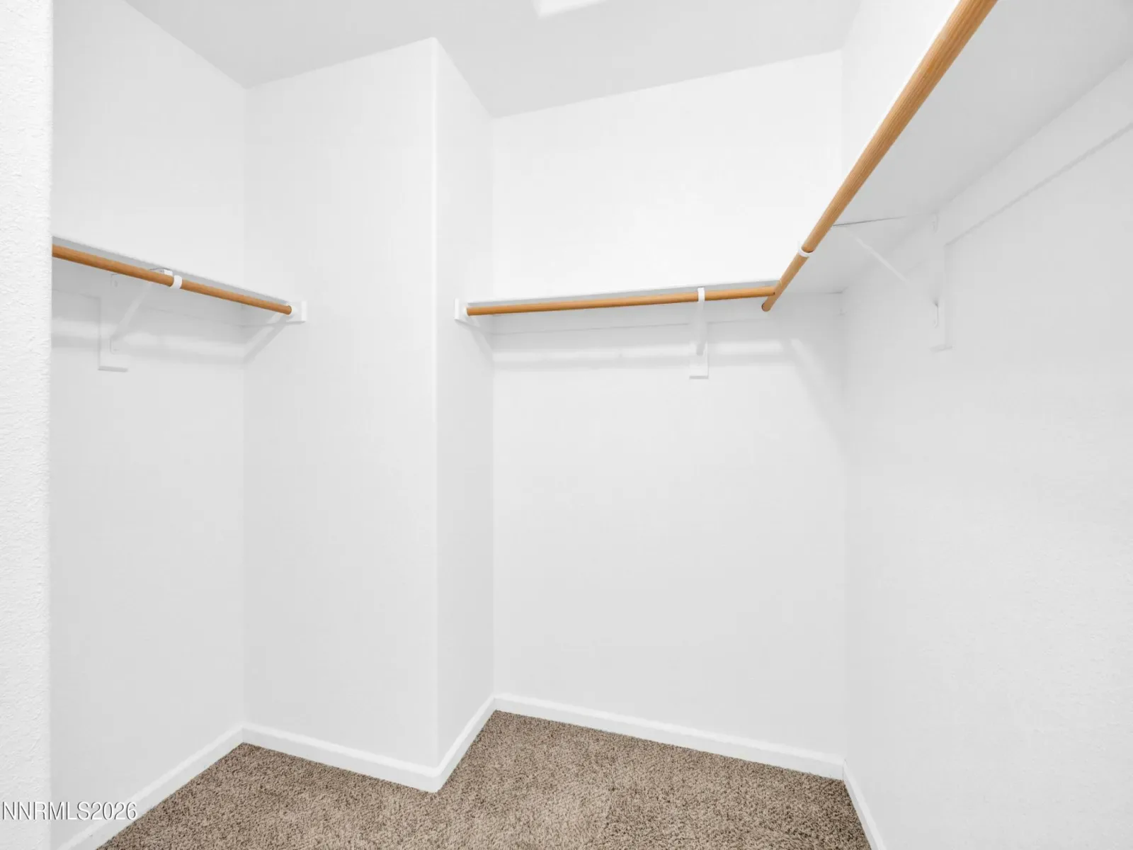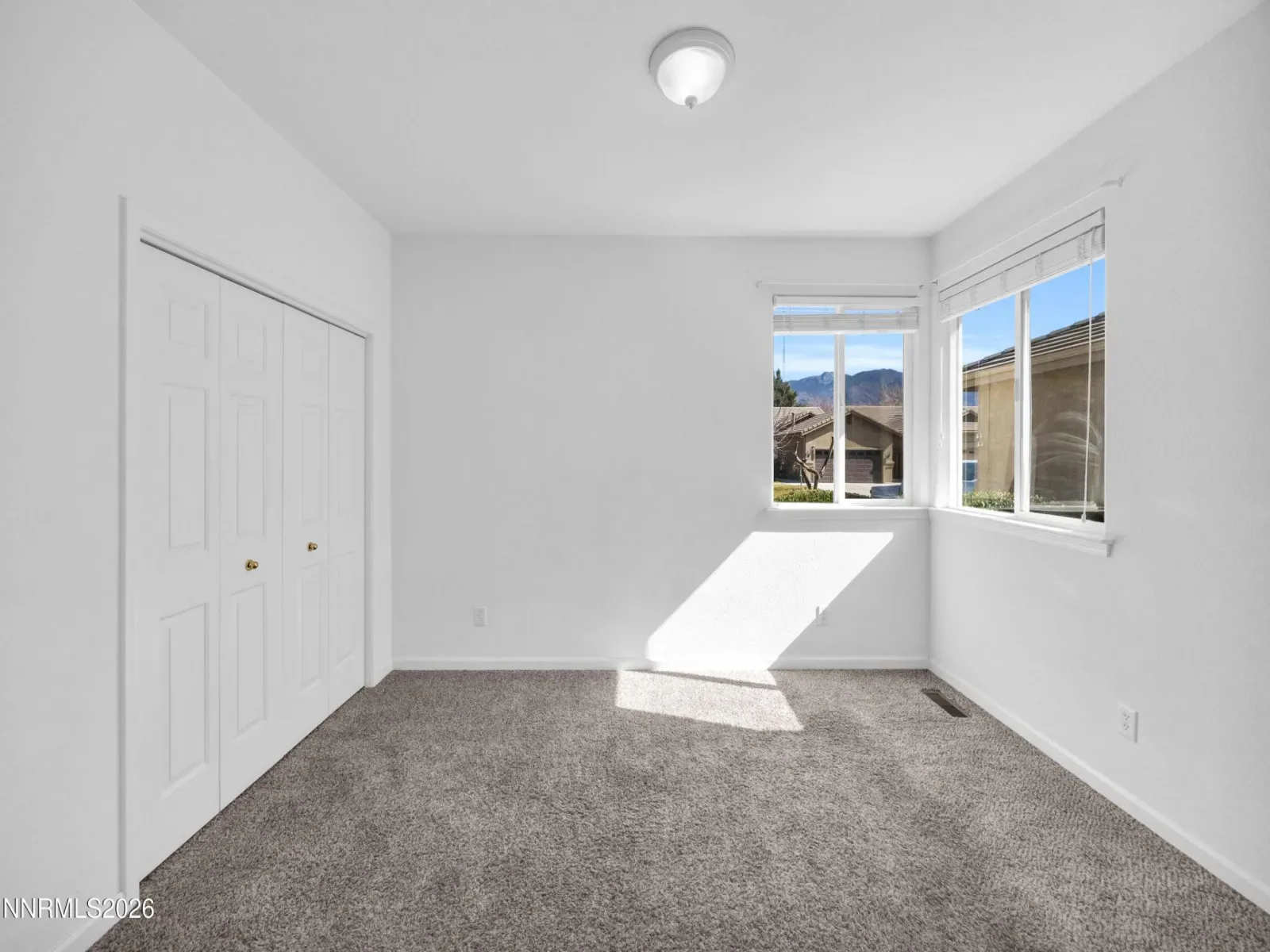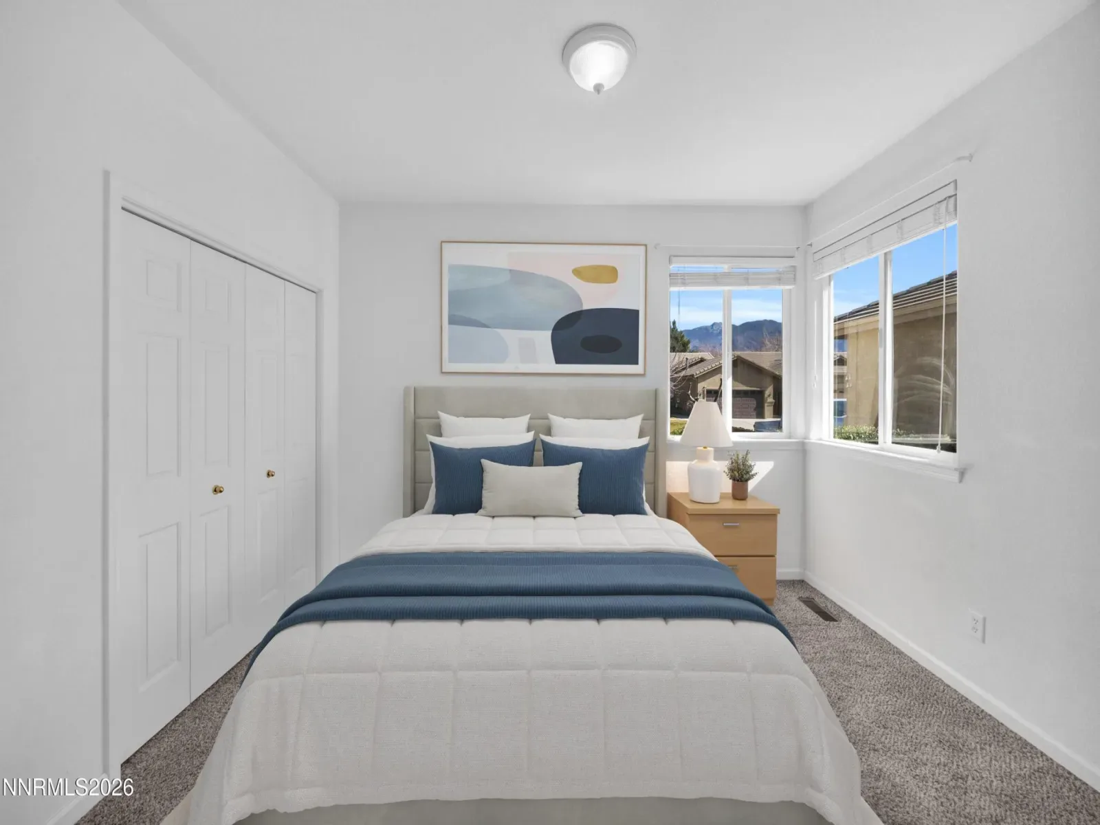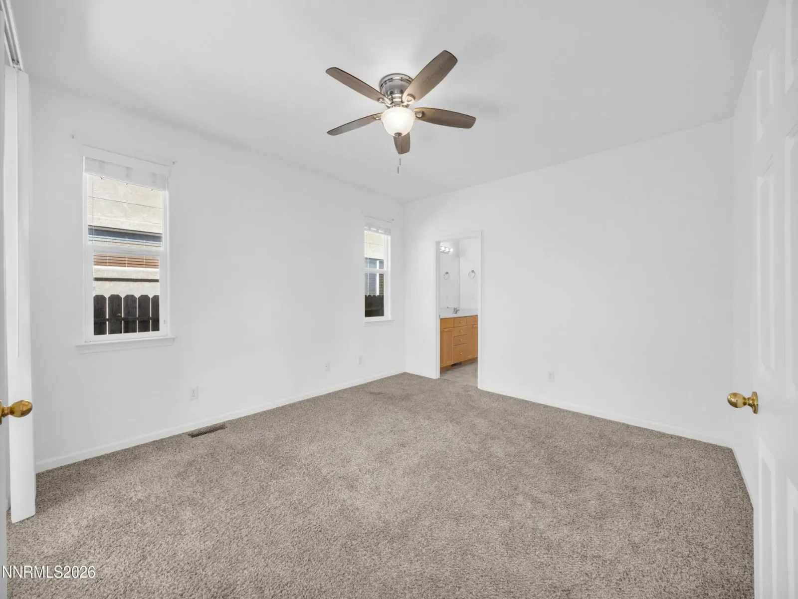 Vacant and charming two-bedroom, two-bathroom home nestled in the heart of the Dayton Valley Golf Course Community in Dayton, NV. This 1301 square foot gem boasts a spacious great room, perfect for entertaining or relaxing. The master suite features a generous walk-in closet and French doors, adding a touch of elegance to your private retreat. The home also includes a convenient attached two-car garage, providing ample storage and parking space. Stay cool in the summer with the installed AC system and enjoy the easy-care landscaping that adds to the home’s curb appeal. As part of a gated neighborhood, you’ll enjoy an added layer of security and peace of mind. Some photos have been virtually staged.