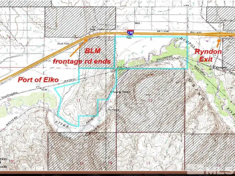 This property lies approx. 13 miles East of Elko, Nevada on the South side of I-80. It has the Humboldt River passing through it and has over 300 acres of surface water rights out of the river. The old dams and ditches are not in place anymore and the best option to put the water back on the old fields would be to pump out of the River. There is potential to sell water rights off the property as well as these are older water rights. The property would also have a lot of gravel on it ., If you’re a duck hunter or chuckar hunter this could be your private hunting reserve! The river bottom is full of birds and other wildlife.