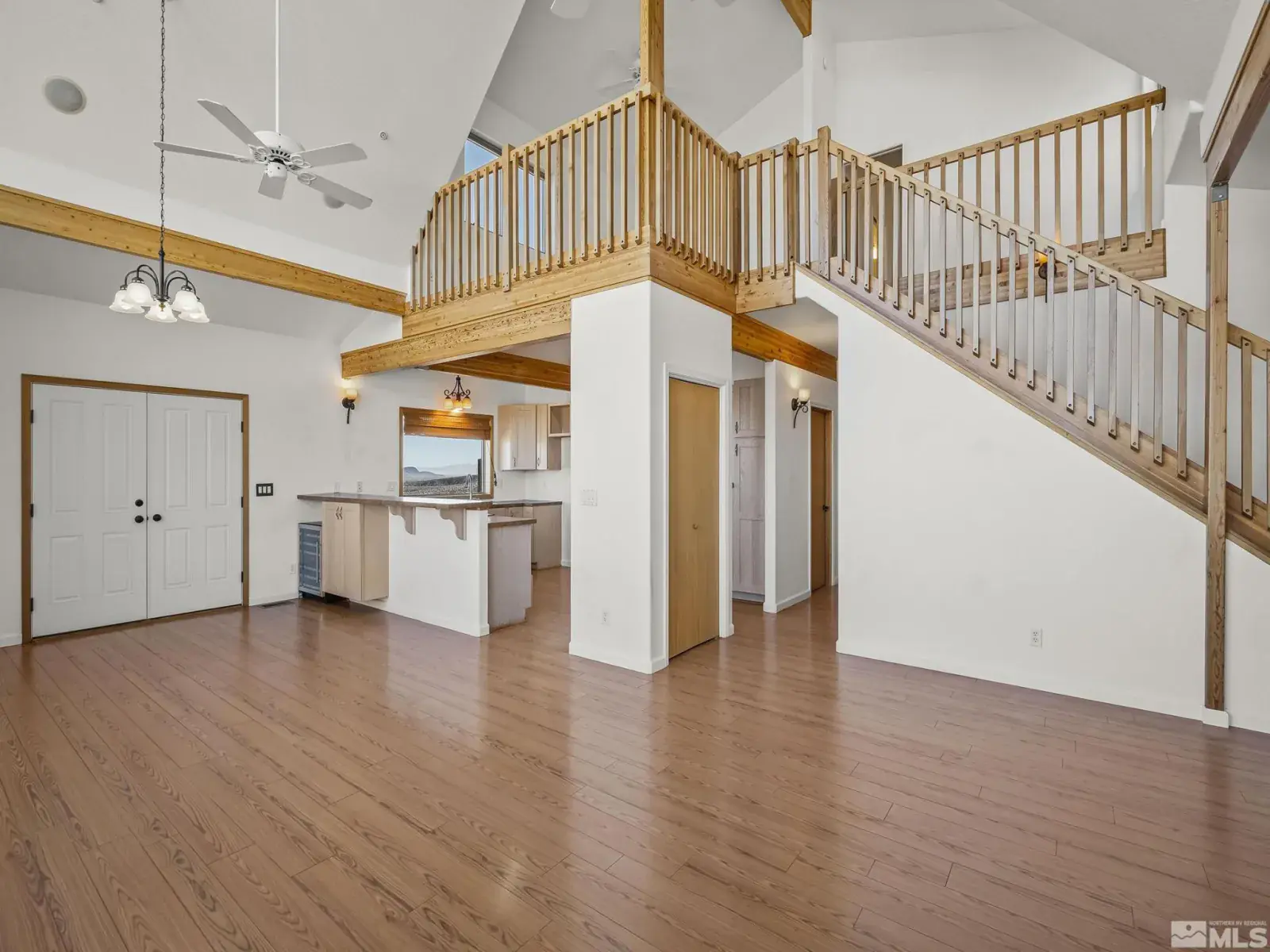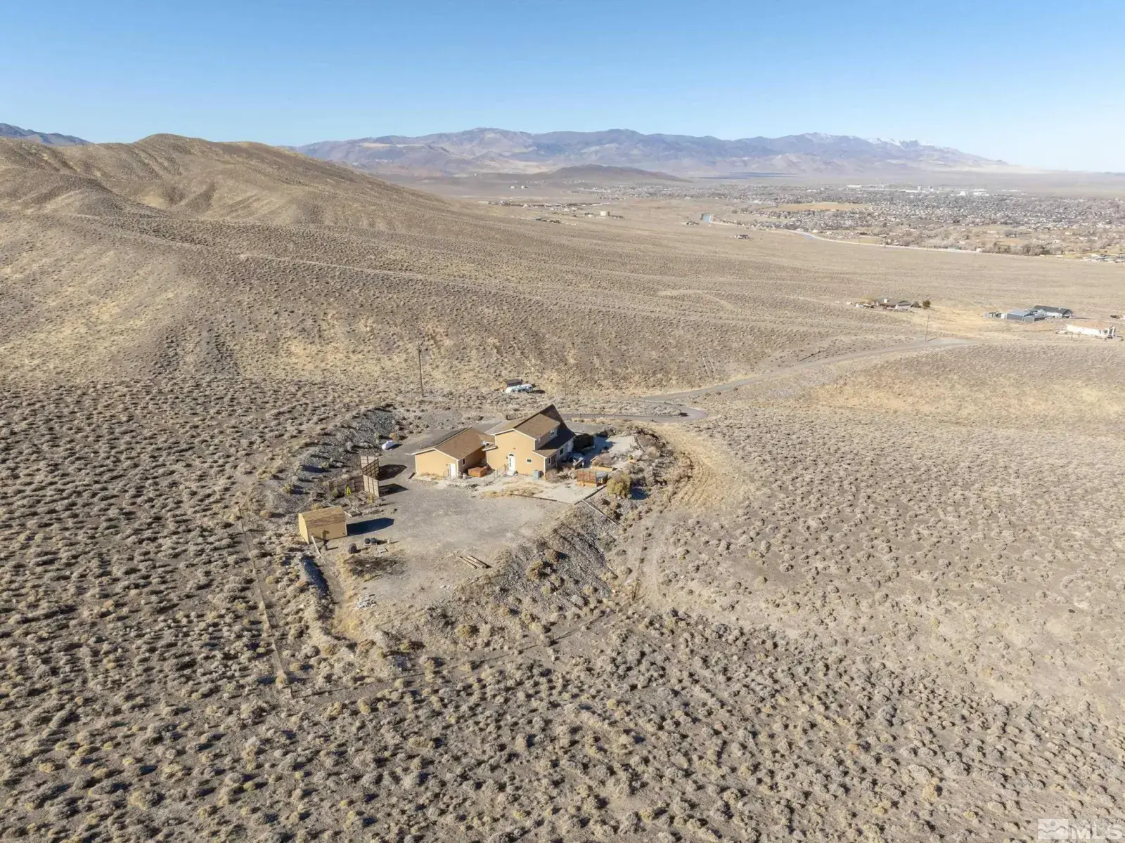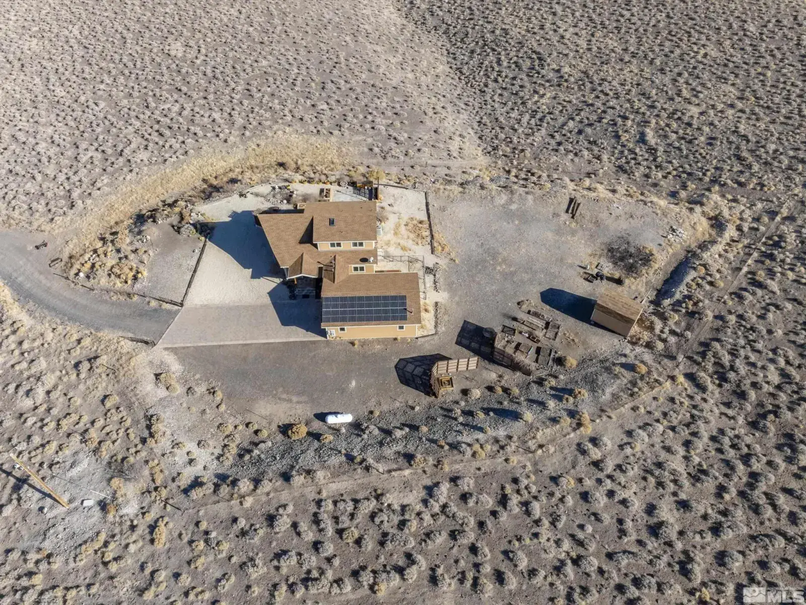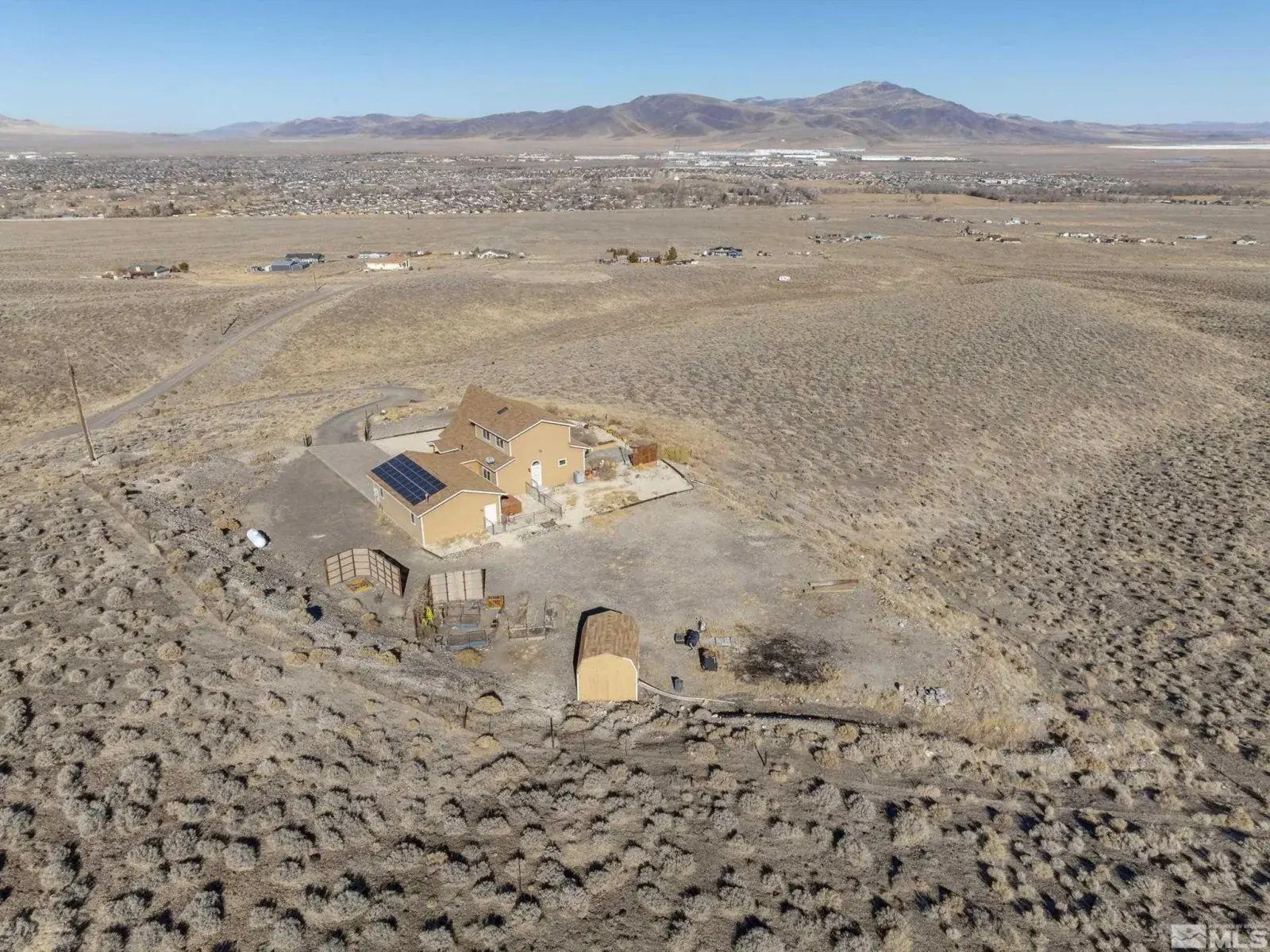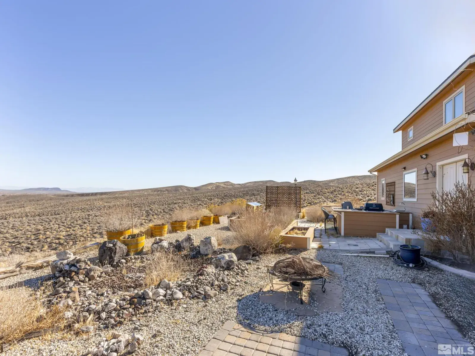 You won’t get views like this without being on top of the hill! 5.25 acres of unobstructed views, abundant privacy & natural light. Horse property approved, 4 car heated garage/workshop – perfect for someone seeking storage space, a workshop or garage for recreational vehicles and outdoor “toys”. Solar panels offer substantial savings, Well (water tested). Main level boasts: primary bedroom / luxury bath with heated tile flooring + 1/2 bath, generous laundry/mud-room, access to garage with high ceilings, family room/kitchen/dining + eat up bar. Kitchen was designed to reduce unnecessary bending – offers elevated dishwasher and mid-high microwave, dual sinks provide added convenience, under-bar overflow refrigerator – perfect for entertaining and grab and go drink access. Upper level offers: additional full bedroom with attached bath & walk-in closet + loft/bonus/office/sewing space. Back patio offers fully functional kitchen: surface space, 2 grilles – propane/charcoal, double trash, granite surface, drawers & cabinets, refrigerator & prep sink. Access to Jacuzzi hot tub and fully fenced dog run is located off the hall connecting home/laundry/garage. This home offers all the benefits and privacy of country living with the convenience of a short drive into town for: grocery, gas, shopping, restaurants, entertainment, postal services, etc. Jacuzzi hot tub, all appliances in house as well as outdoor kitchen will convey with property. road grader will also convey and is a necessity for road maintenance. Solar panels are owned and provide substantial savings – examples of this can be provided upon request. If you’re seeking the benefits of privacy, land, wide open spaces and modern country living – this home has it all. Located out of the busyness of town yet only a 7-10 minute drive to all of what Fernley has to offer: convenient shopping, grocery, pharmacy, restaurants, schools, parks, etc. Additionally – Reno/Sparks/Carson City are a 45-50 minute drive from the home providing additional conveniences, activities, entertainment, hotel accommodations, airport and more. So many outstanding features to share! This home requires your time when viewing to appreciate all it has to offer.
