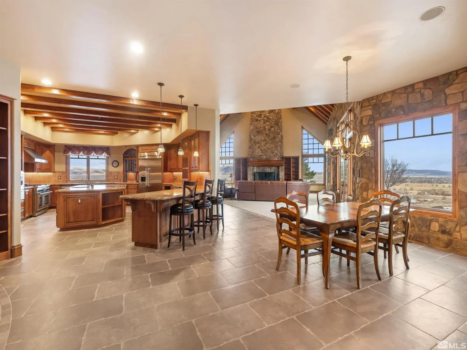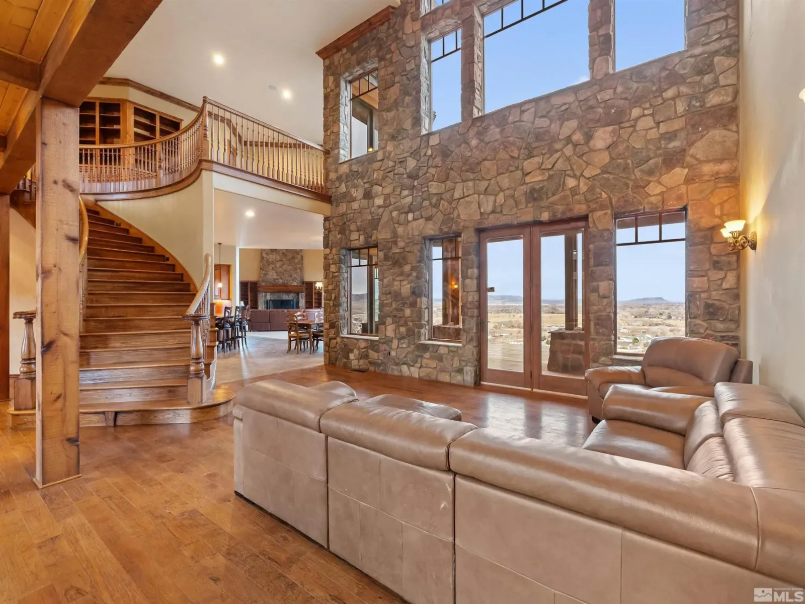Discover Elegance on the Hillside: A Luxurious Sanctuary in Fernley Step into a world of refined luxury with this exquisite hillside estate, commanding breathtaking views of Fernley to the east and expansive open land to the west. Designed with an eye for detail and an emphasis on quality, this property features spacious bedrooms alongside dedicated rooms for meetings, sewing, office, entertaining and fitness, complete with a sauna, ensuring every aspect of your home life is catered to., Entertain in style in the stunning kitchen equipped with all the modern luxuries you can imagine, including granite slab countertops, a commercial-quality gas Thermador range with pot filler, dual dishwashers, trash compactor, and a center island, all set against the backdrop of gorgeous alder cabinetry. The expansive great room dazzles with its massive fireplace, wood-beamed ceilings, and an elegant wet bar, complemented by a formal living room and dining room. Experience ultimate comfort in the master suite, which features a large walk-in closet/dressing room with a separate shoe/hat closet, and an en-suite bathroom with a walk-in marble shower, deep tub, and dual vanities. Start your mornings in the suite’s morning room, perfect for enjoying coffee and pastries without ever leaving the comfort of your bedroom. The large first-floor office provides an ideal space to run a private home business, equipped with custom-built desks, cabinets, a full bath, and a walk-in bank-quality vault room, which can also serve as a second master bedroom. This home has Starlink internet and Wi-Fi capable thermostats. No detail has been overlooked in crafting this 18+ acre estate, from the exquisite finish work to the integrated home system complete with an alarm. The property is fully fenced with tan vinyl, and utilities are pre-stubbed below the hill for potential barn or workshop additions. With a sprawling 5-car garage totaling 2252 sq. ft., and a location just minutes from town, this home is not just a residence but a statement of lifestyle. Perfect for horse owners and those seeking a private, luxurious living experience. Buyer & Buyers Agent to verify all information.