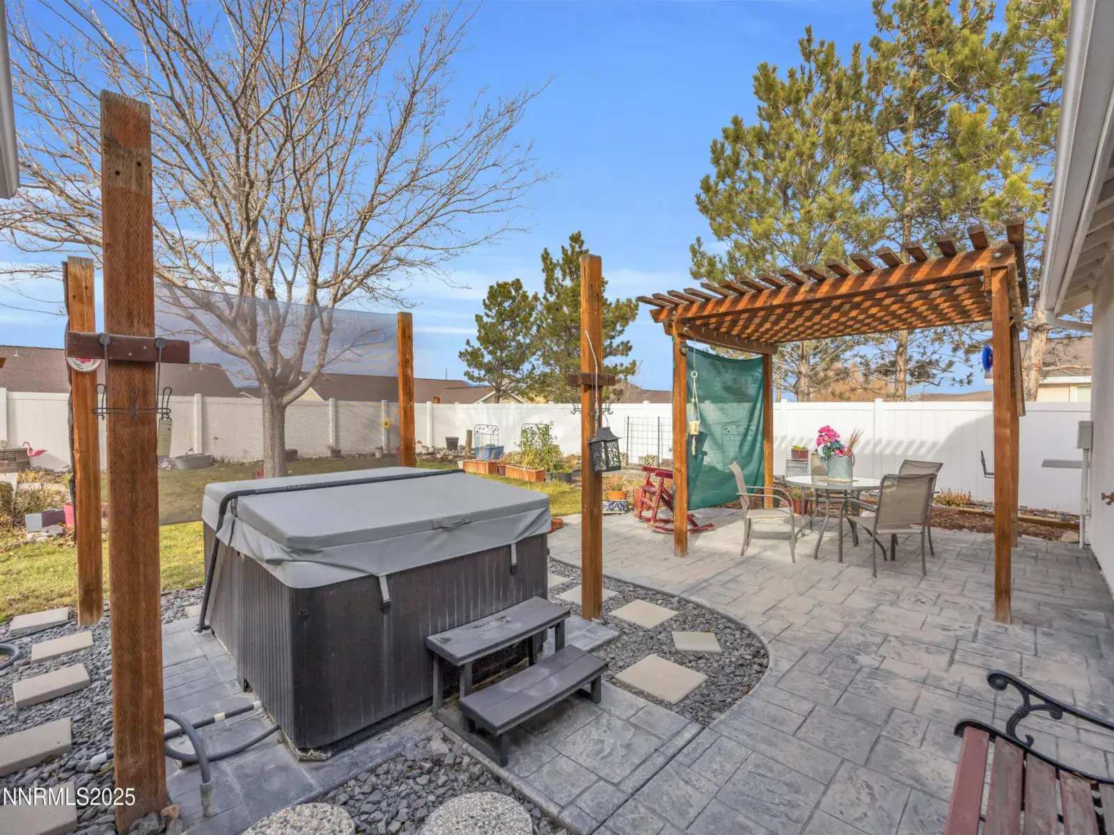 Pride of ownership is noticeable throughout this beautifully well-maintained home. Thoughtful details includes a spacious kitchen with high cabinets that provide ample storage, granite countertops with a tile backsplash that brings a touch of modern design and easy maintenance, perfect for both everyday cooking and entertaining, expansive picture windows that fill the space with warm natural light while showcasing the outdoor views, wood shutters throughout the home, the primary bathroom has been upgraded with a modern tile walk-in shower, and a sleek floating sink. This property is one a kind, offering an outdoor build in kitchen equipped with BBQ, microwave, refrigerator, storage, and ample counter space to prepare meals, charming pergola, a mature tree that provides natural shade, stamped concrete patio, relaxing hot tub, RV parking, together these amenities transform the back yard into the perfect outdoor living, it’s an ideal setting for dining, relaxing, and hosting family and friends. This home also offers the rare benefit of no HOA.