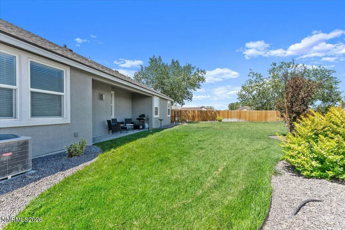 Welcome to Desert Lakes in Fernley! Just steps from the golf course, this exceptional single-level home offers the perfect blend of comfort, style, and functionality. Featuring 3 spacious bedrooms, 2 bathrooms, and a 2-car garage, this well-maintained, 4-year-old home showcases a bright, open floor plan ideal for both entertaining and everyday living. The inviting living area features a cozy gas fireplace, perfect for relaxing evenings, while updated pendant lighting and a stunning Capiz shell chandelier add a touch of modern sophistication throughout the home. Enjoy beautifully landscaped front and back yards with lush grass, offering a peaceful setting and fantastic curb appeal. Step onto your private patio and take in the serene desert views after a morning round of golfāan ideal retreat for both recreation and relaxation. Nestled on a quiet cul-de-sac, this well cared for home includes premium upgrades such as a water softener and surround sound. Every room features ceiling fans, and the refrigerator, washer, and dryer are all included, making this home truly move-in ready. Experience the best of Desert Lakes livingāmodern comfort, thoughtful upgrades, and tranquil surroundings, all just steps from the golf course.