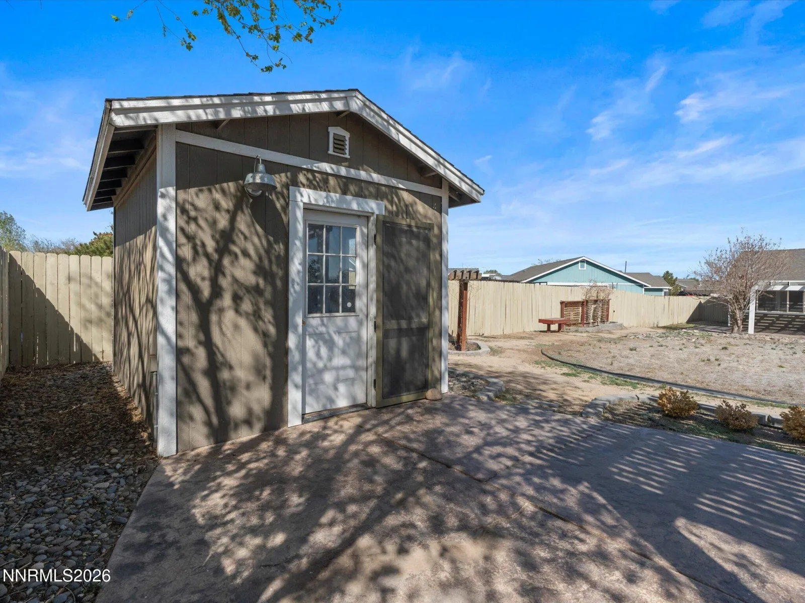 Welcome to this beautifully updated 3-bedroom, 2-bath home located in the growing Fernley area, offering comfort, style, and exceptional outdoor living. From the moment you arrive, you’ll appreciate the charming curb appeal featuring a white picket vinyl fence, additional parking pad, and inviting entry. Inside, the home showcases thoughtful upgrades throughout. The living room is pre-wired with surround sound, creating the perfect space for relaxing or entertaining, and is complemented by upgraded lighting fixtures that continue into the dining area. Plantation shutters add an elegant touch to the home’s interior. The kitchen is both functional and stylish, featuring NEW stainless steel appliances throughout, including a gas range, built-in microwave, dishwasher, and French door refrigerator, along with an upgraded sink and faucet. The guest bathroom has been tastefully updated with a new vanity, sink, mirror, tiled flooring, and a tiled tub/shower combo. The spacious primary suite offers two walk-in closets and a beautifully remodeled bathroom complete with dual sinks, upgraded finishes, and a tiled shower and flooringācreating a private retreat you’ll love. Step outside to a truly special backyard designed for enjoyment. This park-like setting features mature trees and shrubs, extensive stained concrete walkways, a large semi-covered patio, and multiple sitting areas including benches and a charming gazebo. Two storage units provide added functionality, one of which includes electricity. With its combination of interior upgrades, outdoor amenities, and inviting atmosphere, this move-in ready home offers the perfect blend of comfort and convenience.