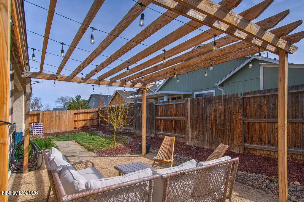 Step into a 2022 built Carter Hill home in the Sundance community! Close to shopping and I-80 access, and walking distance to Fernley’s Out of Town Park! This 2133 square foot single story home has 3 bedrooms, 2 baths and a 2 car finished garage. Great room upgrades include built-in cabinets/shelf wall and gas log fireplace. Granite countertops, island, pantry and huge breakfast bar area add charm to the kitchen. Dining area conventiently located off the kitchen. Recessed lighting in living area and primary bedroom. LVP flooring in all but bedrooms, which have carpet. Built-in covered patio in back. Owners added a pergola to the landscaped back yard. Auto sprinkler at spigot in rear yard stays. Also added is a whole house water softener system and R/O water filtration at sink. Refrigerator in kitchen stays. Washer, dryer and stand are negotiable and at no value nor implied warranty. Schedule your showing appointment for this cared for and move-in ready home today! Please see photos and video tour.