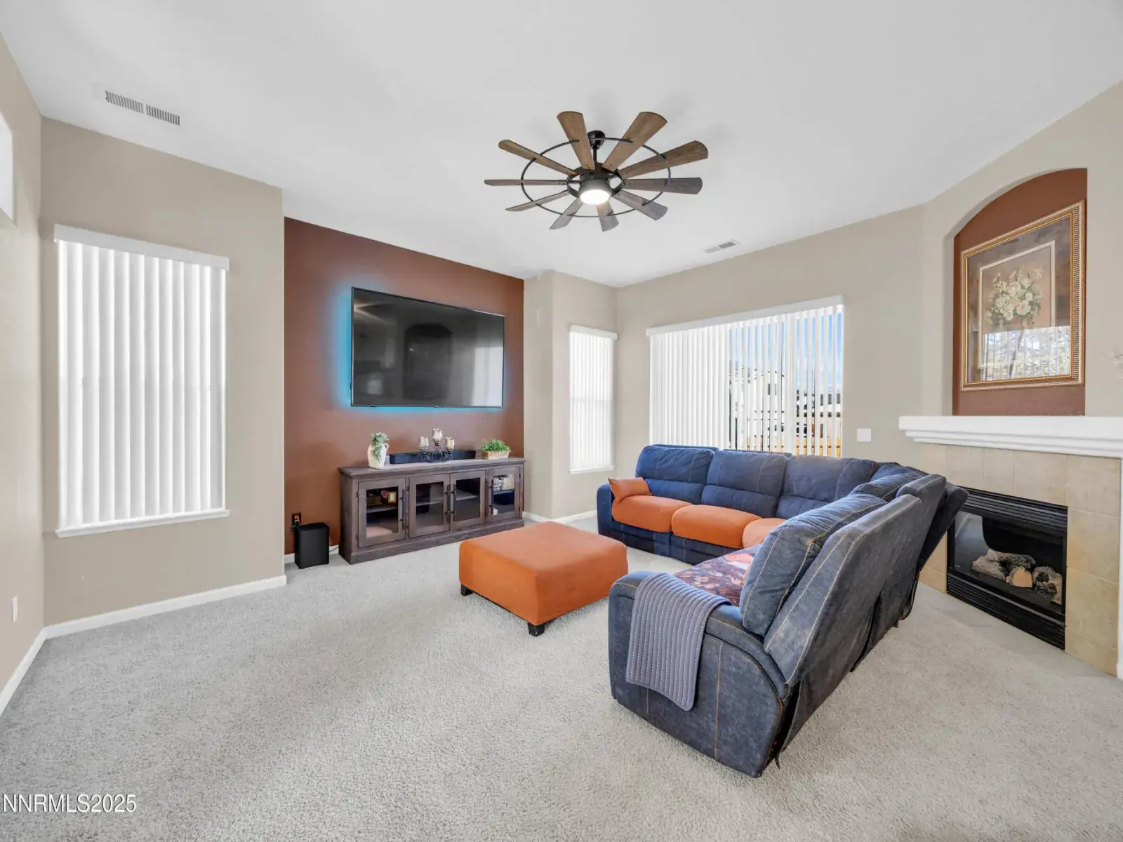 A must see pride of ownership home with no HOA and one of the best values per square foot in Fernley. This well designed single story stucco home sits on an oversized corner lot and offers a functional layout with three bedrooms plus a dedicated office or den that can easily be converted into a fourth bedroom. The interior features thoughtful architecture, multiple living spaces, and high ceilings that create an open and welcoming feel throughout. Gather around the cozy fireplace on those cold winter days and enjoy the comfort this home provides. The kitchen is perfectly positioned for everyday living and entertaining with plenty of counter space, a large island, a pantry, and newer appliances. Mature trees add privacy and shade, while the covered patio and spacious yard offer room to relax, entertain, or add RV parking. Approximately 40 minutes to Carson City and about 40 minutes to Reno, this home delivers comfort, space, and value in a growing Fernley neighborhood. A great opportunity you won’t want to miss.