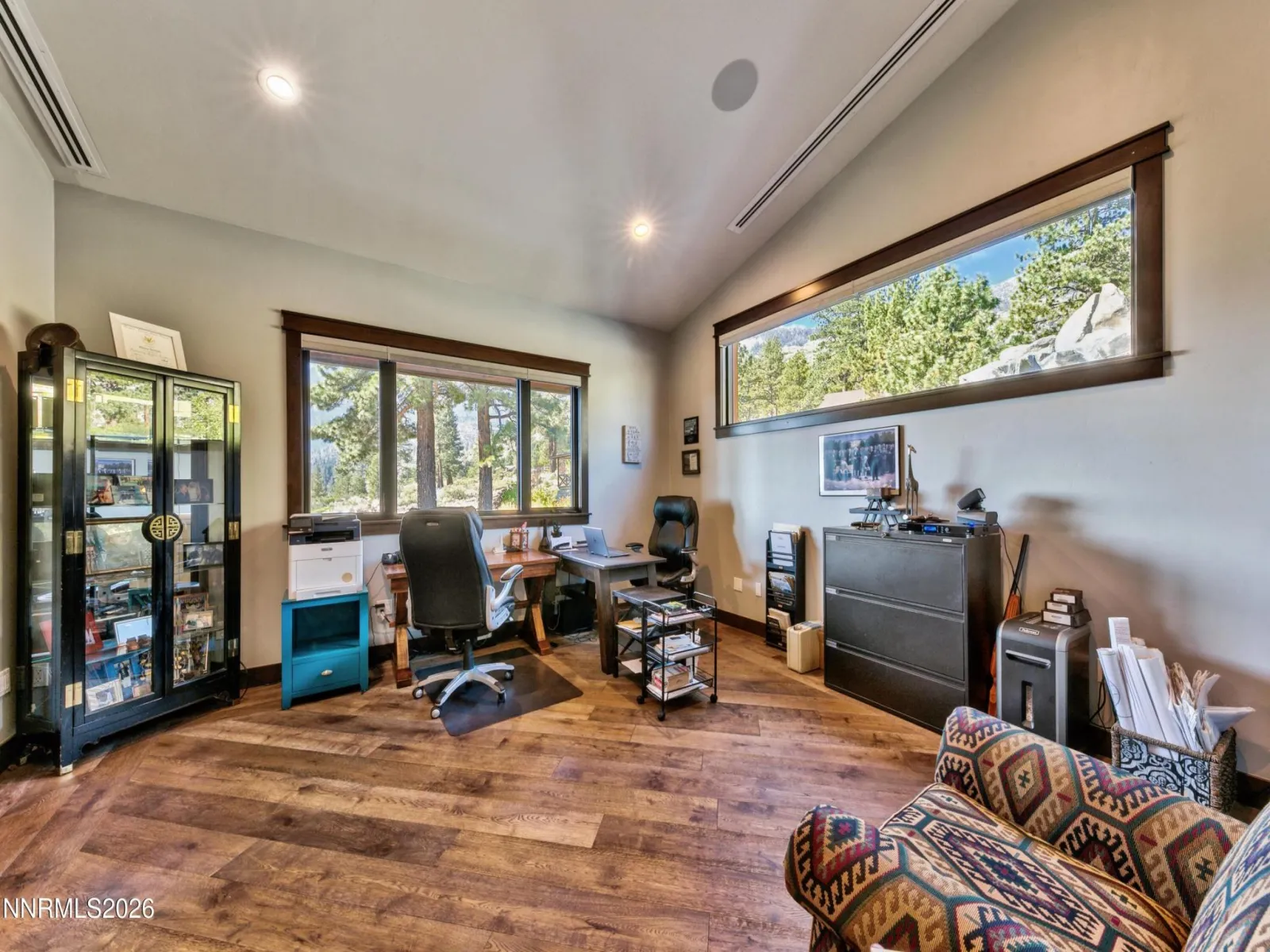Furnished and owner finance oppurtunity! Escape to Jobs Peak Estate. Minutes to Lake Tahoe ā Tahoe-area lifestyle retreat without the traffic, no HOA and with Nevada tax advantages ā ski, lake, and mountain recreation practically at your doorstep, blended with unparalleled luxury and self-sufficient systems. This home is a rare, never-before-listed 10.35-acre mountain compound with unrivaled access to Lake Tahoe and premier ski resorts. Perched in the Sierra foothills with spectacular views of Carson Valley and Jobs Peak Mountain, the property corners Toiyabe National Forest and offers ski-home potential from Heavenly Ski Resort. Minutes to Lake Tahoe, multiple world-class ski areas, dining, and recreation. Showpiece 2019 custom residence ā 11,014 sq ft of luxury: – 5 bedrooms (3 en suites), 5.5 baths, dramatic 32-ft great room with massive fireplace – Gourmet kitchen: 30-ft island, multiple ovens & dishwashers, ice machine, abundant cabinetry – Dining turret with custom wood ceiling and panoramic mountain & Tahoe-range views – Primary suite: heated floors, large fireplace, steam shower, surround sound, marble finishes, two custom closets and vanity – Private speakeasy-style backlit onyx bar & lounge, game room, and state-of-the-art movie theater – Resort-style indoor pool and hot tub; private gym with Tonal, treadmill, rower, and bike Historic 1957 Pine cabin (881 sq ft): 2 beds + loft ā ideal guest house, mother-in-law suite, or manager’s residence. Outdoor living & amenities: – Meticulously landscaped grounds with waterfalls, pond, year-round creek, and 2 acres of manicured lawn – Large garden, orchard, chicken coop, horseshoe pits, golf tee, wrap-around decks and fire pits – Outdoor stereo system, abundant parking for cars, boats, and RVs – 5-car garage + 4,500 sq ft detached shop with lift and multiple bays – Off-grid capable: geothermal HVAC, hydroelectric system, private well, and two septic systems – Horses allowed; no HOA Opportunity to expand: adjacent 8 acres with three sub-dividable lots (separately available for sale).
