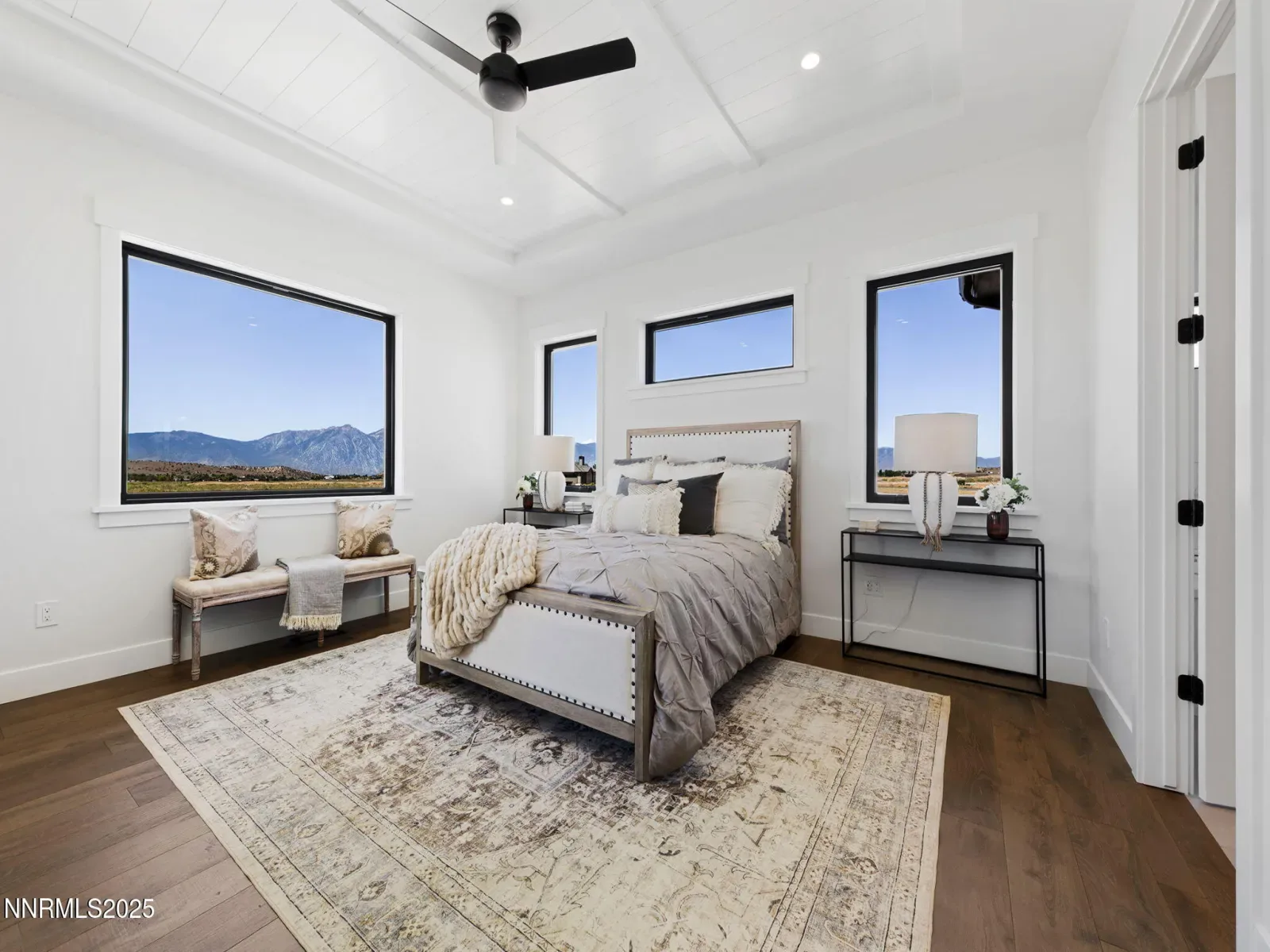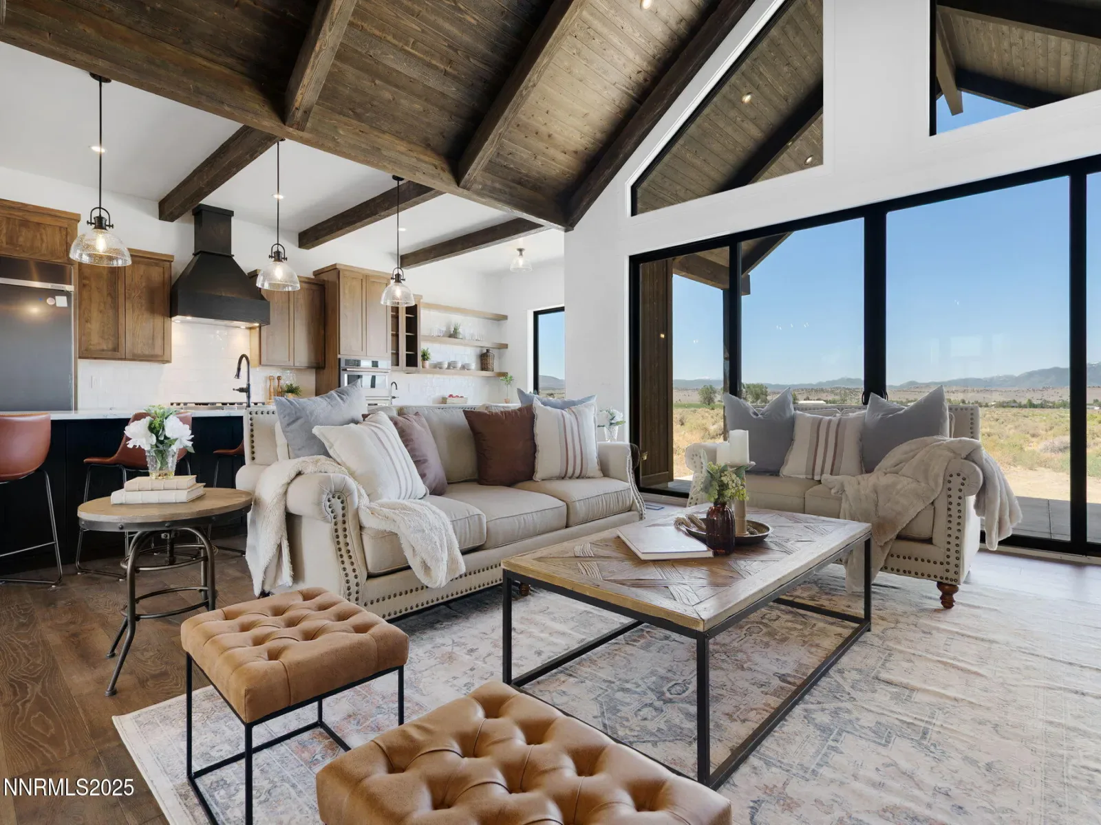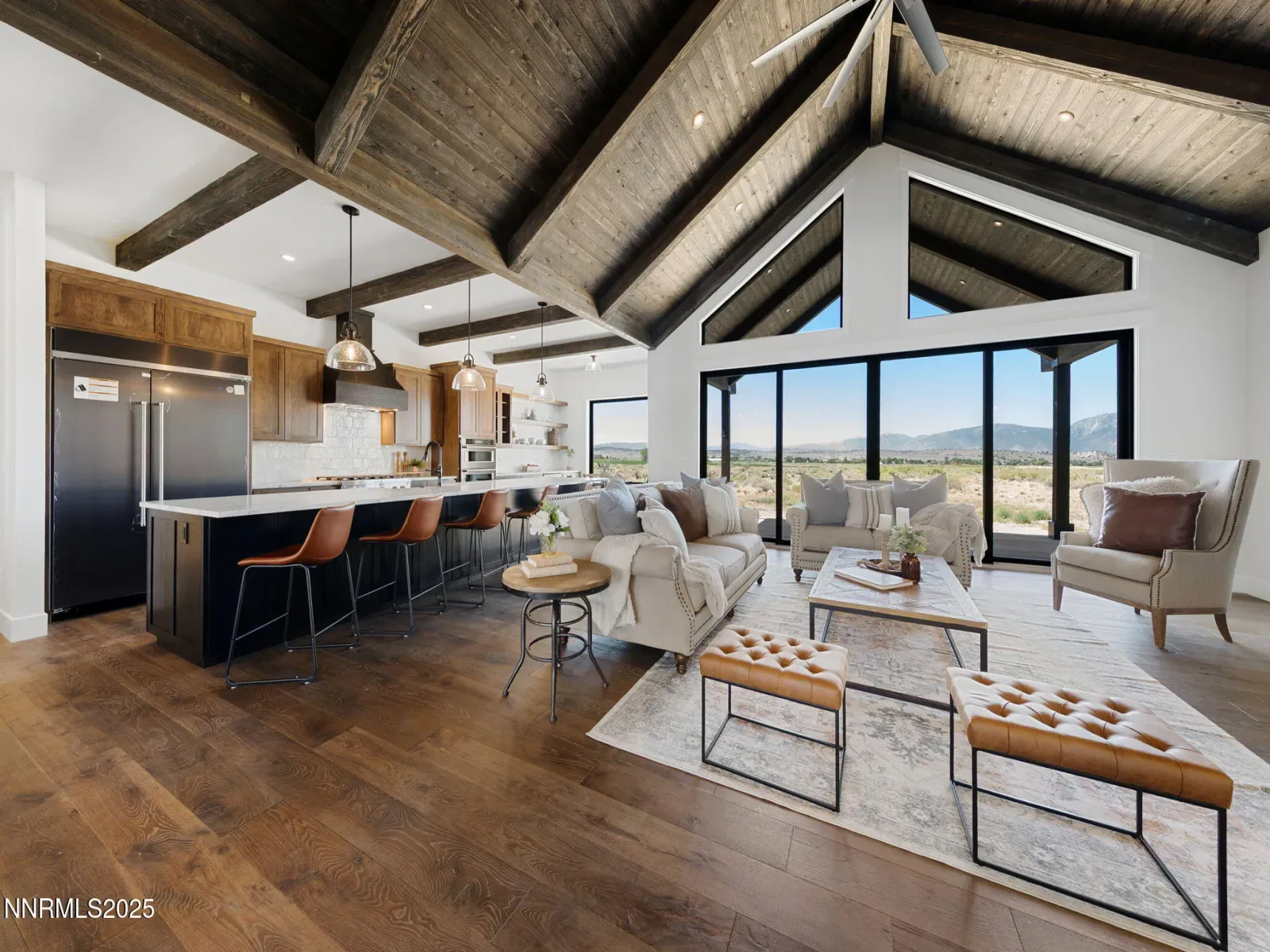 Experience elevated living in this brand-new 2025 custom luxury home on 5.72 private acres, with sweeping panoramic views of Jobs Peak and the Sierra Nevada. Designed for those who love the outdoors, it offers the rare combination of space, privacy, and easy access to town amenities. BLM land is just a few parcels away, creating endless opportunities for hiking, biking, and exploring right out your front door. Spanning 3,583 square feet, this thoughtfully designed 4-bedroom, 3.5-bath residence blends modern sophistication with the ease of single-level living. Soaring ceilings and walls of glass frame the alpine landscape, filling the home with natural light and connecting the interior to the outdoors at every turn. Built with comfort and performance in mind, this energy-efficient home uses high-end materials and modern systems for quiet, year-round living. The chef’s kitchen—with an oversized island, premium appliances, and a built-in wine fridge—is ideal for gathering with friends after a day on the trails. The great room features a sleek linear gas fireplace and expansive windows that open to the views, creating a warm and inviting space for entertaining. A dedicated office, spacious mudroom, and spa-inspired primary suite ensure everyday functionality. An upstairs bonus room with a full bath offers flexibility for guests, a studio, a gym, or a media room. Outside, a custom boulder water feature adds to the sense of retreat, while the oversized 4-car garage provides plenty of space for gear, vehicles, and hobbies. All of this sits just minutes from town, 30 minutes to Lake Tahoe and Heavenly, and only an hour to Reno-Tahoe International Airport. Located in tax-friendly Nevada, this home offers both convenience and seclusion in an unbeatable setting. With top-tier craftsmanship, breathtaking views, and a layout designed for everyday luxury, this is a rare opportunity to own a brand-new, upscale home with the space to live, explore, and thrive.