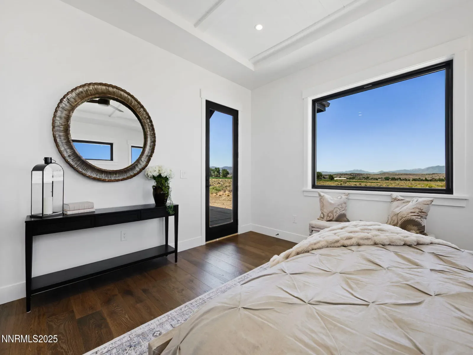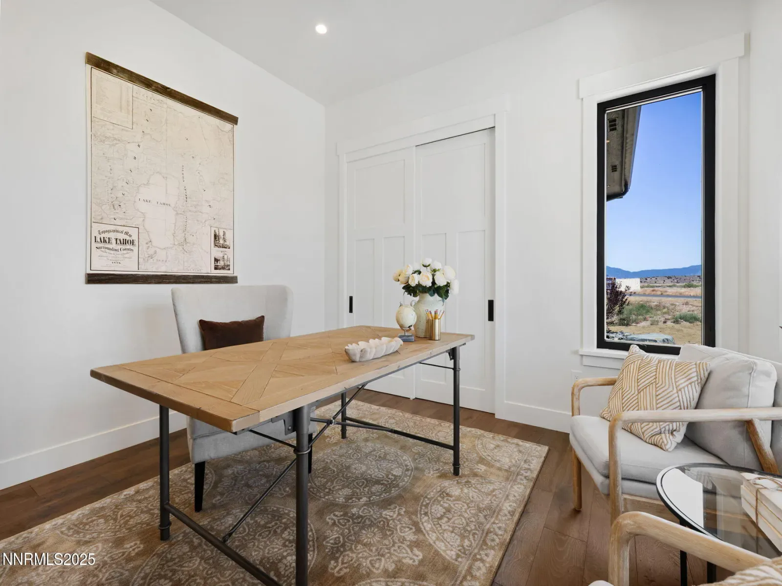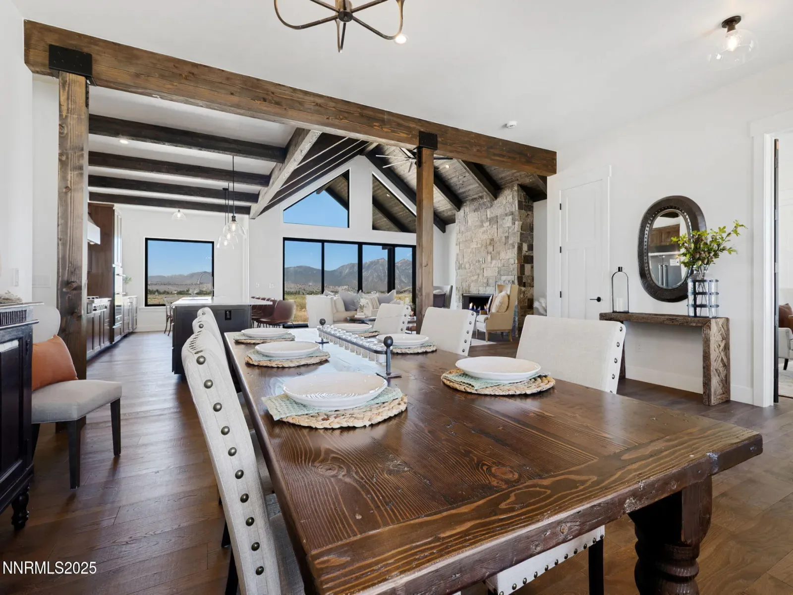 Experience elevated living in this brand-new 2025 custom luxury home on 5.72 private acres, with sweeping panoramic views of Jobs Peak and the Sierra Nevada. Designed for those who love the outdoors, it offers the rare combination of space, privacy, and easy access to town amenities. BLM land is just a few parcels away, creating endless opportunities for hiking, biking, and exploring right out your front door. Spanning 3,583 square feet, this thoughtfully designed 4-bedroom, 3.5-bath residence blends modern sophistication with the ease of single-level living. Soaring ceilings and walls of glass frame the alpine landscape, filling the home with natural light and connecting the interior to the outdoors at every turn. Built with comfort and performance in mind, this energy-efficient home uses high-end materials and modern systems for quiet, year-round living. The chef’s kitchen—with an oversized island, premium appliances, and a built-in wine fridge—is ideal for gathering with friends after a day on the trails. The great room features a sleek linear gas fireplace and expansive windows that open to the views, creating a warm and inviting space for entertaining. A dedicated office, spacious mudroom, and spa-inspired primary suite ensure everyday functionality. An upstairs bonus room with a full bath offers flexibility for guests, a studio, a gym, or a media room. Outside, a custom boulder water feature adds to the sense of retreat, while the oversized 4-car garage provides plenty of space for gear, vehicles, and hobbies. All of this sits just minutes from town, 30 minutes to Lake Tahoe and Heavenly, and only an hour to Reno-Tahoe International Airport. Located in tax-friendly Nevada, this home offers both convenience and seclusion in an unbeatable setting. With top-tier craftsmanship, breathtaking views, and a layout designed for everyday luxury, this is a rare opportunity to own a brand-new, upscale home with the space to live, explore, and thrive.