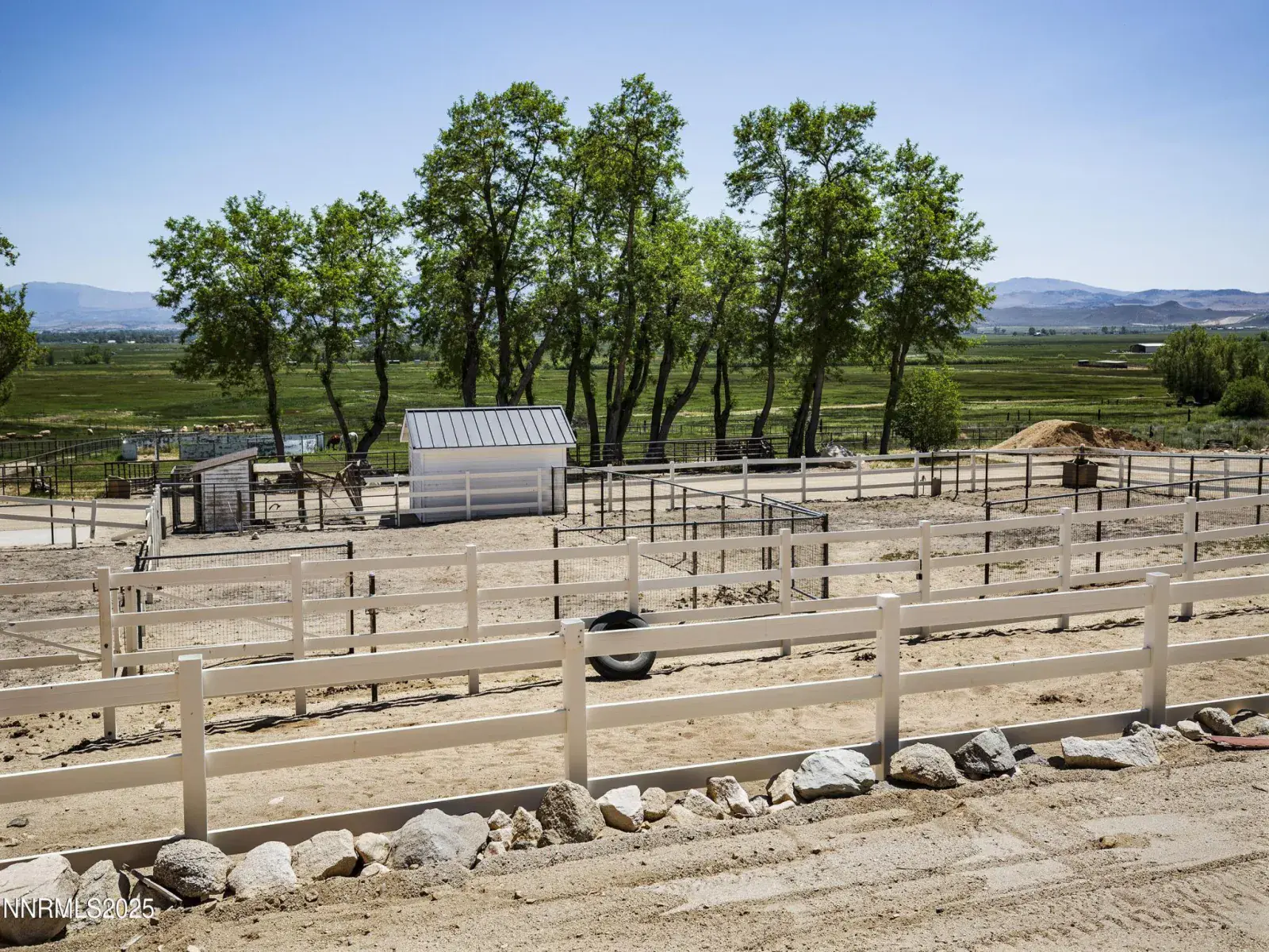 A once-in-a-lifetime opportunity to own a premier legacy ranch at the base of the Sierra Nevada Mountains. Spanning 116 acres across two parcels, this exceptional estate blends luxury living with unmatched functionality for equestrian, cattle, and recreational use. Featuring a primary residence, two guest homes, a barn, horse facilities, a roping arena, water rights, and a massive workshop, this property offers the ultimate in Nevada ranch living, all with panoramic views of Jobs Peak and the Carson Valley. Main Residence: The single-story main home offers 4,534 sq. ft. of thoughtfully designed living space, including 4 bedrooms and 4.5 bathrooms. A grand kitchen anchors the home with slab granite countertops, a large island with breakfast bar, double ovens, a 5-burner electric cooktop, 42-inch built-in refrigerator, walk-in pantry, and abundant cabinetry. The adjoining great room features vaulted ceilings and a wood-burning fireplace, while the formal dining room includes a full wet bar, perfect for entertaining. The expansive primary suite is a private retreat, featuring its own office, direct access to the back deck, and an oversized bathroom complete with two walk-in closets, dual vanities, two private toilet rooms, a jetted soaking tub, and separate shower. Additional highlights include a generous laundry room with built-in cabinetry, countertops, sink, and an extra refrigerator, plus an attached 3-car garage. Guest House 1: A spacious 1,565 sq. ft. residence with 2 bedrooms, 1 bathroom, full kitchen with fridge, stove, dishwasher, and microwave, plus an in-unit laundry room, ideal for long-term guests or extended family. Guest House 2: A charming 1-bedroom, 1.5-bath guest home with the bedroom and full bath upstairs and a private balcony overlooking the ranch, perfect for a caretaker or visiting guests. Plus a full kitchen and half bathroom on the main level. Ranch Improvements: • Expansive shop with power. Ideal for ranch equipment, recreational vehicles, or a car collection • Barn with horse stalls • Roping arena • Turnouts and infrastructure for both horses and cattle • Water rights included • Mature landscaping around all homes The Land: Two parcels totaling 116 acres, with sweeping views in every direction—from lush pasturelands to the towering Sierras. This is a rare opportunity to own a turnkey ranch with the infrastructure, space, and elegance to accommodate both an active working ranch and a refined country lifestyle. APNs included in purchase: 1219-23-001-043 (93 acres w/ houses), 1219-23-001-044 (23 acres)