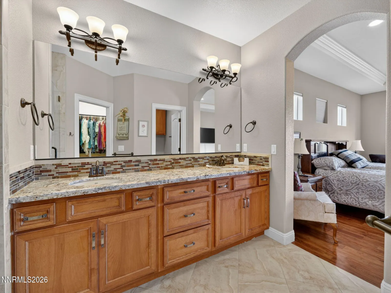 Better than new and thoughtfully upgraded, this stunning Gardnerville home offers dual suites, paid solar with backup, mountain views, and a private cul-de-sac location with no rear neighbors! Welcome to 1284 Cedar Brook Court, where comfort, flexibility, and quality craftsmanship come together. This beautifully designed home features two spacious suites, including a luxurious primary retreat with a large bedroom, walk-in closet, dual sinks, and an oversized walk-in shower. The second suite offers a versatile bonus spaceāperfect for a sitting room, nursery, office, or even a dream custom closet. The open-concept floor plan is ideal for both everyday living and entertaining, with the kitchen seamlessly flowing into the dining and living areas. Enjoy a cozy gas log fireplace with a striking stone hearth, rich hardwood flooring throughout, and abundant natural light. The kitchen is a chef’s delight with upgraded granite countertops, ample cabinetry, a large breakfast bar, and a pantry. Additional highlights include: ⢠Two additional bedrooms for family or guests ⢠Spacious laundry room with cabinets, utility sink, and storage closet ⢠Ceiling fans throughout ⢠Three-zone heating and A/C system for optimal comfort ⢠Built with handicap accessibility in mind Step outside to a covered paver patio complete with ceiling fans, gas stub for BBQ, and 220V ready for a spaāperfect for relaxing or entertaining. The backyard offers exceptional privacy, backing to open agricultural land with stunning mountain views and no neighbors behind. Energy efficiency shines with paid solar panels and backup system, along with a fully automated drip irrigation system for easy landscaping maintenance.