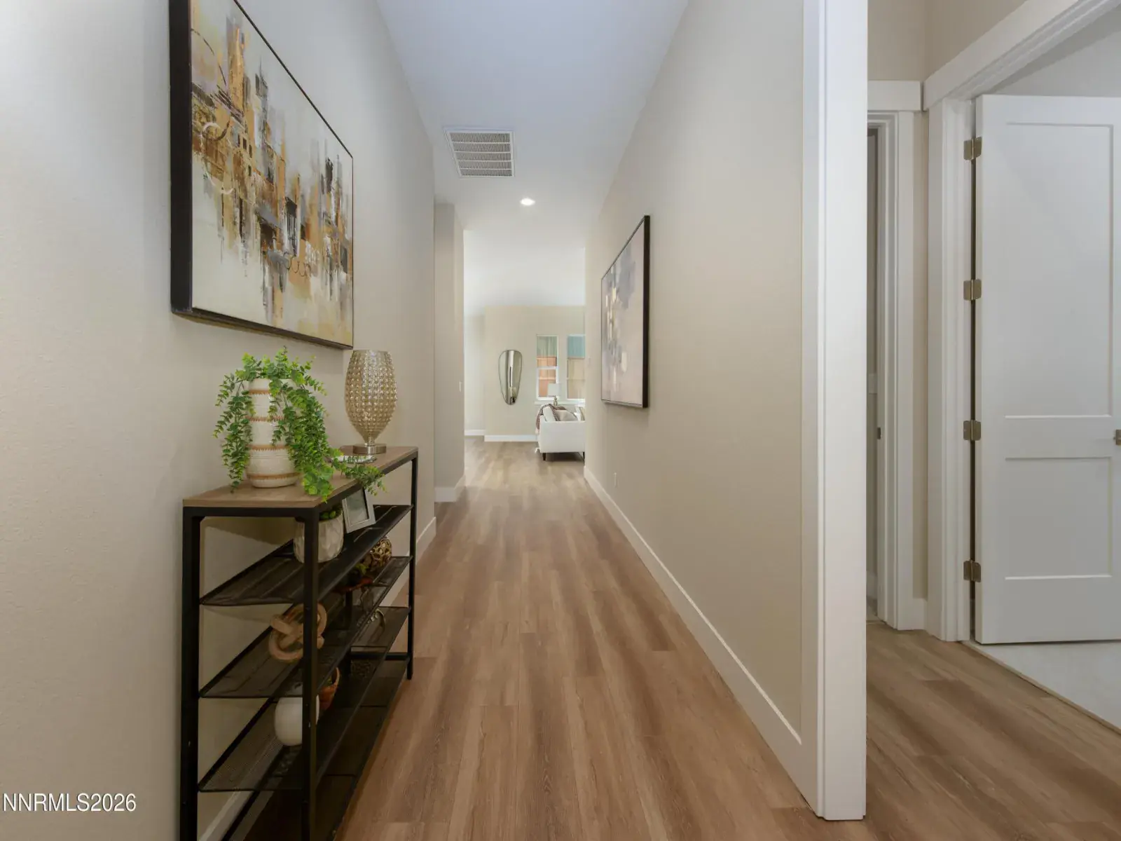 Enjoy countless sunsets from the covered front porch of this beautifully designed new home in desirable Gardnerville. Inside, the primary suite is thoughtfully separated from the guest bedrooms for added privacy, while the open-concept layout creates a bright, airy feel that flows effortlessly through the main living areas. Selected finishes include white soft-close cabinetry throughout the entire home, plus a kitchen featuring light quartz countertops and an upgraded tile backsplash. Step outside to a covered backyard patioāperfect for outdoor lounging, relaxing, or entertaining. No HOA. Home is projected for completion in January 2026. It is conveniently located just minutes from shopping, healthcare, and local amenities, with South Lake Tahoe approx. 25 minutes away and Carson City approx. 30 minutes. Enjoy nearby hiking, biking, fishing, community events, historic Genoa, and all the beauty of Carson Valley. Photos reflect a similar home with the same floorplan; actual finishes may vary.