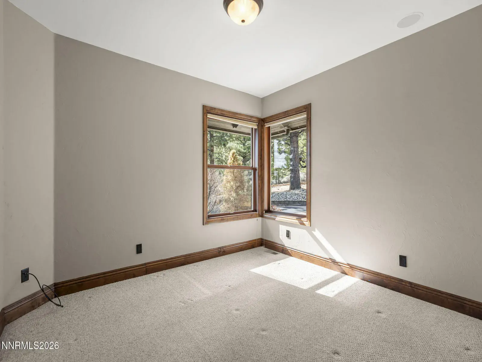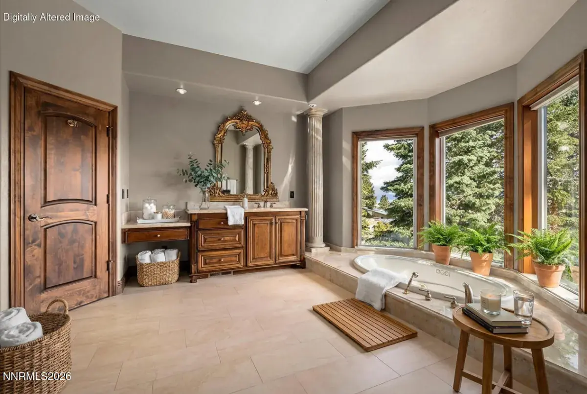 Welcome to 220 Sheridan Creek Court, an exceptional mountain estate located within the exclusive gated community of Jobs Peak Ranch. Set on a panoramic 2.5-acre homesite surrounded by mature trees, this custom residence offers sweeping valley views and dramatic Jobs Peak scenery, creating a setting defined by peace, privacy, and natural beauty. With over 5,300 square feet of thoughtfully designed living space, the home delivers a rare balance of refined luxury and serene mountain living. From the moment you arrive, the property evokes a sense of retreat. The forested surroundings, quiet atmosphere, and expansive views establish a lifestyle centered on tranquility and connection to nature. EZ-care landscaping with a drip irrigation system enhances the experience, allowing the grounds to remain beautiful with minimal maintenance. A striking heavy-beam entry finished in rock and stucco introduces a residence crafted with intention and quality. Inside, the spacious layout features five bedrooms, three and one-half bathrooms, and a dedicated library or office, offering flexibility for full-time living, remote work, or hosting guests. The chef’s kitchen is designed for both everyday enjoyment and entertaining, with upgraded appliances, Iranian granite countertops, rich cherry cabinetry, tile and wood flooring, a comfortable stool counter, and a center island with a custom pot rack. The living and dining rooms are generous and inviting, each featuring gas fireplaces that enhance the warm mountain ambiance. The library or office provides a quiet retreat with a wood-burning fireplace. A living room surround sound system, built-in whole-house audio, and optional video camera monitoring add modern comfort throughout. An elevated viewing deck extends the living space outdoors, offering expansive valley and mountain vistas. The primary suite is a private sanctuary, featuring a sitting area, a double-sided gas fireplace, and two walk-in closets, creating a calming and luxurious retreat. The finished lower level offers exceptional versatility and can easily serve as secondary living space, in-law quarters, or next-generation accommodations. This level includes a private bedroom, a full bathroom with tub and shower, a large bonus or recreation area, tiled floors, and patio access with views. A pool table is available, making the space ideal for guests or extended family seeking privacy and independence. Additional features include a heated five- to six-car garage with sound system, large workshop, and workbench, along with a rear patio equipped with a gas BBQ hookupāperfect for relaxed outdoor gatherings. 220 Sheridan Creek Court offers an elevated mountain lifestyle rooted in serenity, space, and privacy, while remaining within convenient reach of Lake Tahoe, Heavenly, and premier outdoor recreation. This is a rare opportunity to own a luxury retreat immersed in nature within one of the area’s most desirable gated communities.