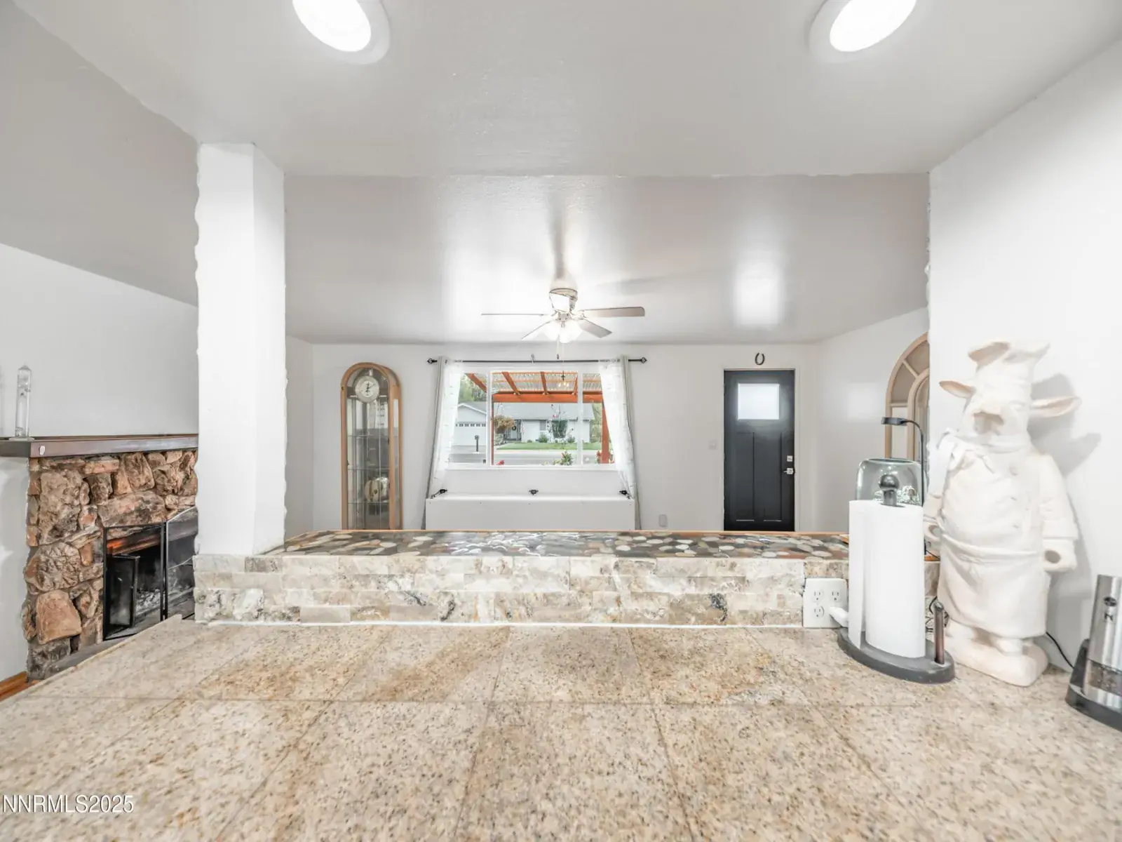 Discover your slice of Gardnerville, NV at 1193 Manhattan Way, where sweeping Sierra Nevada sunset views create a daily masterpiece from your doorstep. This thoughtfully designed three-bedroom, two-bathroom home spans 1680 square feet and sits on a generous .29 acres, offering the perfect blend of comfort and entertainment space, all on one convenient level just minutes from Lake Tahoe’s pristine waters and Carson City, Nevada’s state capital with excellent shopping opportunities and government services. You’ll also enjoy close proximity to historic downtown Minden, where charming restaurants serve everything from casual fare to fine dining, entertainment venues provide year-round activities, and exciting casinos offer gaming and shows, all while maintaining the smaller city, relaxed atmosphere that embodies the Nevada lifestyle. The heart of this home showcases an open floor plan concept anchored by a welcoming fireplace, creating seamless flow between living areas. The kitchen features beautiful granite countertops that complement the light and bright atmosphere enhanced by newer windows and updated laminate flooring throughout. Two fireplaces ensure cozy evenings year-round – choose between the crackling warmth of the wood-burning fireplace or the efficient comfort of the pellet stove. Your primary bedroom sanctuary includes a luxurious soaking tub surrounded by elegant stone work, while a charming bench with abundant storage sits perfectly positioned by the great room window. The large bonus room off the back provides versatile space with its own pellet stove and clever sliding barn door for privacy when desired, plus convenient backyard access for seamless indoor-outdoor living. Step outside to your expansive backyard oasis featuring a peaceful fountain, while the front welcomes guests with a covered pergola complete with its own fountain feature. Practical perks include recreational vehicle parking for your adventure-ready lifestyle and no homeowners association restrictions, giving you freedom to truly make this space your own. With quick highway access via Route 88 and 395, you’ll enjoy connectivity while maintaining mountain living charm. Nearby Lampe Park and Minden Park offer recreational opportunities, while the Carson Valley Swim Center and Douglas High School serve community needs. This single-level gem combines Sierra Nevada beauty with modern conveniences. (Seller will credit the Buyer six thousand dollars for a new driveway.)