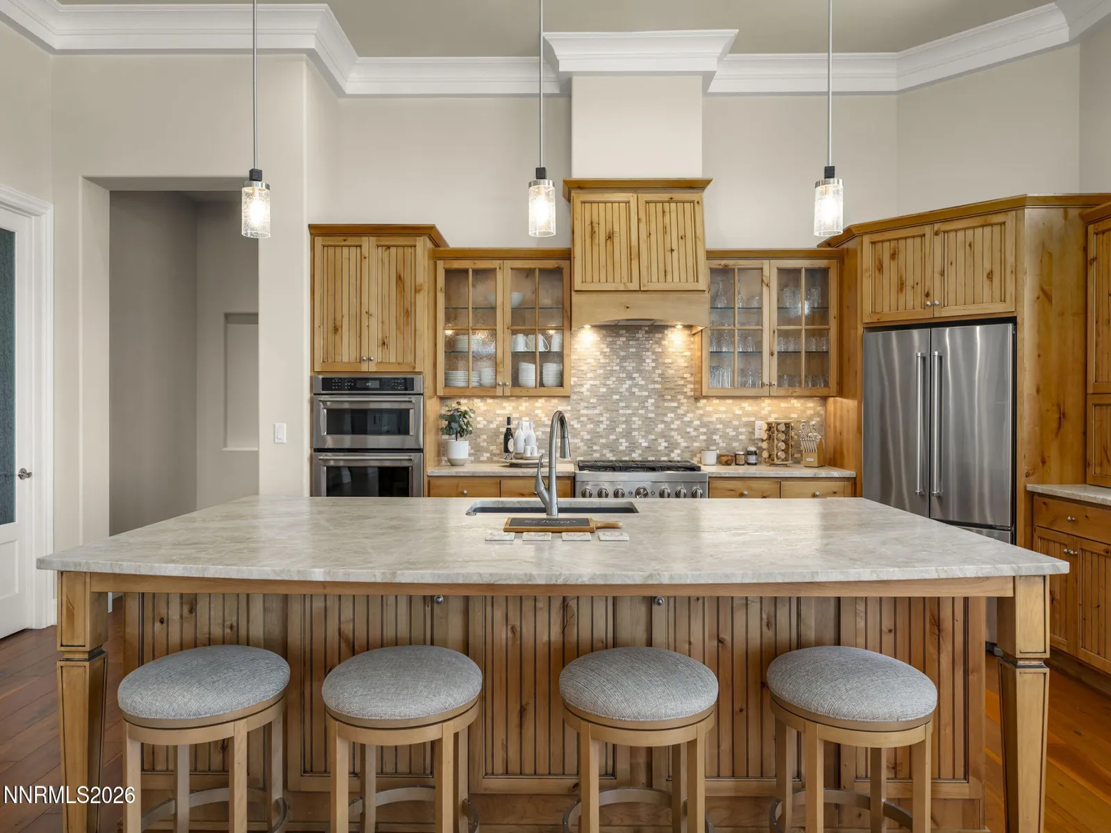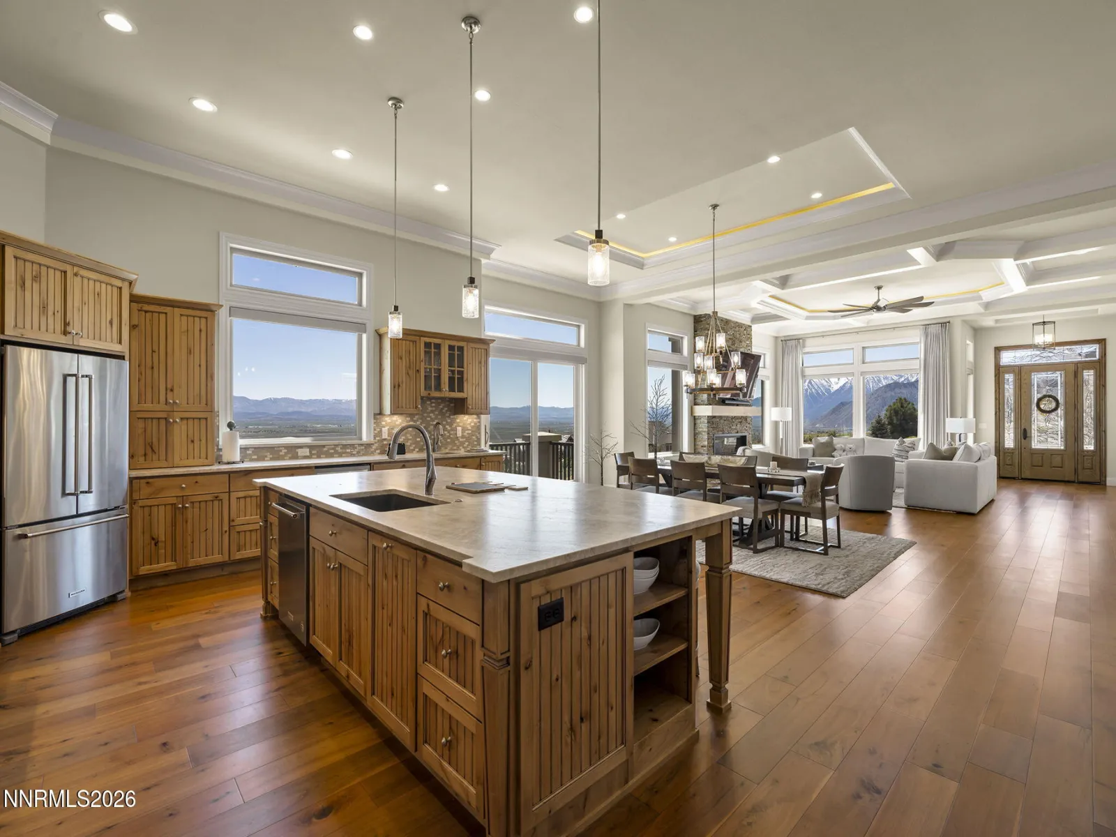 Stunning Custom 3,260 sq ft home located in Genoa NV. Set upon .63 acres on one of the most desirable lots in Canyon Creek. All top of the line finishes used throughout this masterpiece which includes 3 bedrooms plus office, 3.5 baths, open floor plan with a chefs dream kitchen, large deck overlooking Jacks Valley & surrounded by open space land. Plenty of parking in the 4 car oversized garage., Here are some Key Features; Generac generator, sculpted ceiling with lighting, oversized 4 car garage, large deck & shaded patio, solid core 8 ft doors, living room Grand Canyon stove fireplace, Kitchen Aid upgrades, Tuscany Series windows, Master bathroom surround shower with tile ceiling & heated floor, flooring exquisite regency walnut, kitchen counter granite Taj Mahal leathered quartzite, bathrooms marble, custom kitchen cabinetry birdseed glass, insta hot in kitchen, wine refrigerator, built in desk, paver driveway & patio, green space on 3 sides.