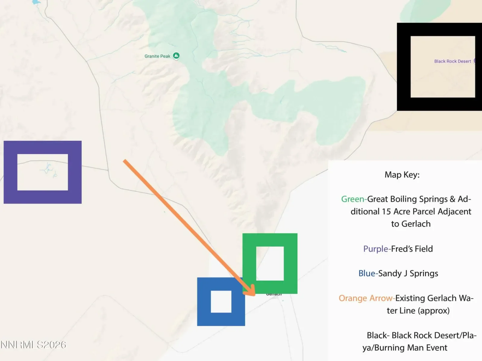 LUXURY PROPERTY AUCTION: 1-15 April. Accepting starting bids through 31 March. Starting bids expected at 1M+. Earn an incentive by 31 March. An uncommonly rare geothermal holding of 70 acres awaits just one mile from the heart of Gerlach, Nevada where two natural hot springs, affectionately known as Sandy J, flow into a tranquil on-site pond through a small dam. Set against the raw grandeur of the Black Rock Desert Conservation Area, this property commands sweeping mountain vistas and carries 144.79 acre-feet of deeded water rights, alongside the added utility of city water flowing beneath the land. Abundant streams animate the landscape, lending an almost surreal serenity to the surrounding high desert terrain. Positioned just 15 miles from the legendary Black Rock City host to the globally celebrated Burning Man Festival and moments from some of the darkest, most star-saturated night skies in the American West, this is a singular land holding of genuine rarity, primed for visionary development at the edge of one of Nevada’s most storied landscapes.