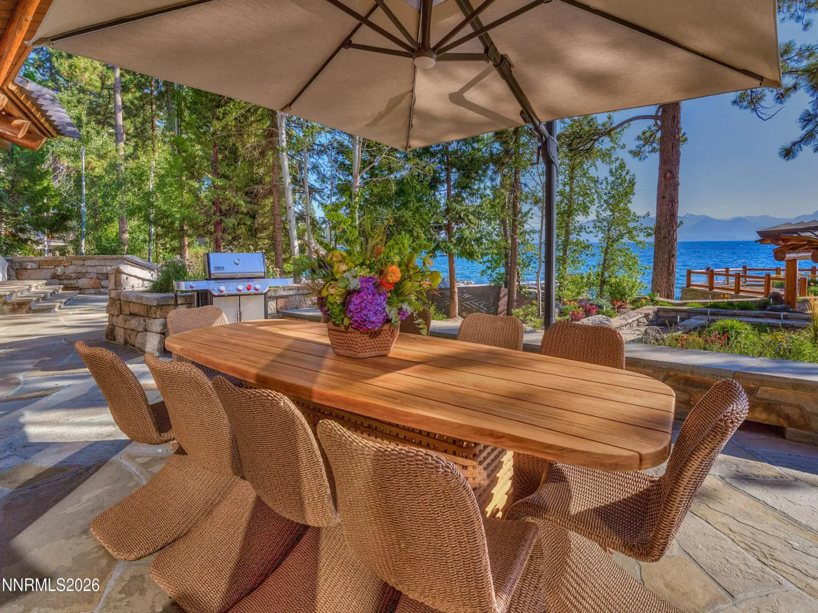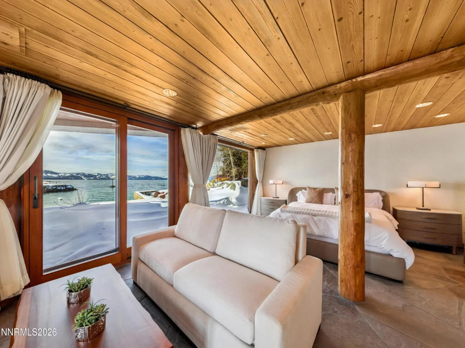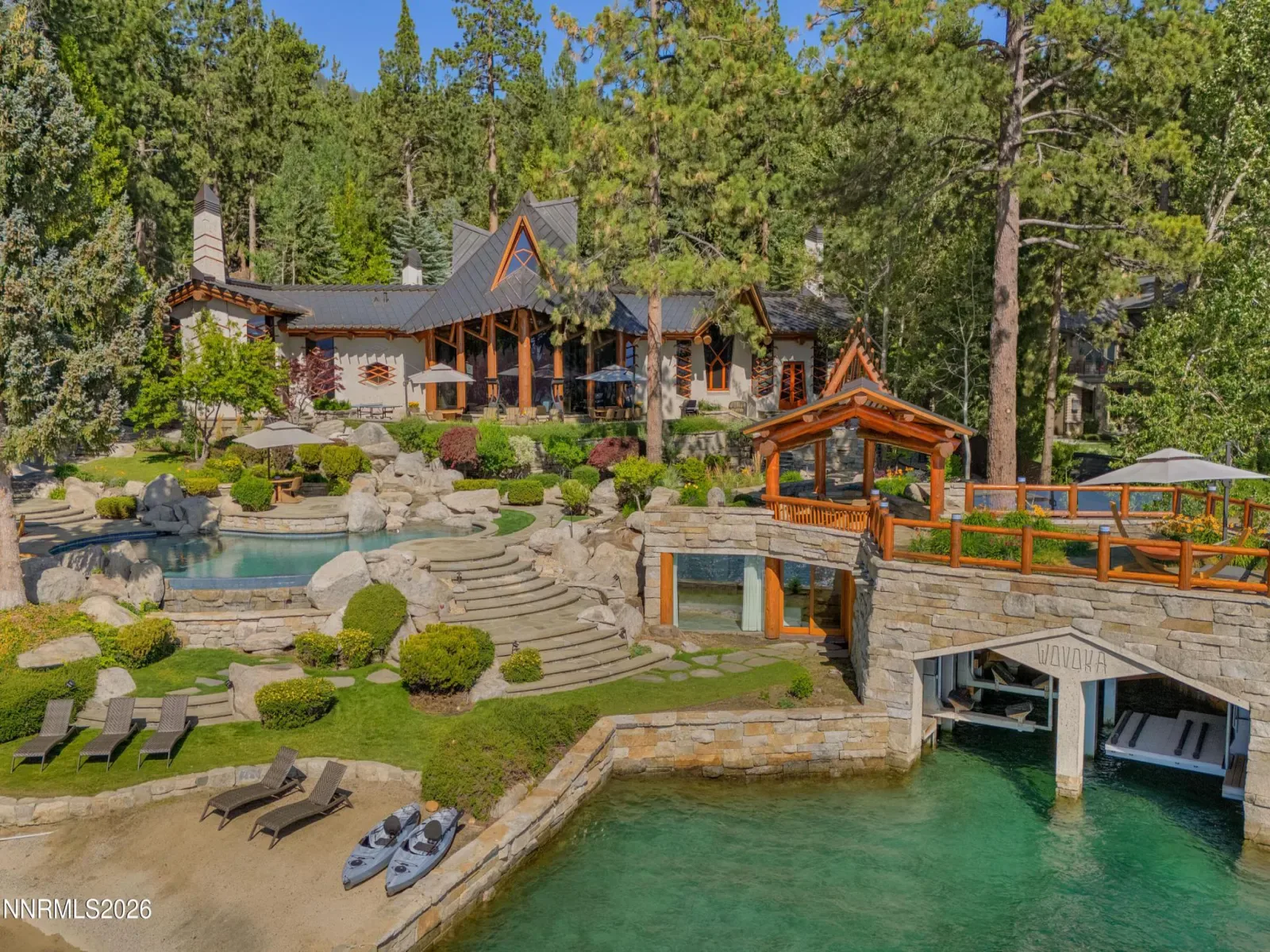 ~ Wovoka ~ Where Architecture Lives Within the Landscape ~ Along a protected sandy cove on Lake Tahoe’s coveted East Shore, is an irreplaceable, private reimagined waterfront estate where architecture, landscape, and water exist in quiet alignment. Set across approximately 2.73 acres of shoreline, the property unfolds as a carefully composed lakeside compound designed to embrace both the natural character of the Sierra Nevada and the enduring clarity of Tahoe’s waters. The residence reflects a thoughtful architectural vision expressed through hand-worked stone, massive timbers, copper roofing, angled teak windows, and finely crafted interior millwork. Natural materials and scale define the experience of the home, while expansive glass and soaring ceiling lines frame panoramic views of the lake and surrounding mountains. The main residence is designed for single-level living and gathering, with spaces that feel both open and intimate. A great room anchored by a spectacular stone fireplace rises to dramatic vaulted ceilings and is framed by nearly twenty-foot windows overlooking the water. Adjacent dining and sitting areas connect seamlessly to a gourmet kitchen and catering space designed to support both everyday living and larger gatherings. The home includes three bedroom suites within the main structure, each thoughtfully positioned for privacy and comfort, along with a private theater, wine cellar accessed by elevator, and additional service and preparation spaces that support the home’s entertaining capabilities. The estate offers a rare level of flexibility with both a lakefront and Tower casita. Each provides its own bedroom, bath, kitchen, and living space preserving the privacy of the main residence. The estate’s connection to the water is both immediate and complete. The protected cove provides a rare sandy beach along this stretch of shoreline, complemented by a boathouse with two boat lifts, additional buoy access, and sheltered docking. Outdoor spaces extend the experience of the home toward the lake, including a heated lakeside infinity pool and spa, stone terraces, and a covered heated pergola. The layered landscaped grounds are both cultivated and natural thoughtfully designed with pathways, waterfall, creek, pond and gardens that echo the surrounding alpine environment Infrastructure throughout the estate reflects the same level of intention as its architecture. Systems include hydronic in-floor radiant heating, central air conditioning, a whole-house generator, advanced security and smart home integration, lake water intake, a heated parking area, a six-car garage with workshop space, and mechanical areas that support both the residence as well as the broader functionality of the estate. Located in Glenbrook on Nevada’s East Shore, Wovoka occupies one of Lake Tahoe’s most desirable and discreet waterfront settings. The Nevada side of the lake is known for its favorable tax environment and drier microclimate, while remaining minutes from Heavenly Ski Resort, Edgewood Golf Resort, and the excitement of nearby casinos and world class restaurants. In every respect, the property represents a rare convergence of architectural craftsmanship, protected shoreline, and enduring Tahoe landscapeāan estate designed not simply as a residence, but as a lasting lakeside legacy.