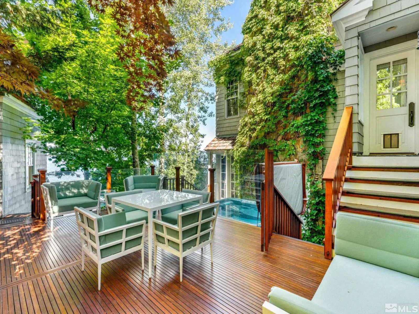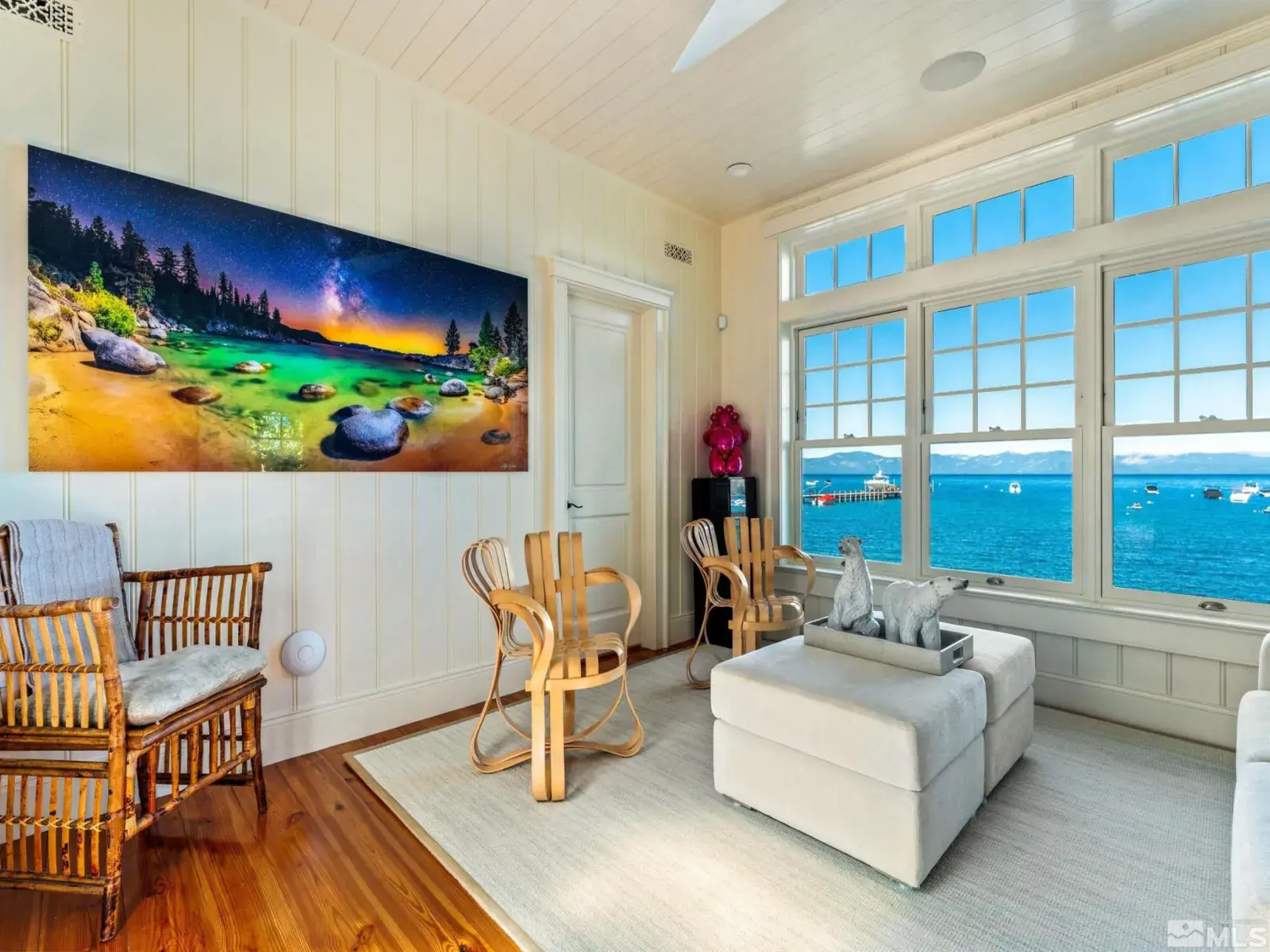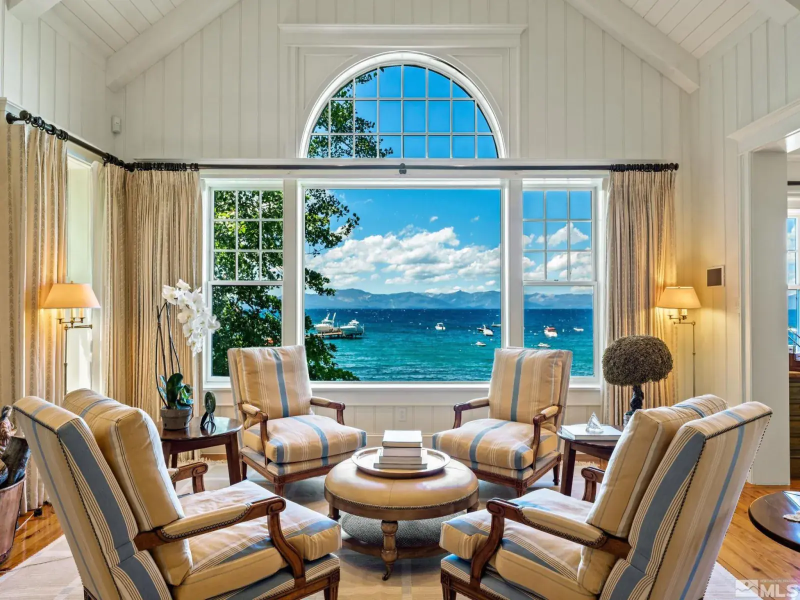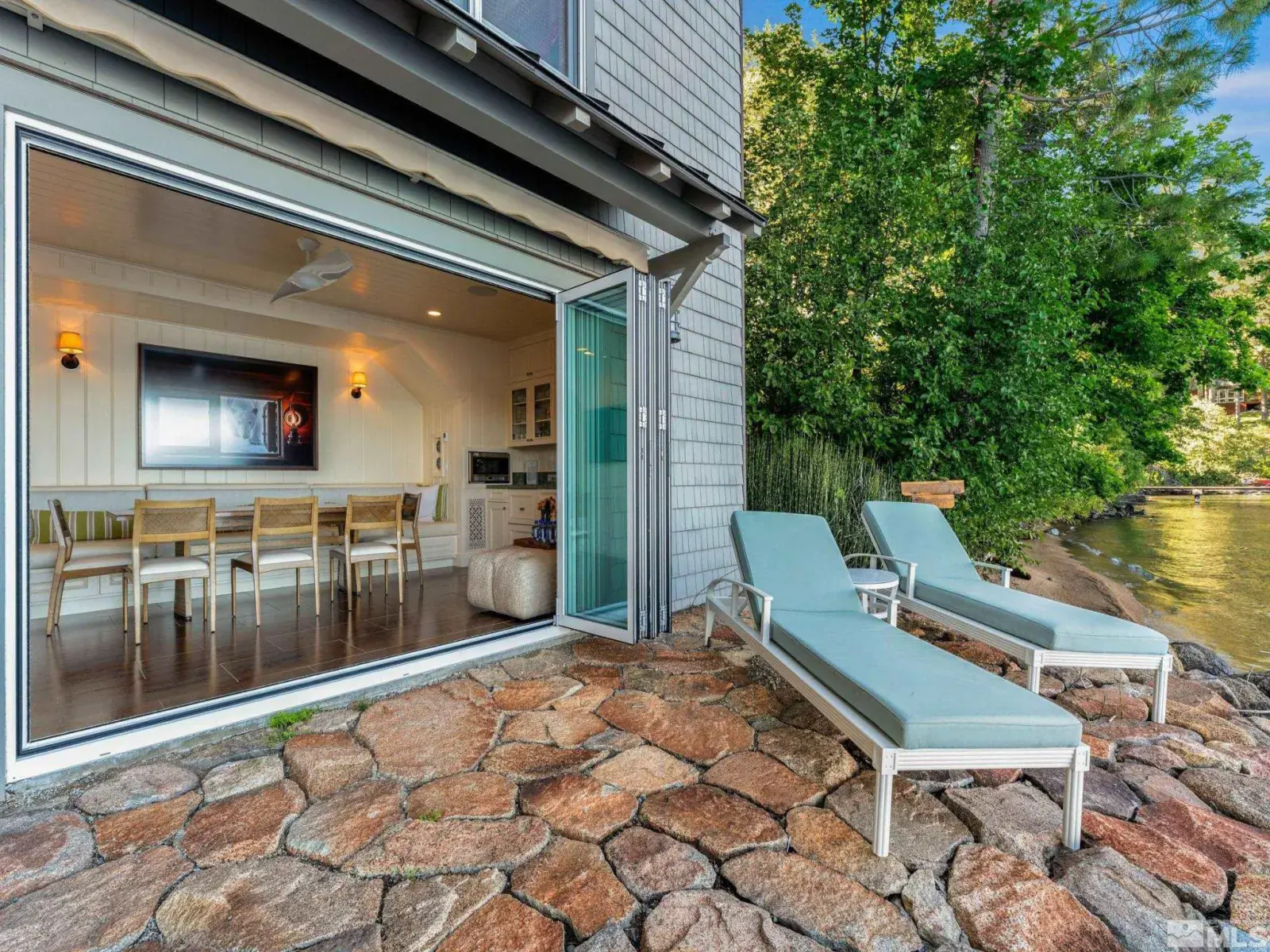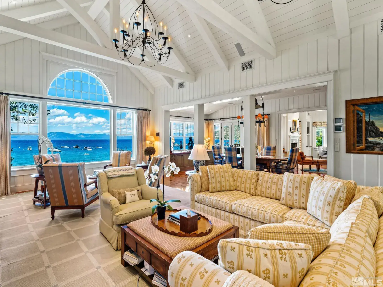 Water’s Edge is an extraordinary lakefront retreat nestled within the exclusive gates of the iconic Shakespeare Ranch Properties in historic Glenbrook, NV-Lake Tahoe’s only gated lakeside golf course community. Designed in a New England style, this beautifully appointed residence with lakeside cabana sits directly on the water’s edge with panoramic views of Lake Tahoe and the Sierra. Access to the 465 ft. pier, one of the longest in Lake Tahoe, with buoy makes this rare lakefront the ultimate perfection!, A luxurious 690 sq. ft. two-story lakeside cabana, seamlessly connects the main house by a wrap-around teak deck. The cabana has a stunning rooftop deck, sitting room, and wet bar – it’s the perfect space for entertaining or relaxing while tipping your toes in the water. The 4,150 square foot main residence on .71 acres with 174 linear feet of lake frontage features three private en-suite bedrooms, a media room/office, living room, formal dining, 2-car garage and multiple patios, covered and undercovered. The living room, formal dining room, and kitchen flow together within an expanding space featuring exposed beams and trusses. Expansive windows showcase where the crystal-clear waters meet the horizon in a mesmerizing dance of light and tranquility. Adjacent to the cozy breakfast nook, a charming covered porch offers a peaceful spot for morning coffee providing a connection to the serene lakeside surroundings. Water’s Edge is not just a home – It’s a lifestyle offering a rare opportunity to live in harmony with nature while enjoying the finest comforts of modern living in tax-friendly Nevada. This property is NOT in the Glenbrook Homeowners Association. Residents of the Glenbrook community have the option to join the Glenbrook Golf and Tennis Clubs which includes a 9-hole course, clubhouse and tennis courts.