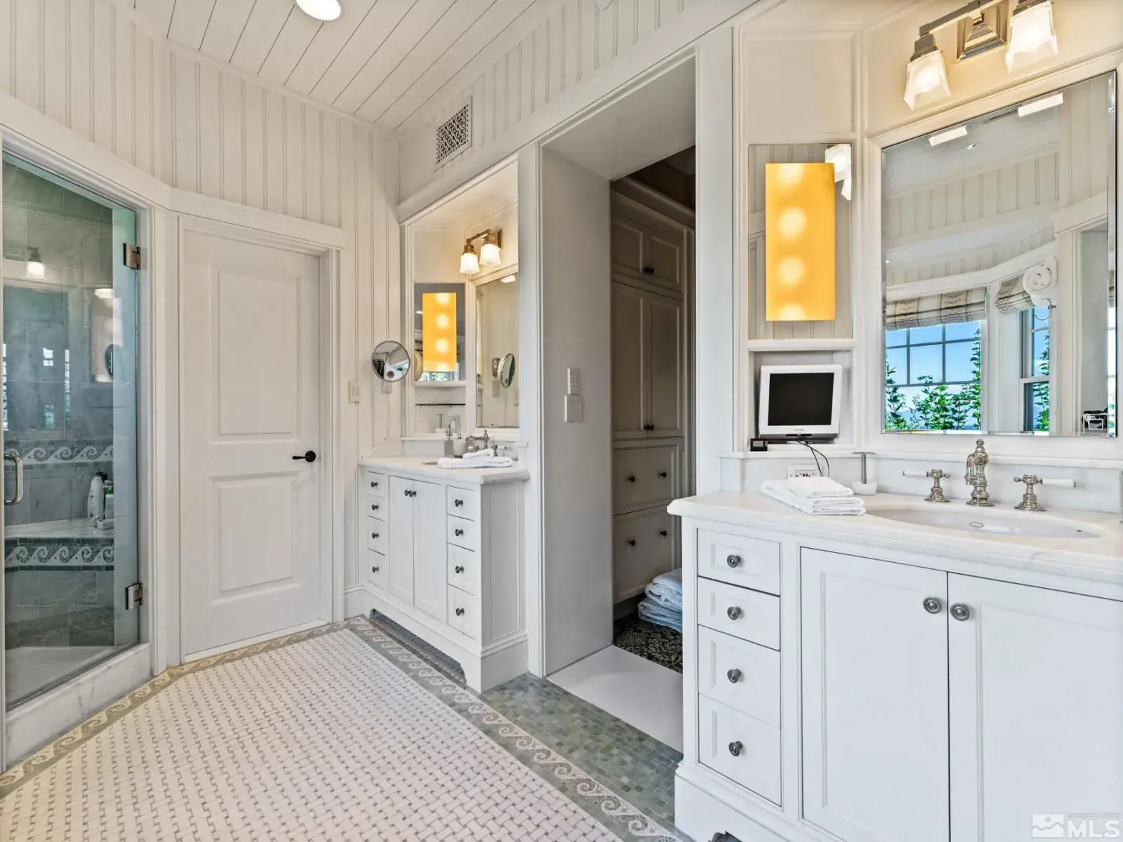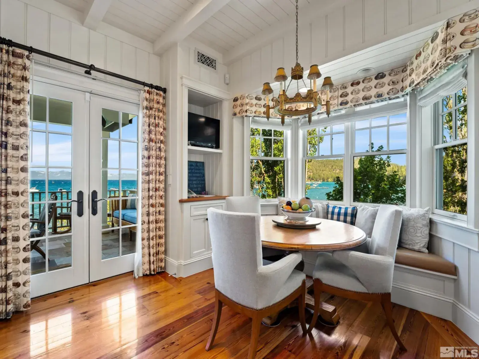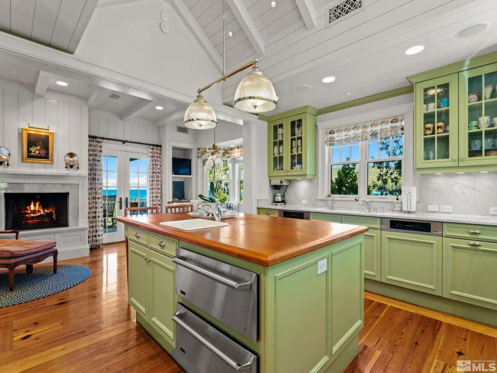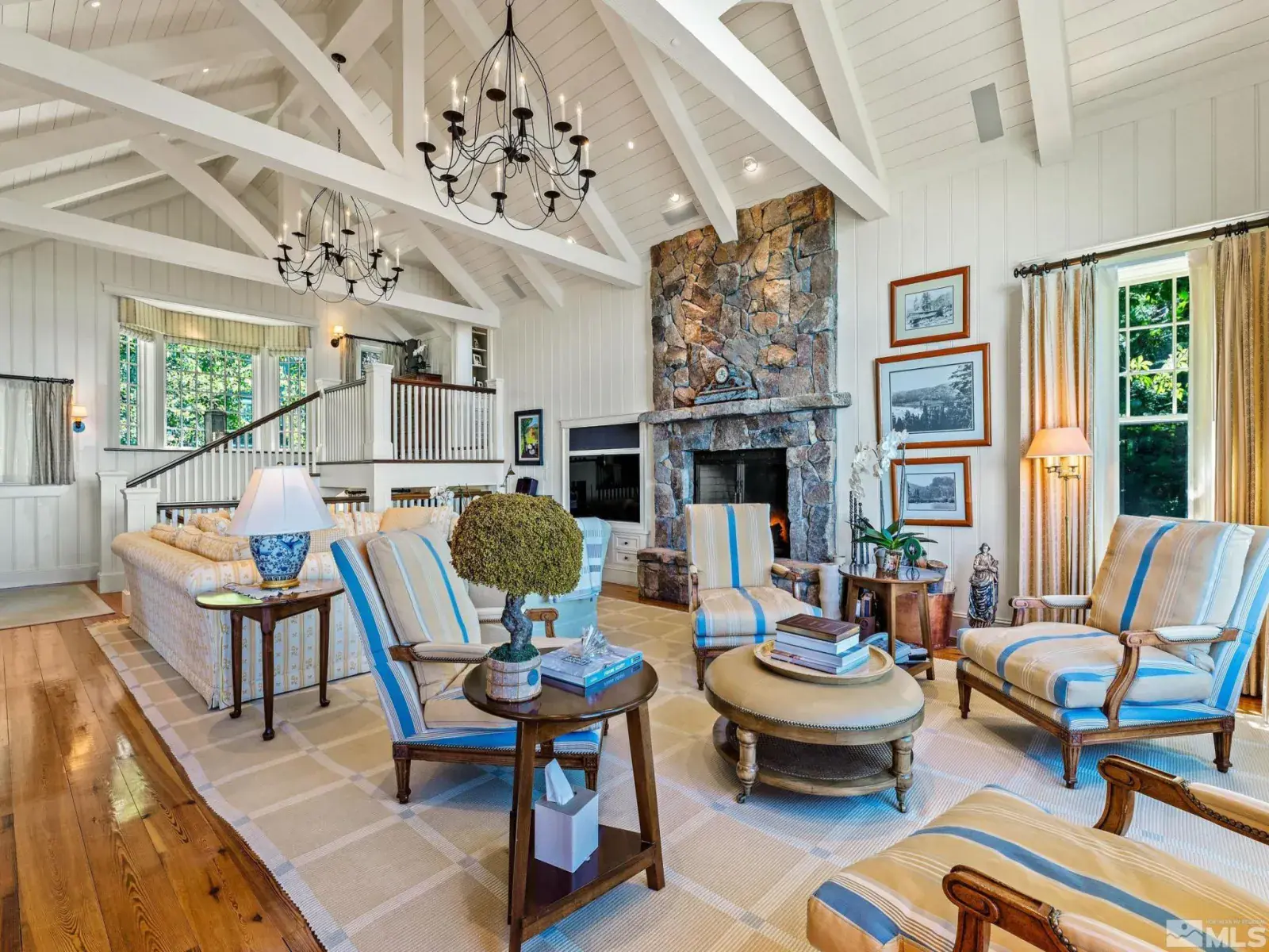 Water’s Edge is an extraordinary lakefront retreat nestled within the exclusive gates of the iconic Shakespeare Ranch Properties in historic Glenbrook, NV-Lake Tahoe’s only gated lakeside golf course community. Designed in a New England style, this beautifully appointed residence with lakeside cabana sits directly on the water’s edge with panoramic views of Lake Tahoe and the Sierra. Access to the 465 ft. pier, one of the longest in Lake Tahoe, with buoy makes this rare lakefront the ultimate perfection!, A luxurious 690 sq. ft. two-story lakeside cabana, seamlessly connects the main house by a wrap-around teak deck. The cabana has a stunning rooftop deck, sitting room, and wet bar – it’s the perfect space for entertaining or relaxing while tipping your toes in the water. The 4,150 square foot main residence on .71 acres with 174 linear feet of lake frontage features three private en-suite bedrooms, a media room/office, living room, formal dining, 2-car garage and multiple patios, covered and undercovered. The living room, formal dining room, and kitchen flow together within an expanding space featuring exposed beams and trusses. Expansive windows showcase where the crystal-clear waters meet the horizon in a mesmerizing dance of light and tranquility. Adjacent to the cozy breakfast nook, a charming covered porch offers a peaceful spot for morning coffee providing a connection to the serene lakeside surroundings. Water’s Edge is not just a home – It’s a lifestyle offering a rare opportunity to live in harmony with nature while enjoying the finest comforts of modern living in tax-friendly Nevada. This property is NOT in the Glenbrook Homeowners Association. Residents of the Glenbrook community have the option to join the Glenbrook Golf and Tennis Clubs which includes a 9-hole course, clubhouse and tennis courts.