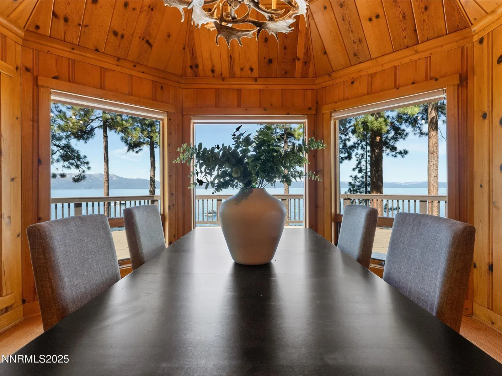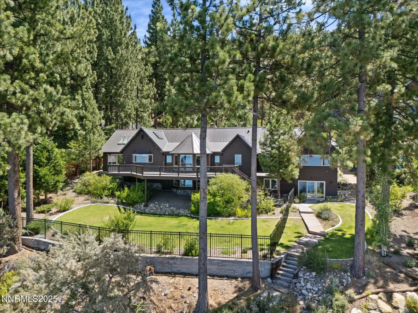 Timeless Lakefront Lodge, including dual lots 1472 & 1474 Flowers Avenue, Glenbrook, NV Once the cherished lakefront estate of baseball legend Ty Cobb, this extraordinary legacy property on Lake Tahoe’s eastern shore is a rare fusion of Old Tahoe craftsmanship and elevated modern living. Encompassing two legal parcels, 1472 Flowers Ave, .87 acres & 1474 Flowers Ave. , .25 acres, totaling 1.13 acres and 50 feet of pristine shoreline, the offering includes a beautifully updated 1938 lodge-style residence, deeded boat buoy, and sunset-facing views that stretch across the lake and Sierra horizon. The primary lakefront home showcases a grand lodge aesthetic with timeless materials: aged knotty pine paneling, restored original 1930s hardwood floors, and a magnificent stone fireplace that anchors the great room. Towering picture windows and expansive lake-view decks blur the line between indoor serenity and outdoor splendor. The remodeled kitchen strikes a perfect balance between rustic warmth and modern utility, with stone countertops, premium appliances, and open sightlines ideal for entertaining or relaxed daily living. A tranquil lakeside primary suite and two guest bedrooms are located on the main level, while a spacious new addition includes a luxe media/family room and a rare 4-car garage. Downstairs, two more bedrooms, a full bath, and ample storage provide flexibility for multi-generational living, guests, or expansion potential. The entire home has been extensively upgraded in thoughtful improvements, including a new standing-seam metal roof, fully redesigned bathroom suite, two new water heaters, water filtration, security cameras, high-end ceiling fans, designer lighting, and custom window treatments. Outdoor living is effortless, from the professionally landscaped gardens and gated drive to a secluded beachfront walkway and fenced backyard oasis. Lakeside decks are ideal for sunset dining, fireside lounging, or watching the waves gently lap the shore. The included upper parcel—1474 Flowers Ave—is a separate, but seamlessly integrated, buildable lakeview lot with conceptual architectural plans, offering an extraordinary opportunity for future development, guesthouse, or estate expansion. Private water rights, a shared well system, and dedicated security upgrades enhance both independence and peace of mind. This is a once-in-a-generation offering for those seeking a refined retreat, a lasting legacy, or a one-of-a-kind lakefront compound along the most coveted shoreline in Lake Tahoe.