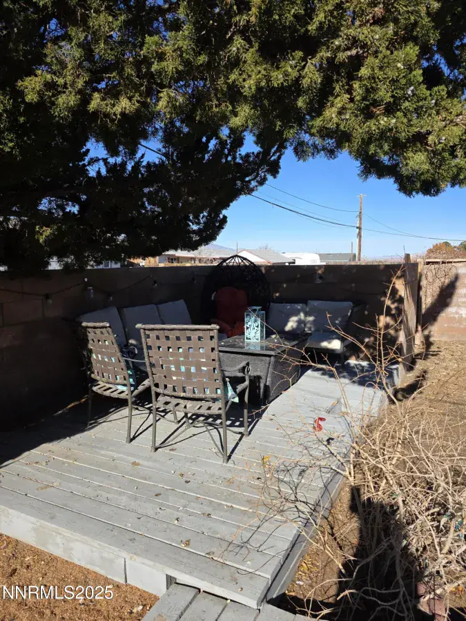 Welcome home to this stunning 4-bedroom, 2-bath fully renovated beauty, offering modern comfort with custom touches throughout. Step inside and enjoy gorgeous tile flooring that flows through the home, creating a clean and inviting feel. The spacious primary bedroom features a custom accent wall that adds a stylish, personalized touch. The open living room boasts high vaulted ceilings and a pellet stove for cozy supplemental heating—perfect for those chilly Nevada evenings. The custom updated kitchen is designed for everyday living and entertaining, complete with ample counter space, modern finishes, and a large dining room just steps away. The home also features fire-resistant siding, offering added safety and peace of mind. Step outside to a backyard built for relaxation, complete with a wood deck, hot tub, ideal seating area, and two storage sheds. This property sits close to schools, the hospital, and parks, with beautiful mountain views surrounding the neighborhood. Walk inside and fall in love—this home is turn-key ready and truly move-in perfect.( more pictures to come)
