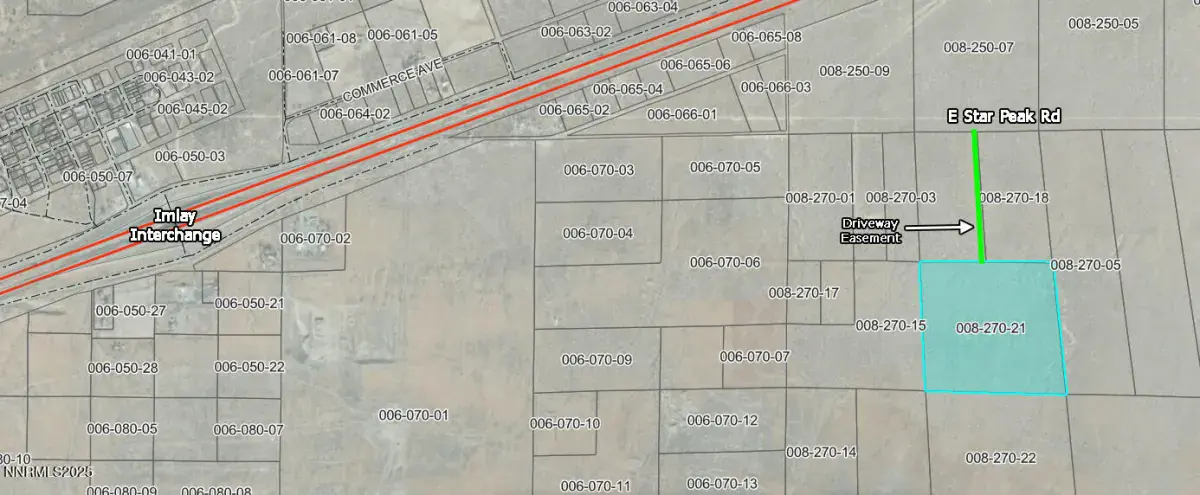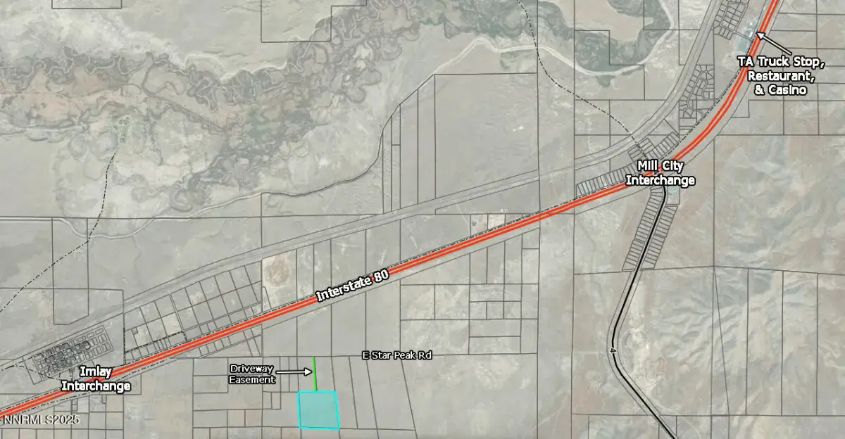 40 ACRES OPEN COUNTRY LAND 40.06+- acres raw land. Near the town of Imlay and the neighborhood of Mill City. A pleasant place for camping and off-road recreation, and/or potentially for your home, family, animals, landscape, views, and quietude. With close proximity to area employers such as the Florida Canyon mine, the planned West Coast Salmon facility, and local businesses, this could prove the perfect location for settling into. Rural, yet easy to get to. Expansive and tranquil views of mountains and desert in all directions. The nearest Interstate 80 interchange is within a 5+- minute drive. Zoned AMR (agriculture, mining, recreation), which allows a wide variety of potential uses including building a home, subject to applicable permitting requirements. Located south of Interstate 80, with easy access to both the Imlay freeway interchange to the west and the Mill City interchange to the east. Three very lightly traveled dirt roads pass by the area and the property from both the east and the west. Services are available nearby both east and west of the property along Interstate 80, primarily at the Imlay and Mill City interchanges. The property is located about 20 minutes west of Winnemucca, 2 hours east of Reno, and 4 hours west of Salt Lake City, all lying along Interstate 80. This is an off-grid location. Solar or wind appear to be the best methods of generating electricity, or alternatively electric lines are located to both the north and the east of the property within less than a mile. Water is typically obtained via private well and sewage disposal via private septic tank. Propane delivery service is available locally. East Star Peak Road is a dirt road recently resurfaced by the County. The land comes with a deeded driveway easement across the adjacent property to the north. One or more adjacent parcels may be available if you desire additional acreage; please inquire. Property to be sold as-is, where-is. Buyer to conduct their own due diligence with regards to development possibilities, utilities, etc to ensure property meets Buyer’s needs. Pershing County APN 008-270-21 GPS 40.65420, -118.11535