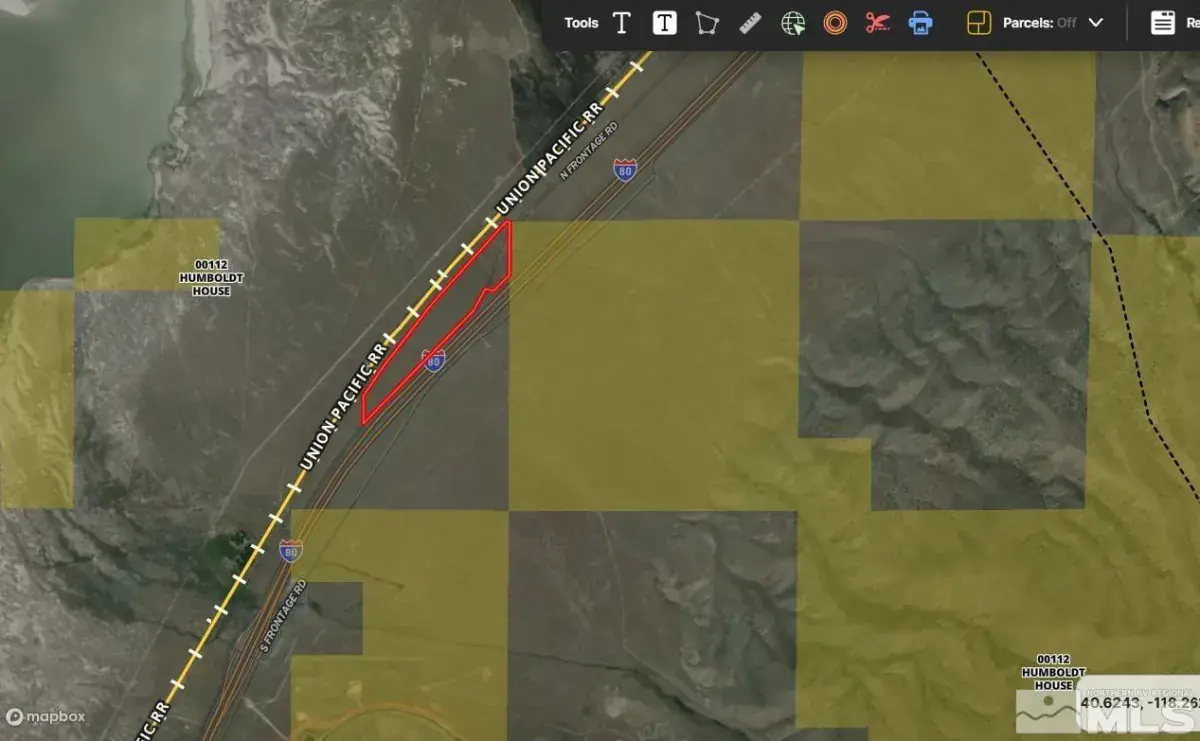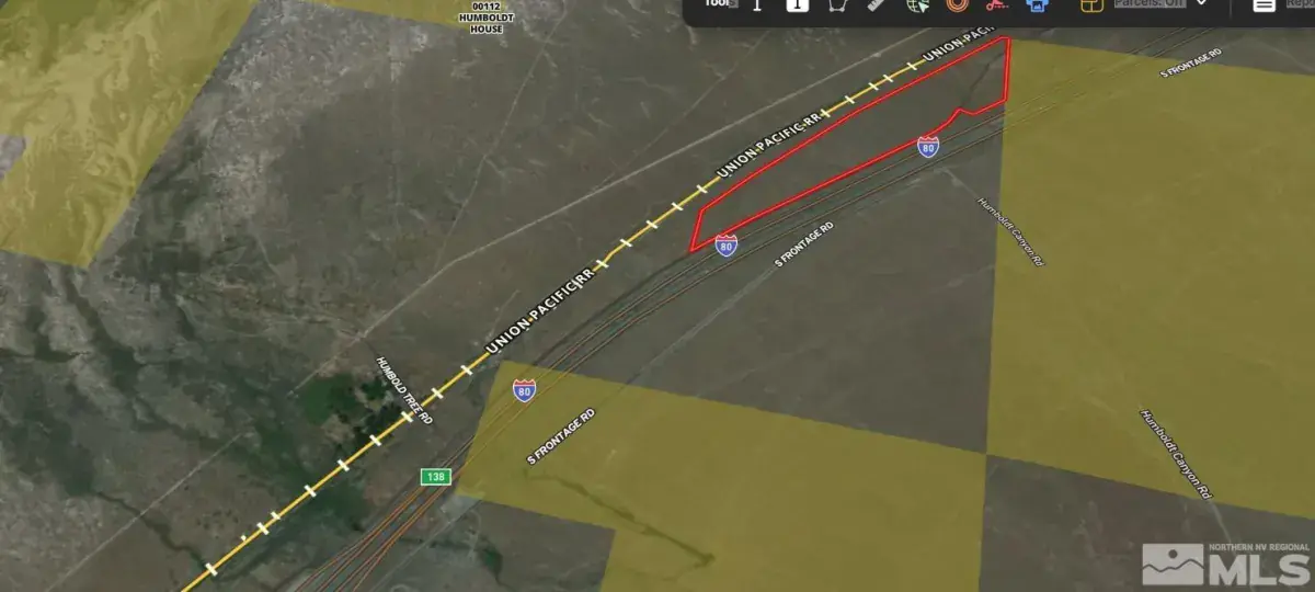 Almost 40 acres on the I-80 corridor with East and West off and on ramp access located in Pershing, Co close to Imlay, NV. Prime location right next to the freeway. Apply for a possible zoning change to put in a gas station, or a charging station, the possibilities are endless. Corners have been marked by seller, property has NOT been surveyed. Don’t miss out on a nice piece of property off the old frontage road., Buyers and buyers agents to verify all information.