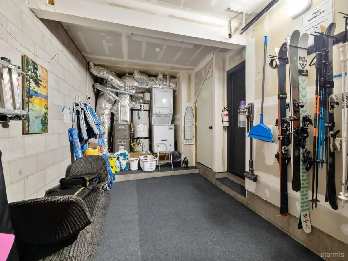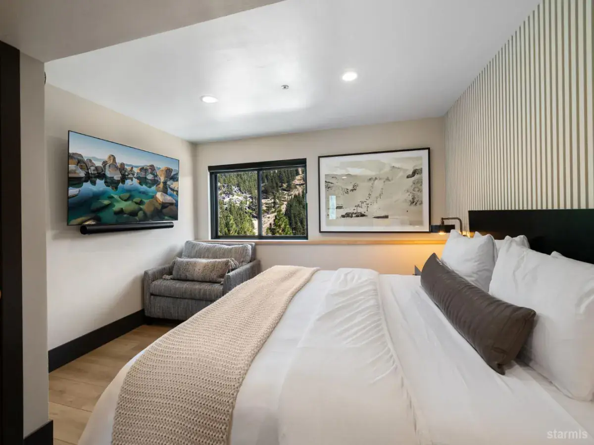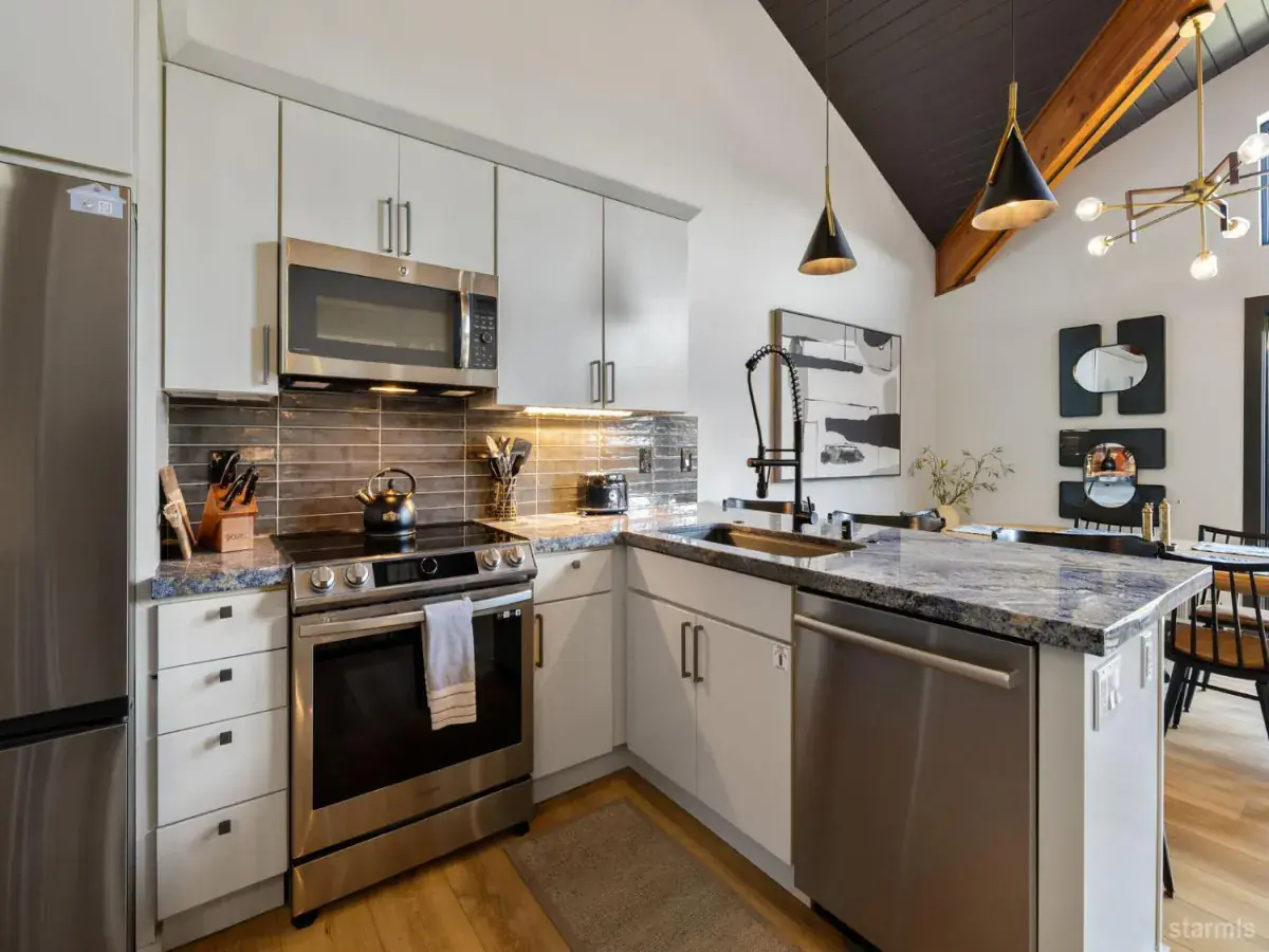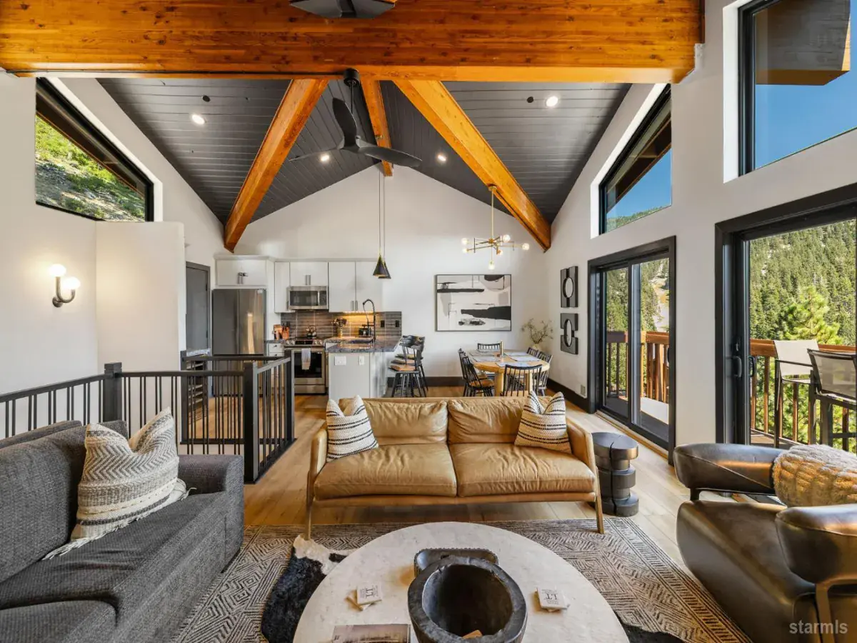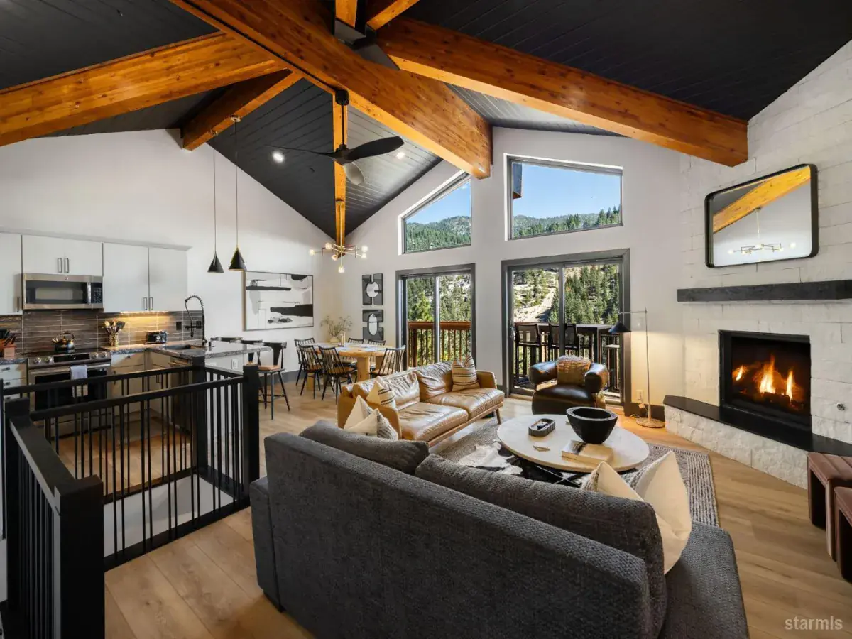 This fully renovated two-bedroom, two-bathroom condo offers the perfect blend of modern design and mountain living, with both bedrooms featuring ensuite bathrooms for ultimate comfort and privacy. The spacious great room showcases soaring vaulted ceilings with exposed wood beams, creating a warm yet contemporary feel, while expansive windows frame incredible lake and mountain views that can also be enjoyed from the deck just off the living space. A complete new window package enhances both energy efficiency and aesthetics, ensuring comfort year-round while maximizing the breathtaking views. The open-concept layout seamlessly connects the living, dining, and kitchen areas, making it ideal for entertaining, with a beautifully updated kitchen featuring sleek cabinetry, stainless steel appliances, and a large island with seating. Additional conveniences include a private garage plus carport with a Tesla charging station, offering ample parking and EV readiness. Perfectly situated near Diamond Peak Ski Resort, this home provides easy access to year-round recreation, while ownership also includes the coveted Incline Village amenities such as private beaches, golf courses, and a recreation center. Whether as a primary residence or a Tahoe retreat, this condo delivers a turnkey lifestyle with stunning views, modern upgrades, and unmatched access to everything Incline Village has to offer.