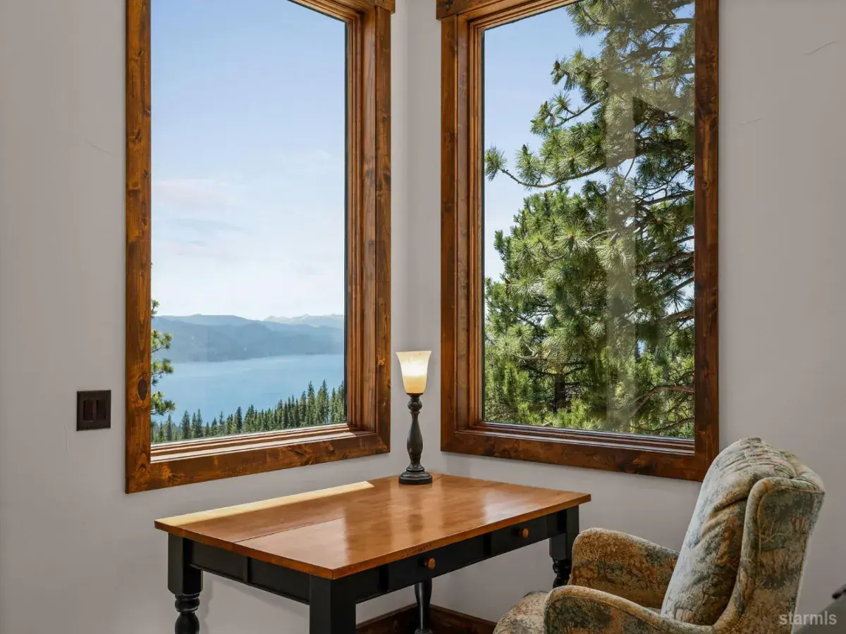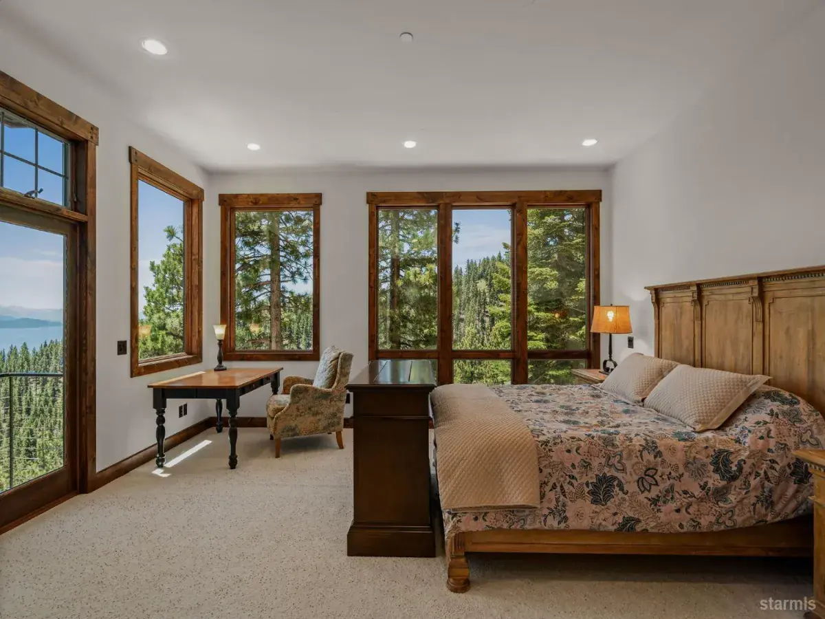 Exquisite Tahoe Mountain Retreat with Stunning Lake ViewsExperience unparalleled luxury and serenity in this magnificent estate, a true Tahoe Mountain retreat offering breathtaking views of Lake Tahoe. Nestled on a sprawling 5.35-acre parcel, this nearly 8,100 square foot home is designed with impeccable attention to detail and top-of-the-line finishes throughout.As you step through the grand entrance, you’ll be captivated by the soaring high ceilings with large beams, a stunning stone fireplace, and expansive windows that frame the mesmerizing lake views. The large gourmet kitchen is a chef’s dream, featuring slab granite counters, quartz floors, and high-end appliances, perfect for entertaining guests or preparing intimate family meals.The main level boasts a luxurious Primary Suite complete with a gas fireplace and an opulent bathroom, providing a serene retreat for homeowners. The home offers five ensuite bedrooms, ensuring comfort and privacy for family and guests. Fitness enthusiasts will appreciate the dedicated workout area with a sauna and full bathroom.Entertainment options abound with a state-of-the-art theatre room, a built-in bar with granite counters, and a temperature-controlled wine room, ideal for hosting gatherings. A detached office provides a quiet space for work or study.Outdoor living is just as impressive, with two stone decks offering stunning views of Lake Tahoe, perfect for relaxing and soaking in the natural beauty. The gated entry from the private drive leads to a heated parking area and a three-car garage with epoxied floors, ensuring convenience and security.This extraordinary estate combines luxury, privacy, and the quintessential Lake Tahoe lifestyle. Don’t miss your chance to own this unique and captivating property.