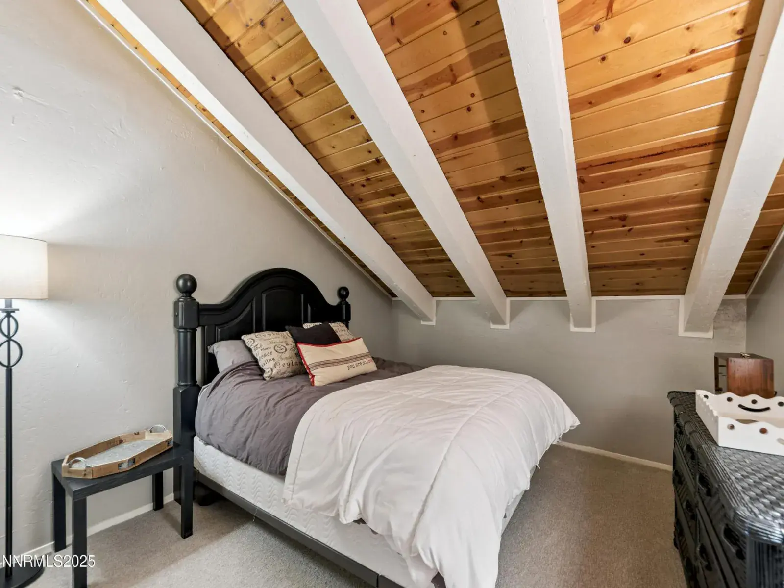This centrally located condo provides excellent access to the Championship Golf Course, nearby schools, and the shopping centerāall within easy walking distance. The main level features a recently remodeled kitchen, showcasing attractive wood trim and unique barn doors sourced from the historic Hyatt pier. Two bedrooms are situated on this floor, including the primary suite with an en suite bathroom and a second full bath conveniently located in the hall. The spacious upper loft offers a large open area for entertainment (movies/gaming) and a separate bonus room perfect for a home office or play space, complete with generous storage. Enjoy full Incline Village resident amenities and the benefits of NV tax-friendly status. This makes it an ideal investment for a vacation home, rental, or family residence. The property is offered fully furnished (excluding artwork and staging items).