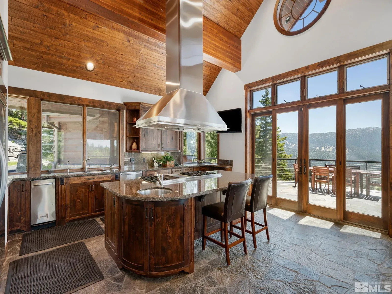 Experience unparalleled luxury in this magnificent Tahoe Mountain retreat with breathtaking Lake Tahoe views. Nestled on 5.35 acres, this 8,100 sq ft home boasts impeccable details and top-of-the-line finishes. The grand entrance features high ceilings with beams, a stone fireplace, and expansive windows framing lake views. This extraordinary estate combines luxury, privacy, and the quintessential Lake Tahoe lifestyle. Don’t miss your chance to own this unique and captivating property., Exquisite Tahoe Mountain Retreat with Stunning Lake Views Experience unparalleled luxury and serenity in this magnificent estate, a true Tahoe Mountain retreat offering breathtaking views of Lake Tahoe. Nestled on a sprawling 5.35-acre parcel, this nearly 8,100 square foot home is designed with impeccable attention to detail and top-of-the-line finishes throughout. As you step through the grand entrance, you’ll be captivated by the soaring high ceilings with large beams, a stunning stone fireplace, and expansive windows that frame the mesmerizing lake views. The large gourmet kitchen is a chef’s dream, featuring slab granite counters, quartz floors, and high-end appliances, perfect for entertaining guests or preparing intimate family meals. The main level boasts a luxurious Primary Suite complete with a gas fireplace and an opulent bathroom, providing a serene retreat for homeowners. The home offers five ensuite bedrooms, ensuring comfort and privacy for family and guests. Fitness enthusiasts will appreciate the dedicated workout area with a sauna and full bathroom. Entertainment options abound with a state-of-the-art theatre room, a built-in bar with granite counters, and a temperature-controlled wine room, ideal for hosting gatherings. A detached office provides a quiet space for work or study. Outdoor living is just as impressive, with two stone decks offering stunning views of Lake Tahoe, perfect for relaxing and soaking in the natural beauty. The gated entry from the private drive leads to a heated parking area and a three-car garage with epoxied floors, ensuring convenience and security. This extraordinary estate combines luxury, privacy, and the quintessential Lake Tahoe lifestyle. Don’t miss your chance to own this unique and captivating property.
