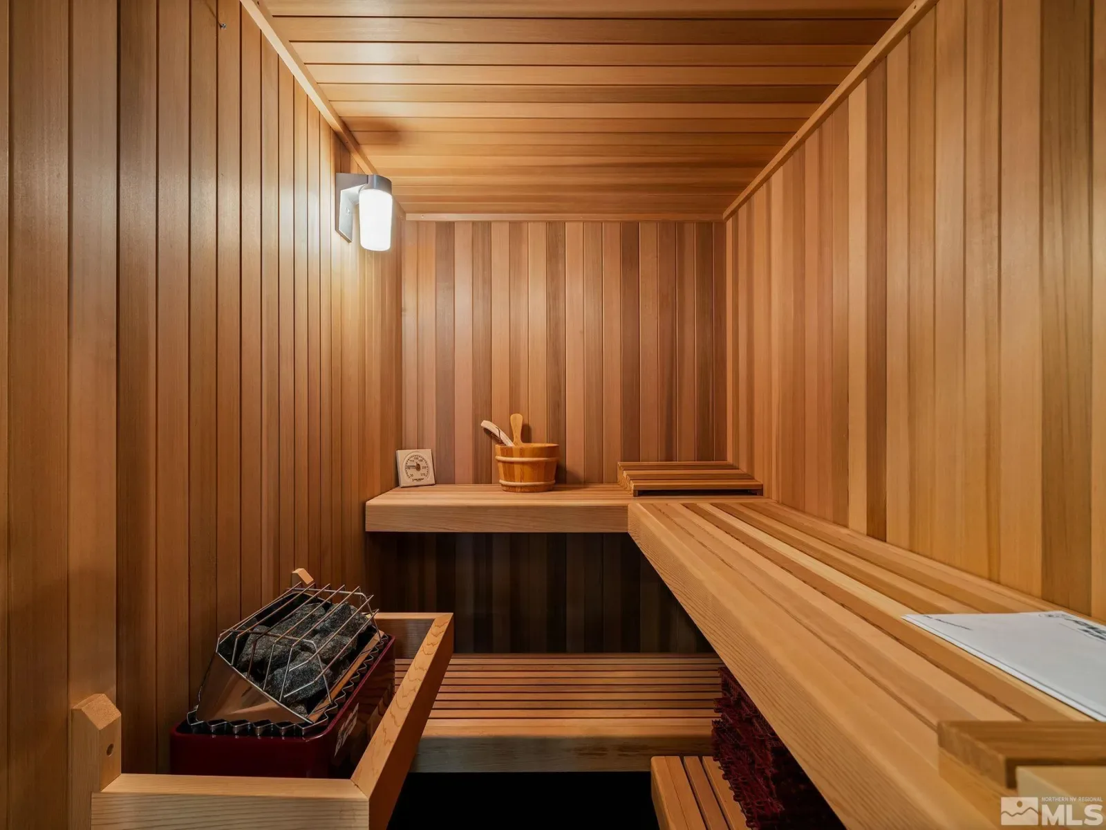 Breakfast Bar, Entrance Foyer, High Ceilings, Kitchen Island, Pantry, Primary Downstairs, Sauna, Walk-In Closet(s)