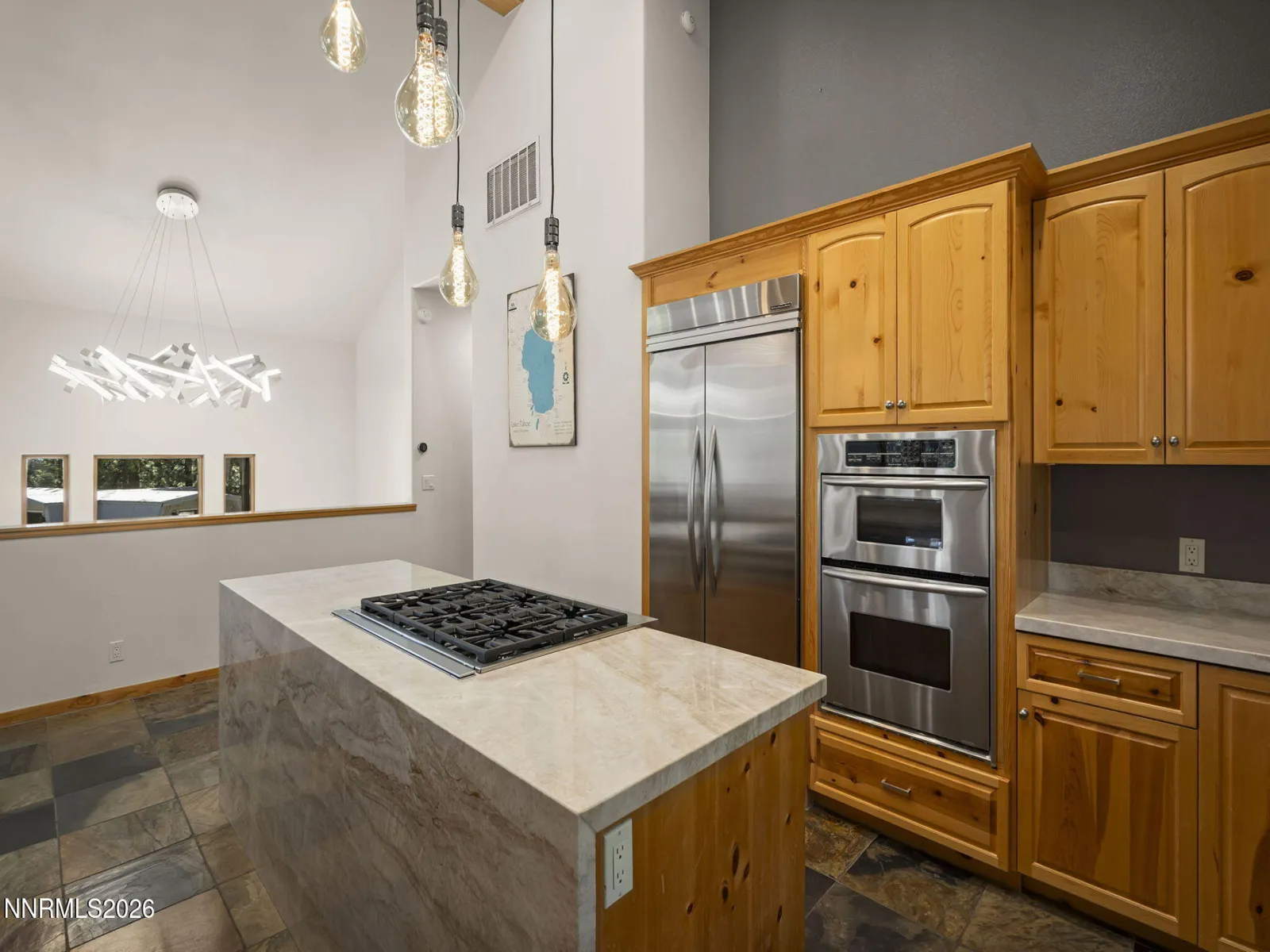 Experience refined mountain living in this exceptional Incline Village retreat, thoughtfully remodeled with a blend of natural materials and artisan detail. The heart of the home is a stunning waterfall-edge quartzite expansive island, anchored by a professional-grade KitchenAid 6-burner cooktopāperfect for entertaining. Rich Du Chateau hardwood flooring, slate tile accents, and heavy pine cabinetry create warmth and character throughout, while open beamed ceilings and wood casement windows frame the alpine setting. Designer Hubbardton Forge LED lighting and one-of-a-kind custom chandeliers elevate each space as true works of art. The inviting living area features a striking faux concrete wall fireplace, complemented by Andersen sliders that open to serene outdoor living. Step outside to a natural gas fire pit overlooking a seasonal creek and 2.4 acres of adjacent USFS/IVGID land, offering privacy and a rare connection to nature. Enjoy peaceful mornings and evening sunsets from both the primary bedroom and living room decks with a peek of Lake Tahoe. Complete with full air conditioning and a Generac natural gas backup generator, this is a truly unique, high-quality mountain home designed for comfort, beauty, and year-round enjoyment. Full Incline Village amenities include (3) private, gorgeous beaches, one with outdoor pool, Robert Trent Jones Championship and Mountain golf courses, tennis complex, Diamond Ski Resort, Rec Center. Call now for an appointment. See List of Features and Upgrades.