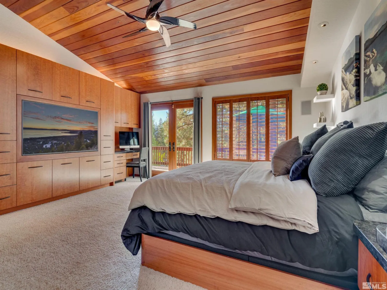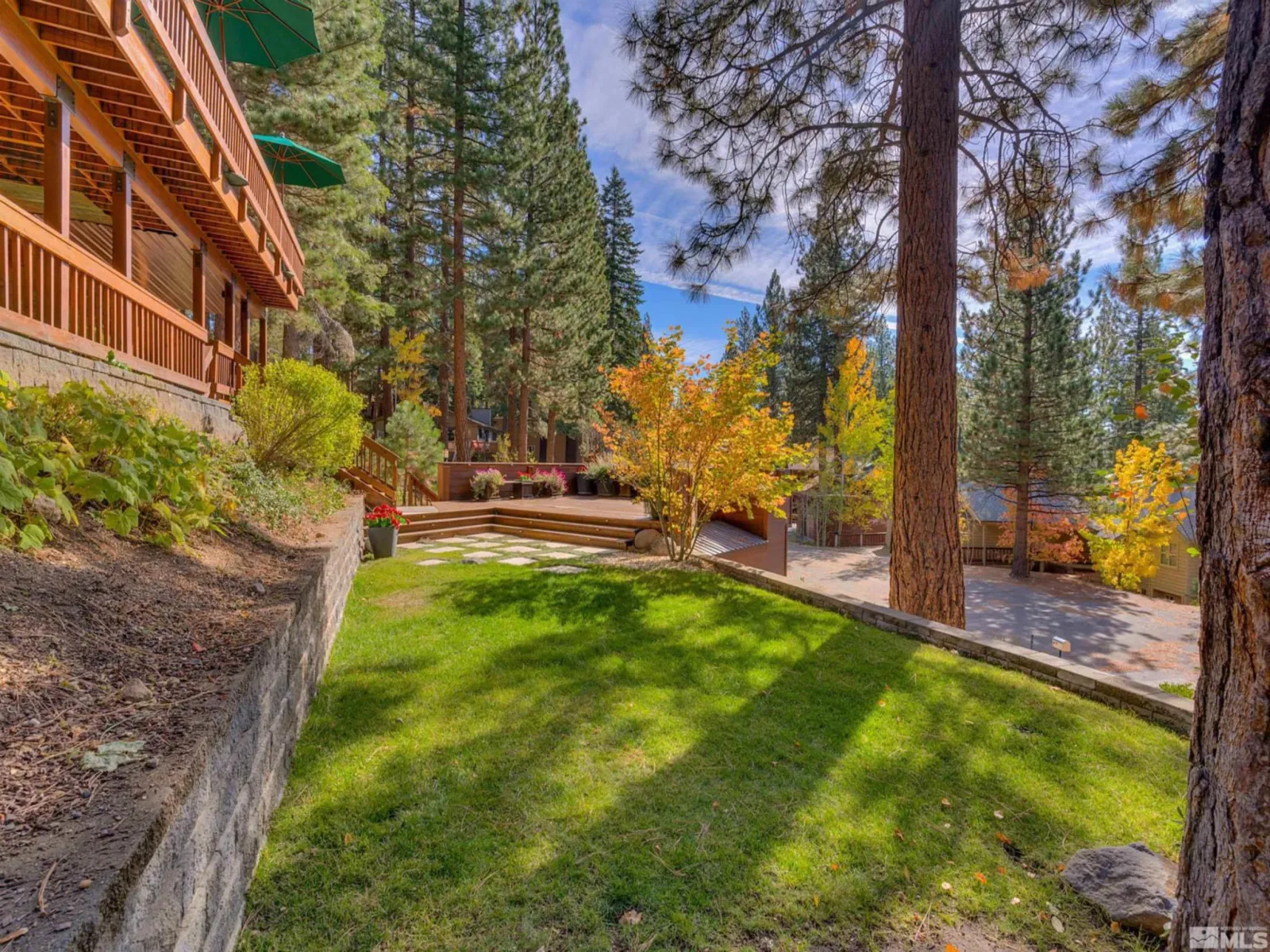 Tucked quietly at the end of a cul-de-sac, this spacious contemporary home offers a rare combination in Incline Village: gratifying peeks of Lake Tahoe, exceptional privacy, and a uniquely large .62-acre parcel — an increasingly uncommon offering that provides both immediate enjoyment and meaningful future potential. Set on a gently sloping mountainside surrounded by towering pines, the property delivers a sense of space seldom found in today’s market. With more than 1,600 square feet of remaining Bailey’s 4 impervious coverage, the parcel presents a compelling opportunity for future expansion or additional outdoor living enhancements, making this not only a beautiful home for today but a flexible investment for tomorrow. Multiple outdoor living areas invite connection to the Sierra environment — a welcoming front lawn ideal for play, peaceful hammock afternoons beneath mature trees, and a full-width deck off the great room designed for effortless entertaining, dining, and relaxation. Above the garage, a large roof deck becomes a natural gathering place for sunset skies and unforgettable stargazing nights. Inside, the great room glows with rich wood ceilings and the warmth of a wood-burning fireplace, creating an inviting alpine atmosphere. The kitchen blends sophistication and functionality with cherry cabinetry and trim, high-end appliances, and a double oven suited for both entertaining and everyday living. The lower level expands the home’s versatility with a junior suite, gym or meditation space, and multiple utility rooms with additional laundry hookups. A dedicated home office/library functions as a third bedroom, while the fourth bedroom has been thoughtfully designed as a state-of-the-art surround-sound recording studio. The family room doubles as a home theater, enhanced by a striking 300-gallon reef aquarium and a cozy gas fireplace. Modern infrastructure supports today’s lifestyle with Gigabit Ethernet service, a whole-house generator, and three mini-split air-conditioning systems for year-round comfort. Built-in televisions and a drop-down projection screen are included. Experience the home fully through the video, Matterport tour, and floor plans available in the virtual tour.