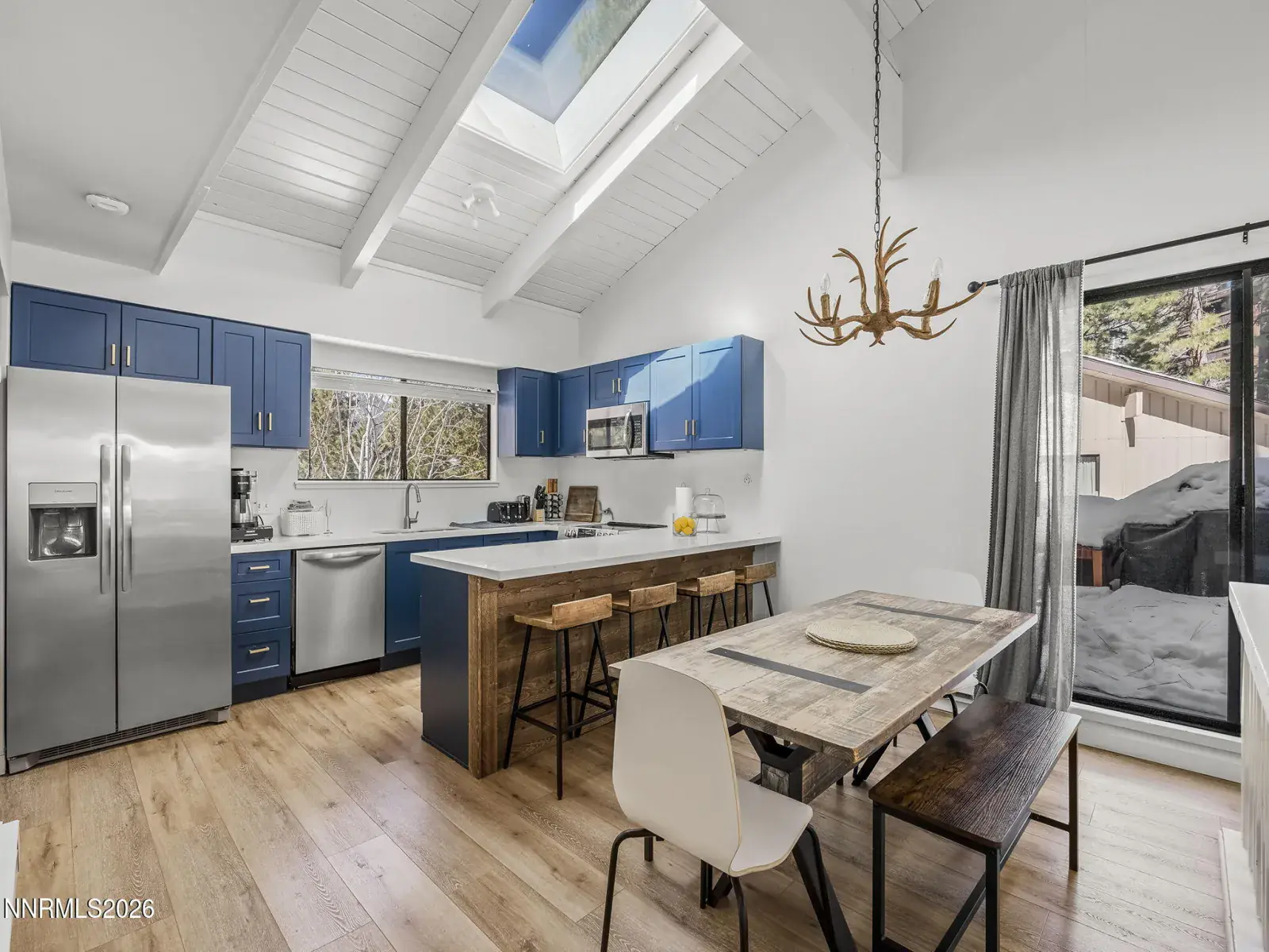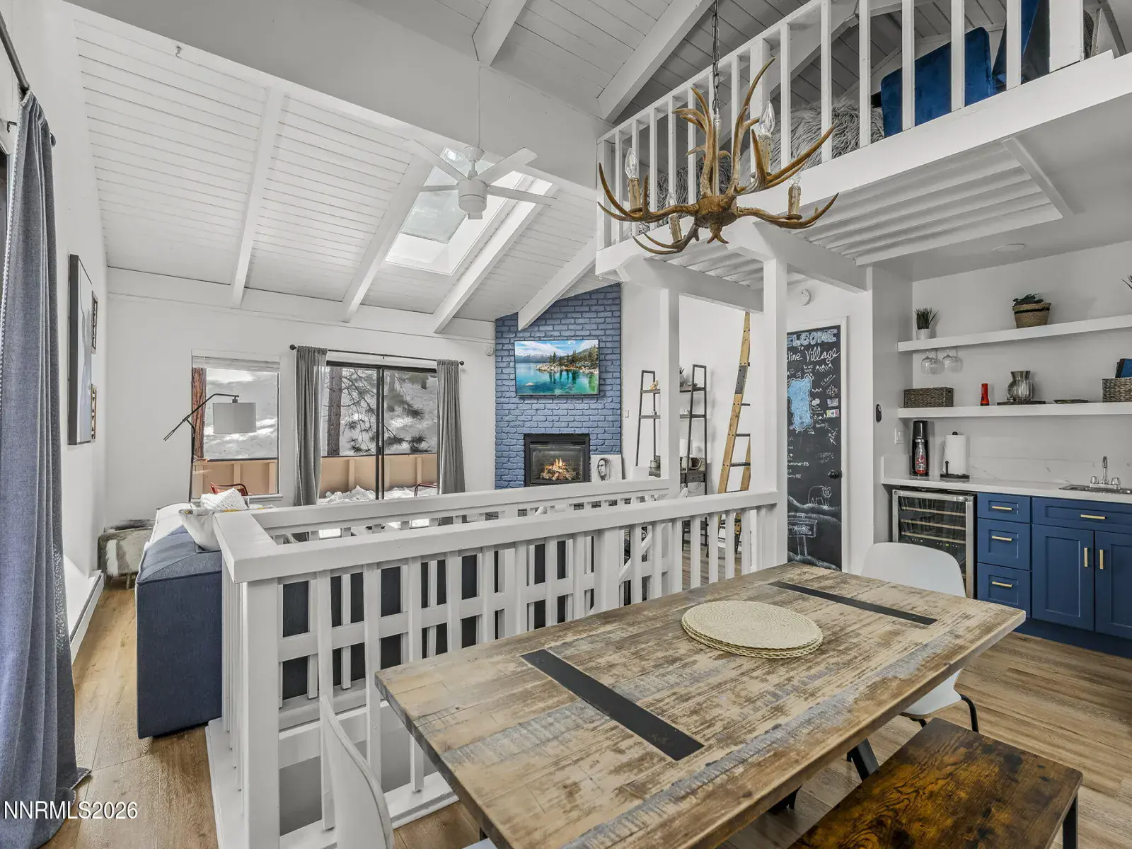 Investor alert! This beautifully remodeled 3-bedroom, 2.5-bath corner unit has a bonus loft, mountain and tree views, and a remarkable rental historyāperfect as a second home with vacation rental or 1031 exchange. Higher-end design ties in “Tahoe Blue” for a modern mountain feel. One of the few corner units offering a wraparound deck and stairs to the ground, adding extra living and green space. Vaulted ceilings, skylights, and two patio doors fill the open floor plan with light. The redesigned kitchen features Tahoe blue shaker cabinets, stainless steel appliances, quartzite countertops, and an island seating four against reclaimed wood. Entertain with a separate wet bar and wine fridge. Vinyl plank flooring runs throughout, and the finished loft adds flexible space. Updated baths feature modern vanities with tile and glass accents. Located on the shuttle line to Diamond Peak with easy access to the lake, golf, beaches, and dining. Five IVGID passes included.