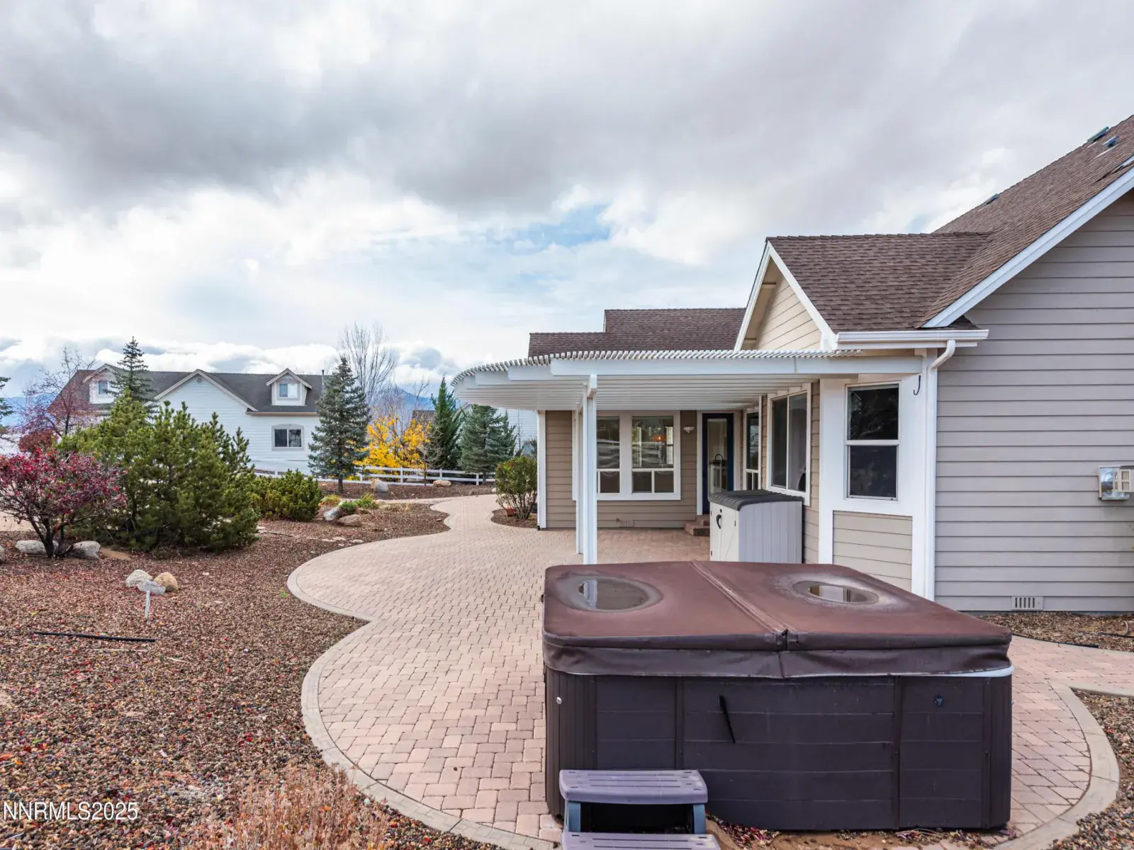 Stunning 1-Acre Home with RV Garage in Sought-After Skyline Ranch – Minden, NV Welcome to Skyline Ranch ā one of Minden’s most desirable communities ā known for its spacious 1-acre homesites, signature white vinyl fencing, and breathtaking Sierra mountain and valley views. This exceptional single-story home offers not only luxurious living and attached RV garage, but also easy access to endless BLM land ā perfect for off-road enthusiasts who want to ride straight from their backyard, no trailer required. Home Highlights: Spacious single-level floor plan with open great room concept on a 1 acre lot; Vaulted entry, and 10′ ceilings throughout; Split-bedroom layout with master suite separated from guest rooms for privacy; Large bonus room above the garage ā ideal for a home office, craft room, guest suite, or media/game room; Granite countertops and stainless steel appliances in a well-appointed kitchen with breakfast nook, island, and pantry; Formal dining room for entertaining; Master suite with walk-in closet and spa-like master bathroom featuring a jetted tub and dual sinks; Elegant entryway/foyer with vaulted ceilings. The RV Garage/Workshop: Car enthusiasts, RV owners, and hobbyists will love the incredible attached RV Garage/Workshop featuring: 35′ x 40′ (1,400 sq ft) of fully finished space; 14′ high door & 16′ interior ceilings to accommodate RVs or large equipment; Rear garage door for convenient drive-through access; Room for 4 full-size vehicles, or 2 cars plus a full-size RV coach; Water Closet (toilet) and rough plumbing for a sink and 220V outlets already in place. Property Highlights: Covered front porch with paver walkway and paver inset driveway; Paver-lined backyard with walkways; Alumawood “Pergola” patio cover, and a luxurious spa; Fully fenced and landscaped yard offers serenity and privacy; Fully landscaped with mature trees, automatic drip irrigation (front and back). This is a one-of-a-kind property that blends elegance, functionality, and outdoor lifestyleāall within the peaceful, wide-open setting of Skyline Ranch. Whether you’re entertaining guests, storing your toys, or enjoying the incredible views, this home delivers on every level. Don’t miss this opportunity to own a piece of paradise in Minden! Call today to schedule your private showing!