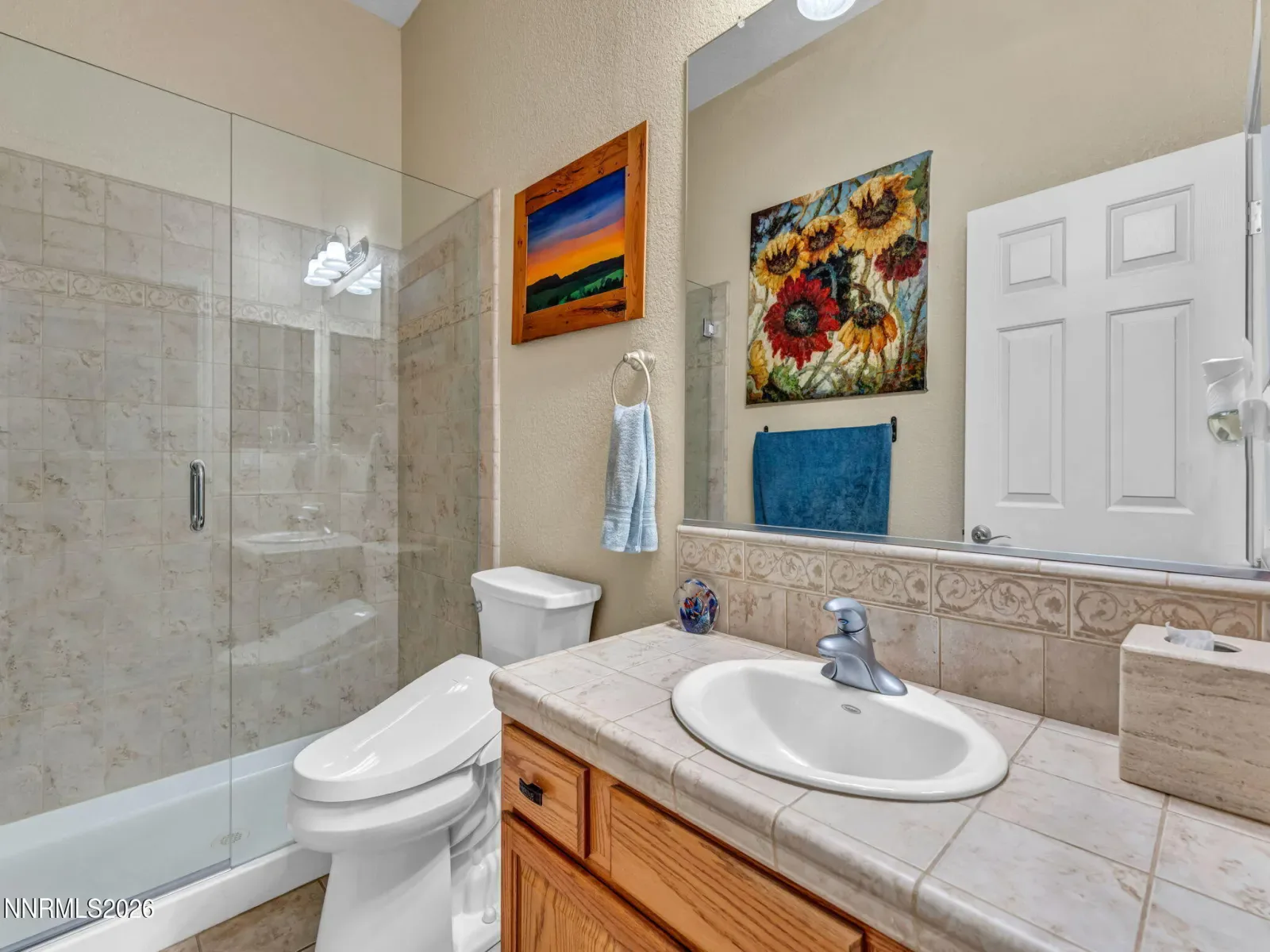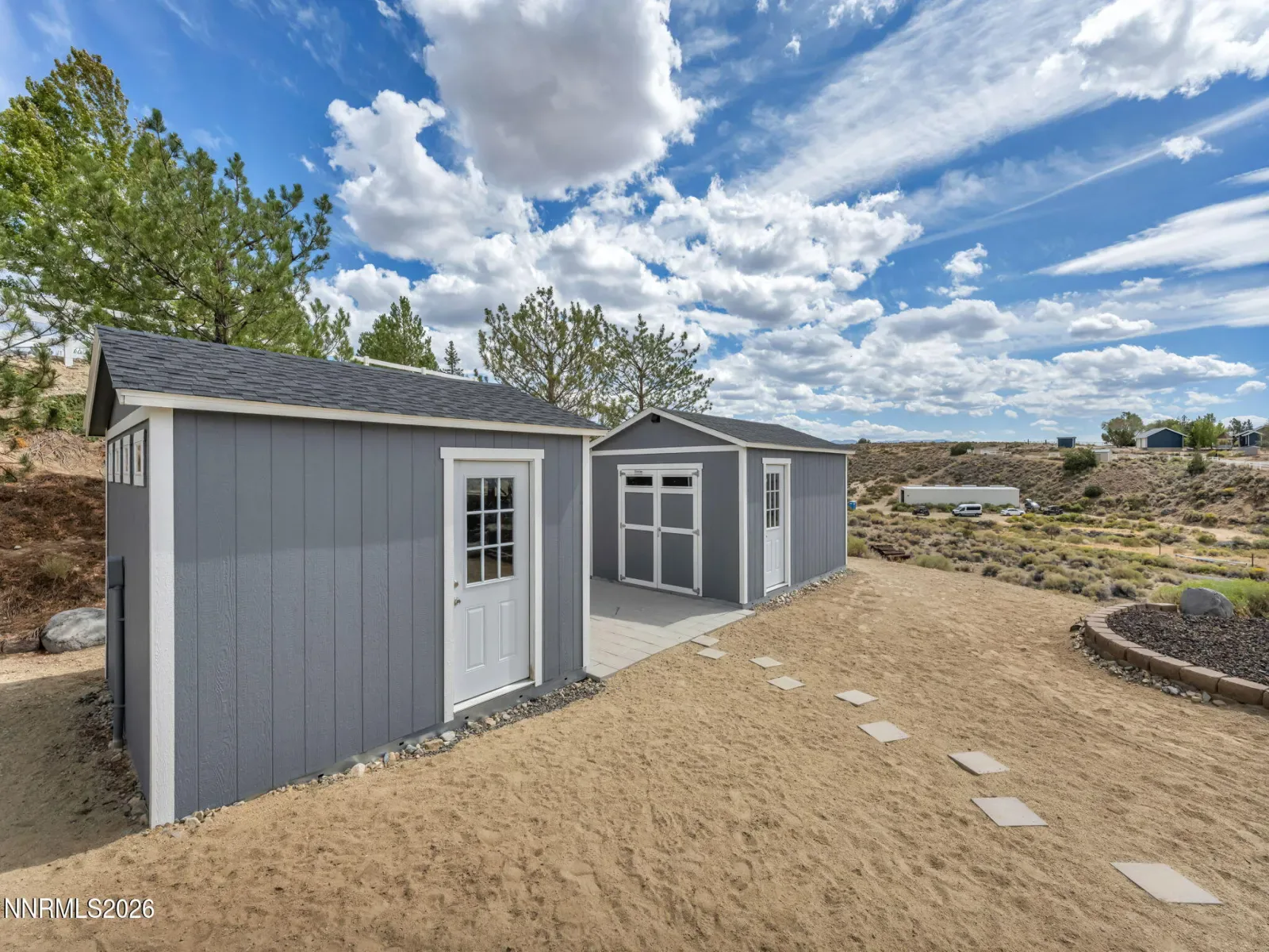 Set on just over an acre in Skyline Ranch, this beautifully updated 4-bedroom, 4-bath home sits on a hill and captures panoramic views of the Pine Nut Mountains and Sierra Nevada. Rich maple and walnut hardwood floors, 10ft ceilings, gas fireplace, large updated kitchen with newer appliances, and a spacious main-level primary suite with spa-inspired bath create a warm yet refined interior. The home also includes a dedicated office/flex space in addition to the bedrooms, perfect for working from home, hobbies, or a quiet retreat. The bright open walkout lower level offers 9ft ceilings, a second living area with gas fireplace, two bedrooms, full bath, and wet bar – ideal for guests or multi-generational living. Enjoy year-round comfort with dual WiFi-enabled thermostats, upgraded lighting, and built-in audio. Outdoor living shines with an expansive Trex upper deck, large lower patio, with fire it, hot tub, RV parking with power, and two powered workshops. Backing to BLM land in a quiet, low-traffic neighborhood, with the best views of the Carson Valley this is Northern Nevada living at its best.