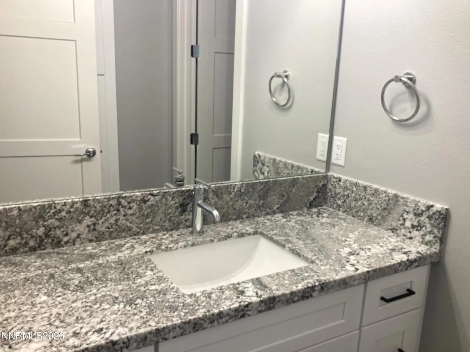 Custom 2 Story New Home with Quick Move in Possible. Inside “The Springs” Gated Sunridge Community Golf Course Development BUT Not A Part of Golf Course. Two Story Floor plan with Primary Living Space Upstairs on 2nd Level, Kitchen with Granite Counter tops, White Cabinets with Soft closing Doors & Drawers, Center Island, Farm Sink, SS 5 Burner Gas Range with Microwave above, Large Dining/Family Room Area, 1/2 Bathroom, Stacked Washer/Dryer, Primary Bedroom with Balcony, 2 Sink Vanity, Walk in Closet, Free standing Tub and Separate Shower. Lower Entry Level has another Family Room, 2 Split plan Bedrooms, 1 Full Bathroom with Tub/Shower, Main Laundry Room, and Dinette Area with Microwave, Sink, Dishwasher, and Eating Bar, Exterior Paver Walkways and Driveway and 2 Car Finished Garage. Home has Xeriscape Front Yard Landscaping with Drip System, Large Rear Deck with Mountain Views, and Rear Fencing. Convenient Location: Golf at Sunridge 10 minutes away, Close to Carson City Shopping, Lake Tahoe Activities and less than 1 Hour to Reno Airport. Ideal for Next Gen Living. Property Taxes Shown are for Lot Only and Will Be Reassessed Upon Home Completion.