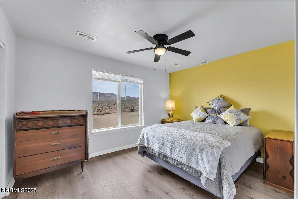 Welcome to 4895 Cheyenne Trail, Stagecoach Built with love and completed just two years ago, this custom home feels brand new and full of thoughtful touches. With 2 bedrooms, 1 bathroom, and 1,120 square feet of upgraded living space, it balances comfort, style, and functionality in every corner. Inside, the open great room layout is anchored by a dreamy kitchen featuring granite counters, upgraded appliances, a farmhouse sink, and elegant lighting. High ceilings and oversized picture windows fill the home with light, framing sweeping views of the mountains and even the wild horses that roam the area. Throughout the home, you’ll find durable vinyl plank flooring, stylish fixtures, ceiling fans in every room, and energy-efficient upgrades like MasterCool cooling, forced-air heat, and superior insulation. The bathroom offers a spa-like retreat with a step in shower, dual shower heads, and full tile surround. Outside, the curb appeal shines with a charming covered front patio and cheerful color palette, welcoming you home each day. Set on one full acre, the property backs to open land, giving you endless views and direct access to wide open spaces. Horses are welcome here, and the location is ideal for trail riding, boating at nearby Lake Lahontan, or simply enjoying the quiet. While it feels private and rural, you’ll love the easy access to Highway 50 and the Tahoe Reno Industrial Center, making commutes to work, Reno or Fernley simple. This home is perfect for someone looking for a smaller, move in ready retreat; whether that’s a first time buyer, a professional working at TRIC, or anyone who wants to live close to nature without giving up modern upgrades. Additional Features Thoughtfully Included by the Owners: RV clean-out tied into the septic system Four-wire power lead ready for a future garage Extra building materials left for a porch addition Two attic accesses (master bedroom and laundry) Blocking installed behind shower tile for future mobility equipment Reinforced window frames for curtain hardware Three GFCI outlets for added safety Security lighting for peace of mind 4895 Cheyenne Trail offers more than just a home…it’s a lifestyle rooted in Northern Nevada’s wide open skies, mountain views, and community spirit.